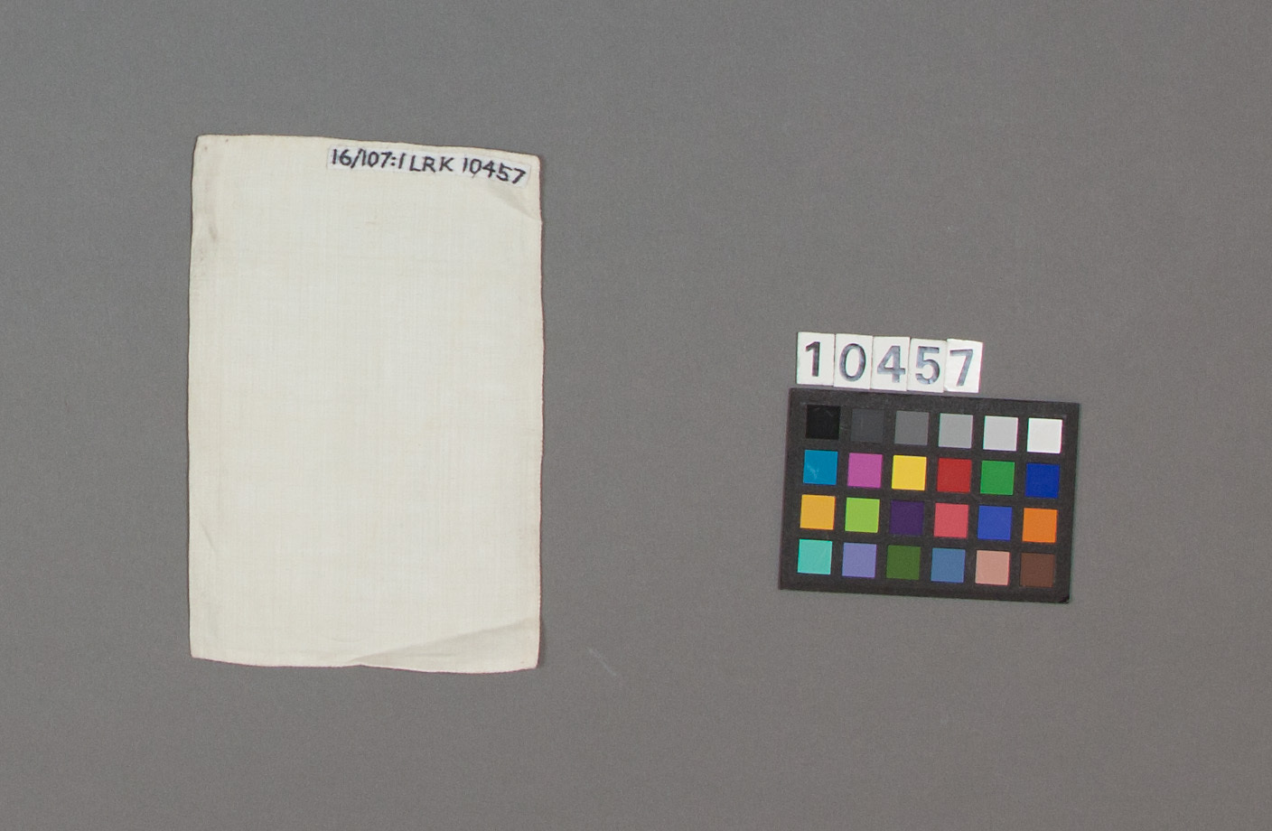 Plagg ingående i en korg med babykläder som använts av Sofia och Oskar (II):s barn. Rektangulär navellapp av dubbelt linnetyg med handsydda sömmar. L: 150 mm, b: 100 mm