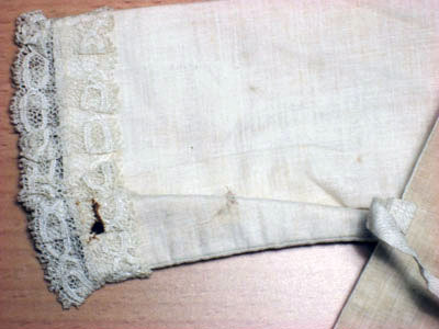 Naturvit nattröja i dubbelvävt (tuskaft) i linne, sydd i fyra delar. Halsringningen är rundad och på ärmen är fastsydd en spets som är 30 mm bred. På baksidan är två krysade band fastsydda på var sin sida som är 145 mm långa och 7 mm breda.