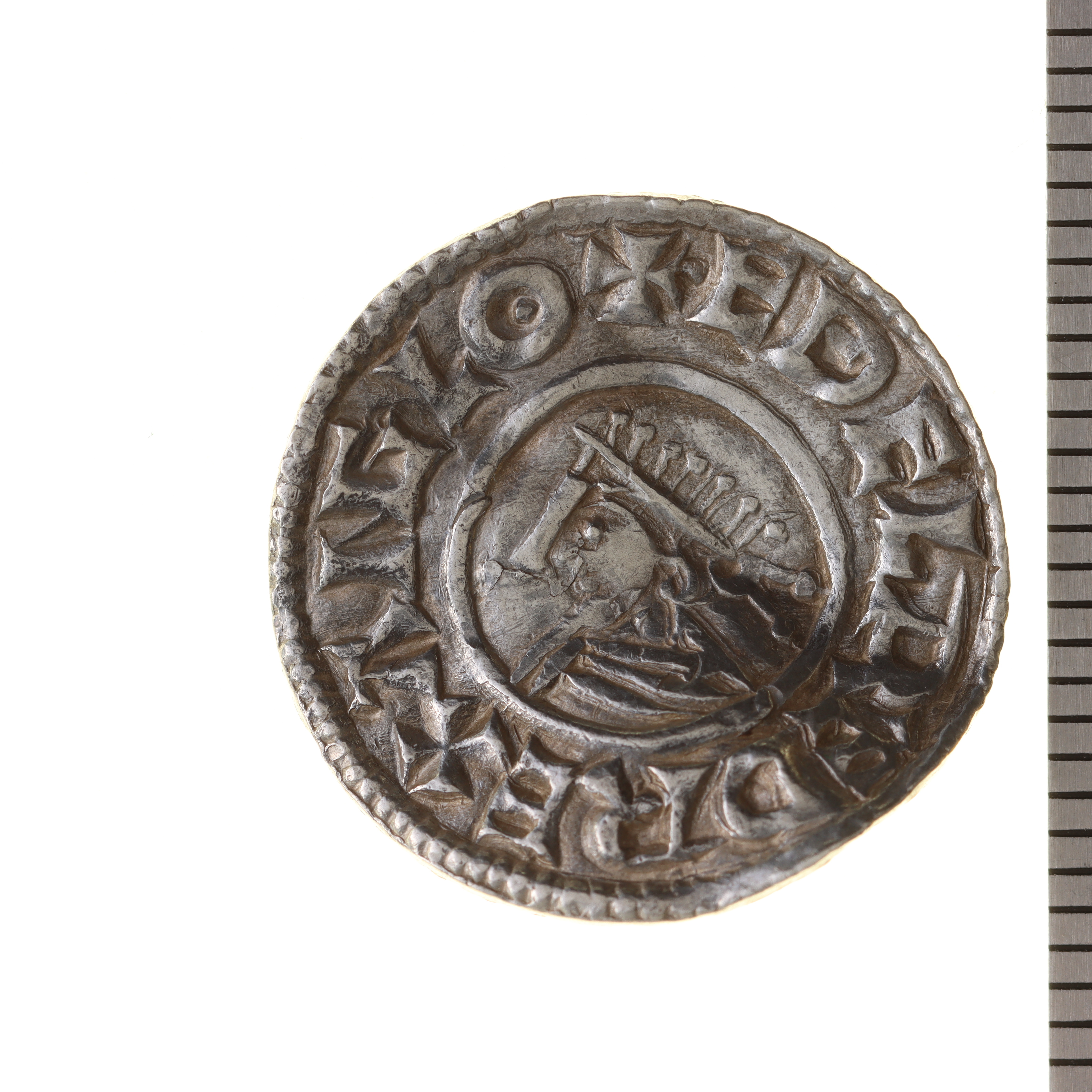 Upphov: Ethelred II. Media: Jonsson, Eeva. Ekonomiska museet - Kungliga myntkabinettet/SHM, (CC BY 4.0) Du får bearbeta och dela verket för alla ändamål, även kommersiella, så länge du anger upphovsperson och licensgivare.