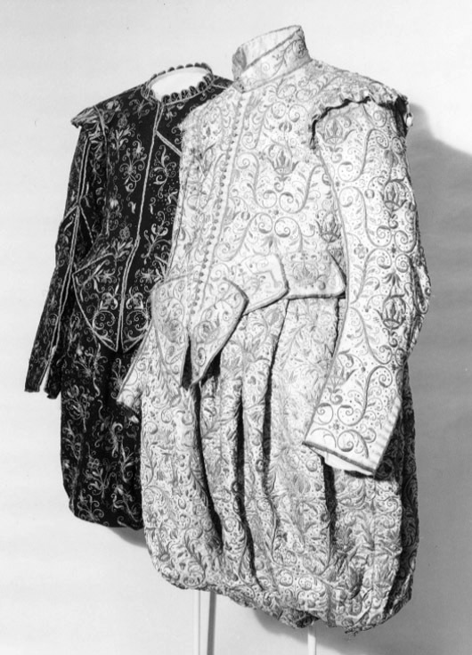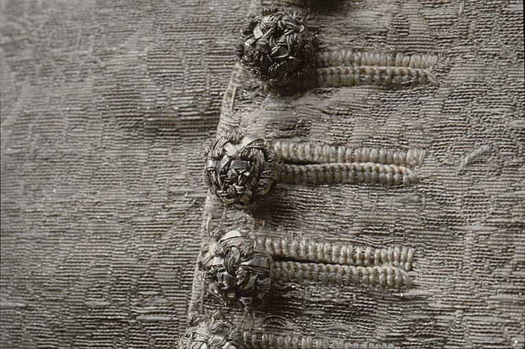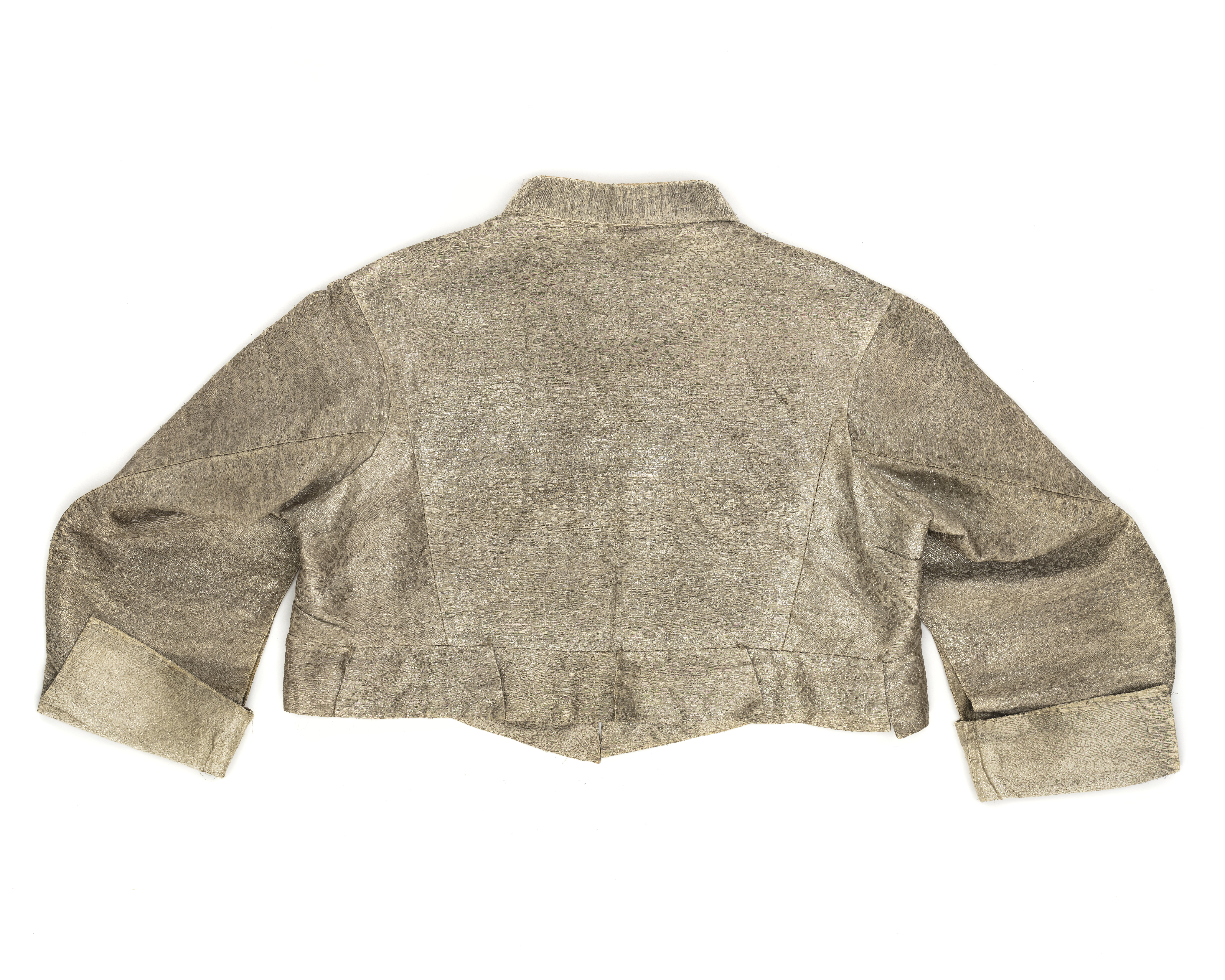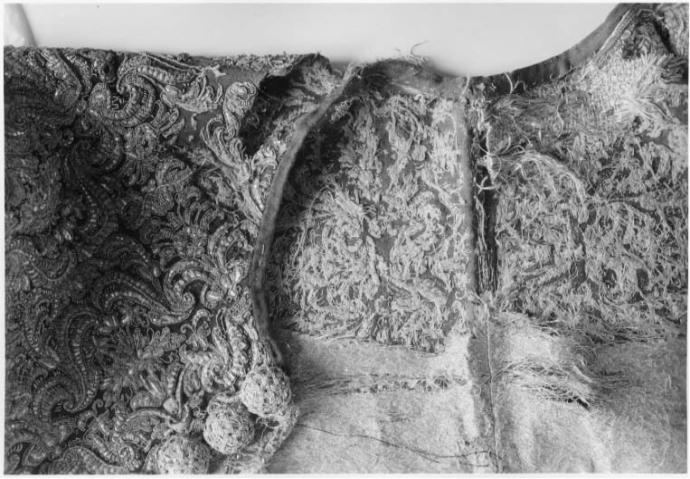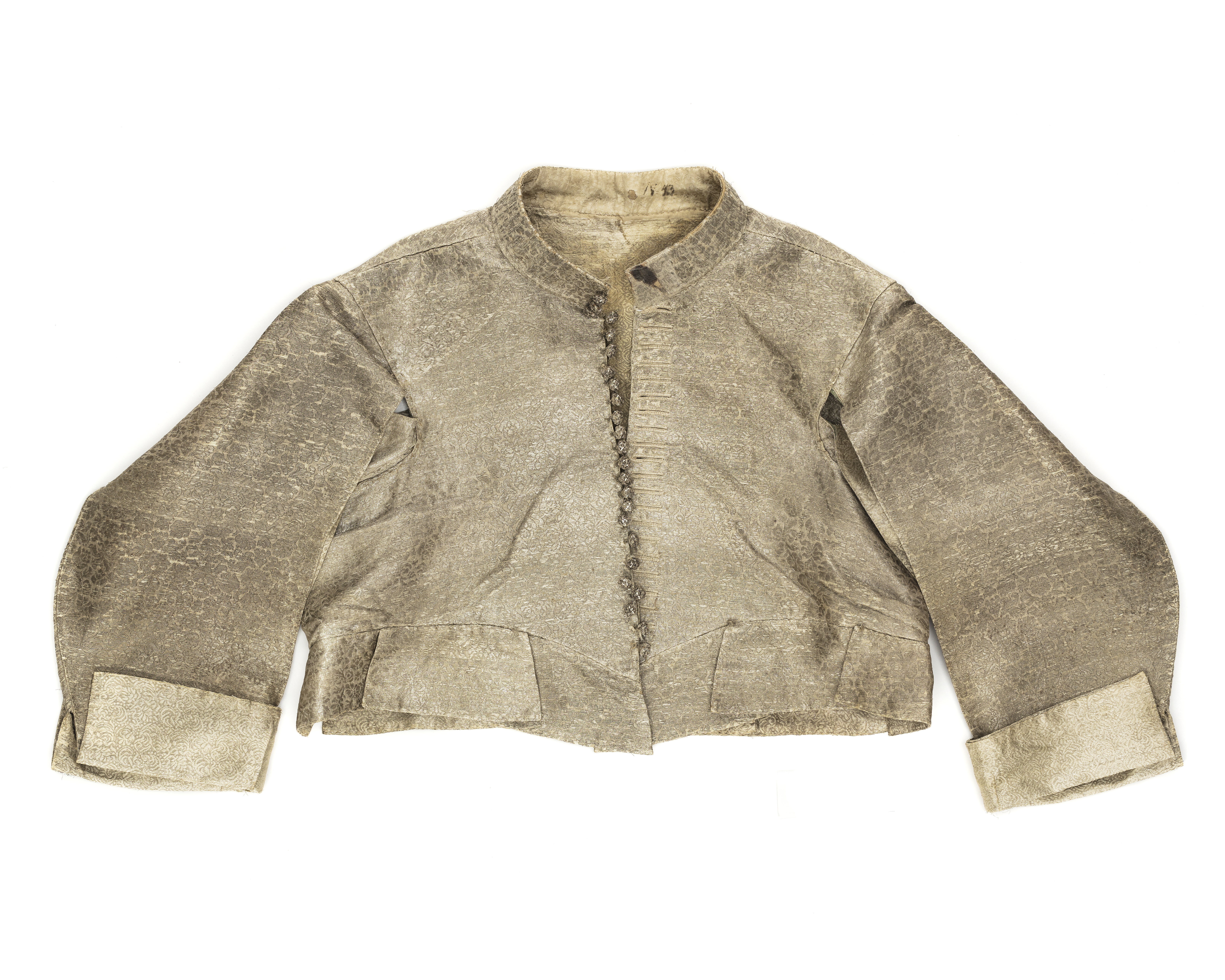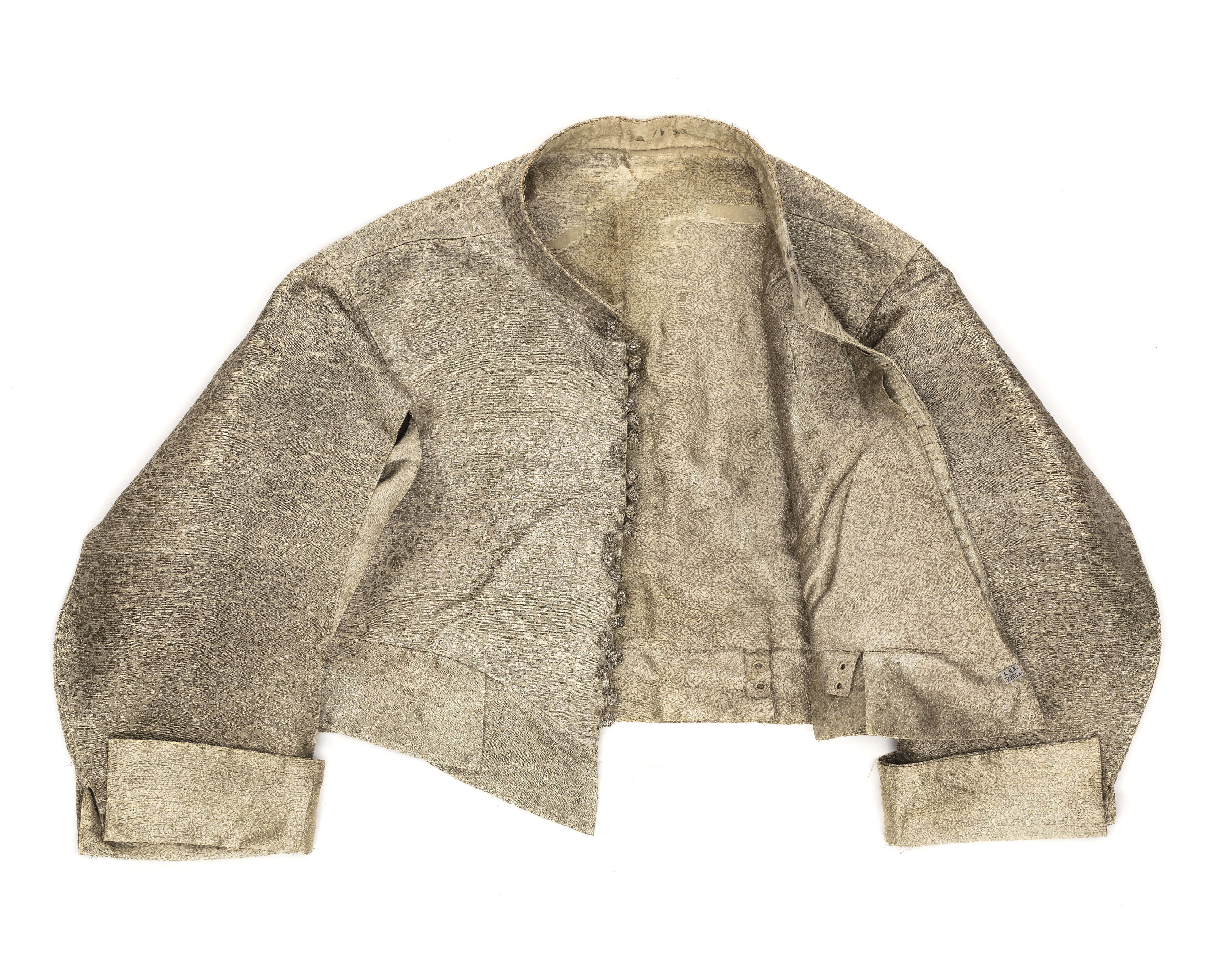 Tröja av mönstrad silverbrokad, ca 1650-1660, använd av Karl X Gustav vid kröningen 6 juni 1654.