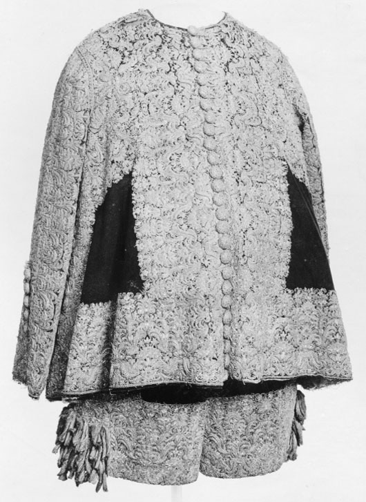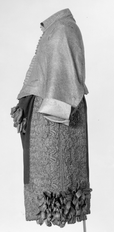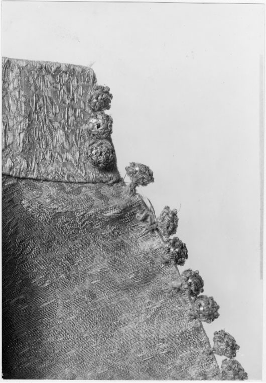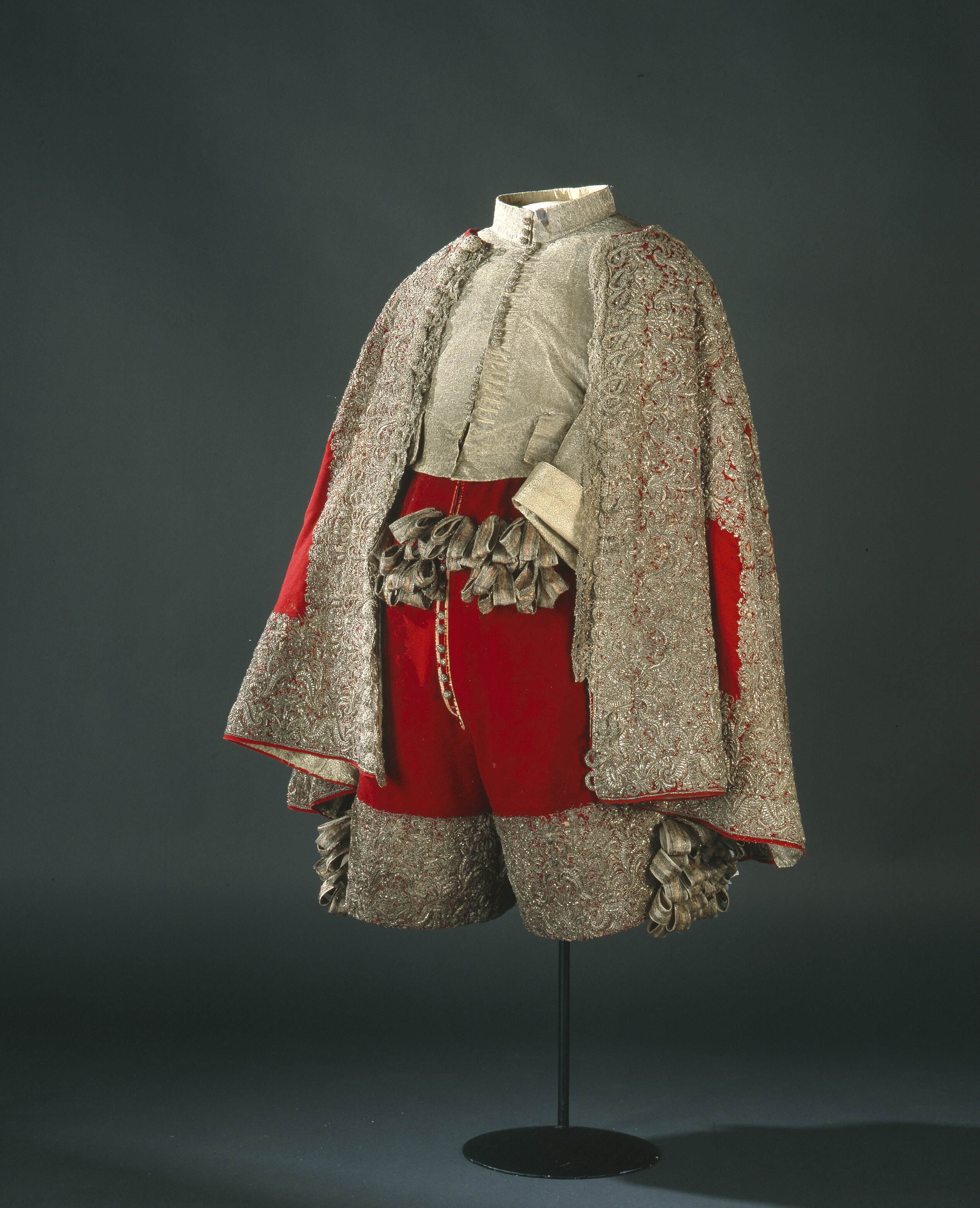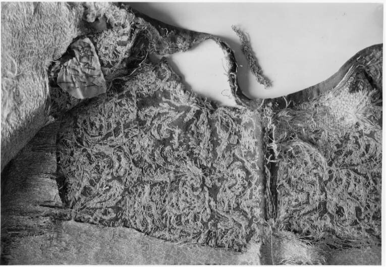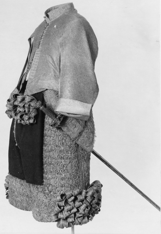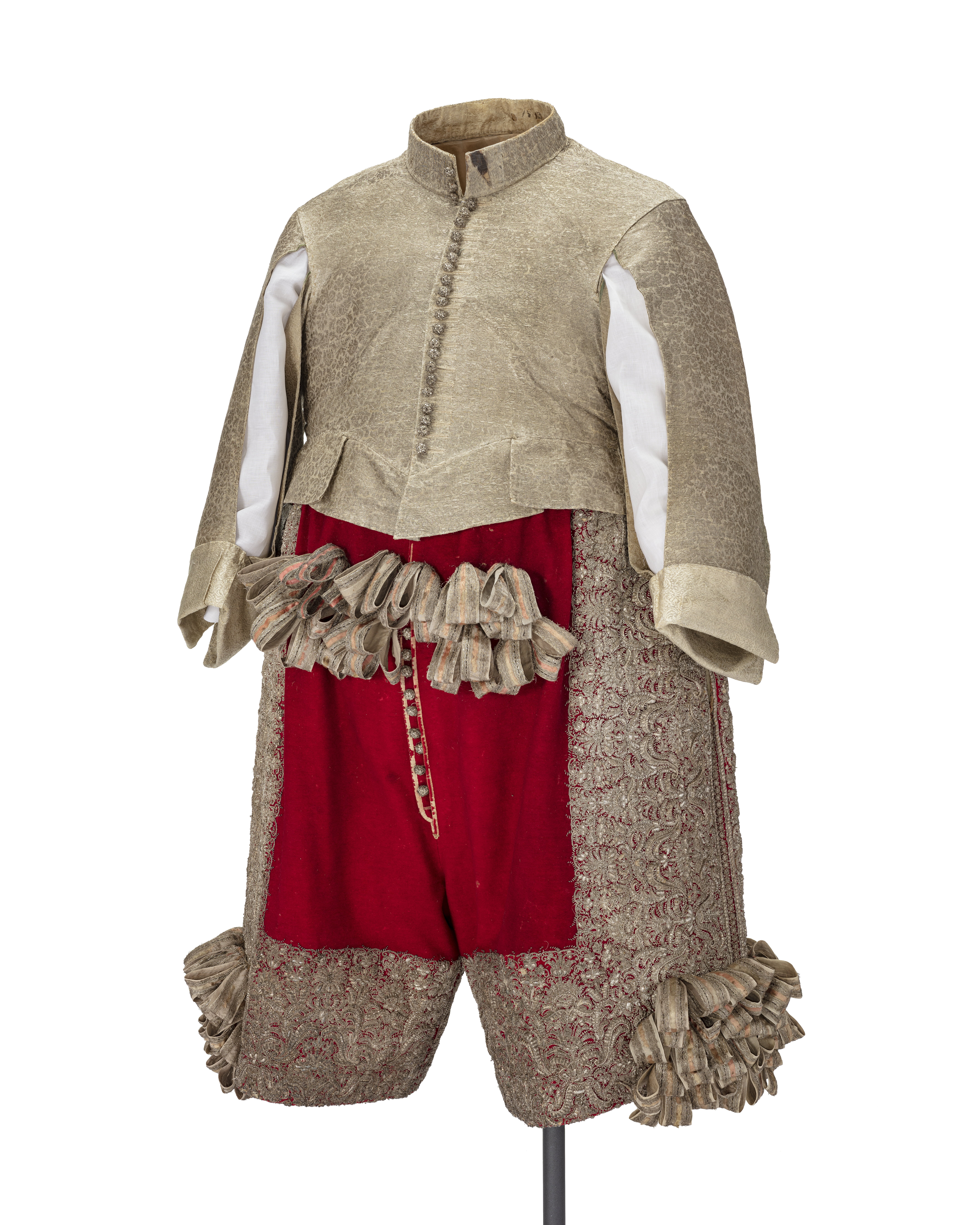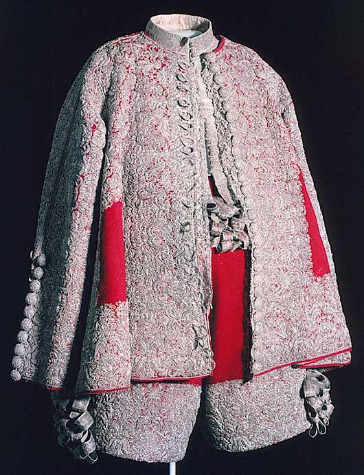 Tröja av mönstrad silverbrokad, ca 1650-1660, använd av Karl X Gustav vid kröningen 6 juni 1654.