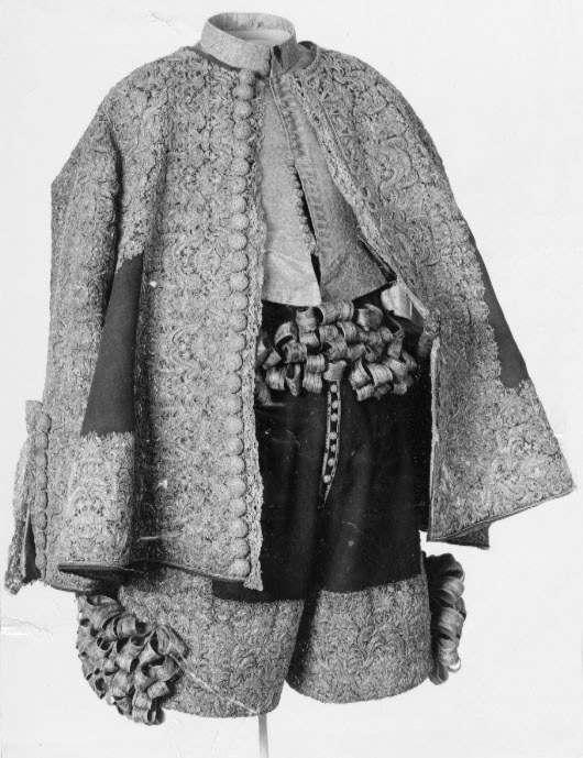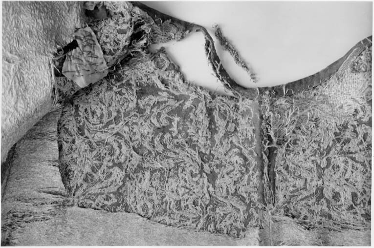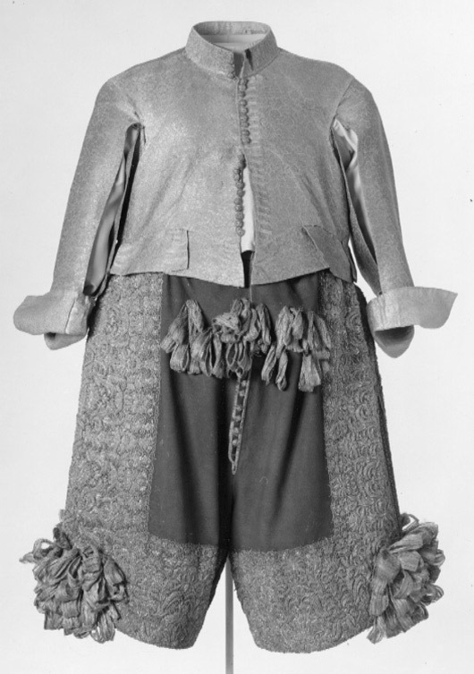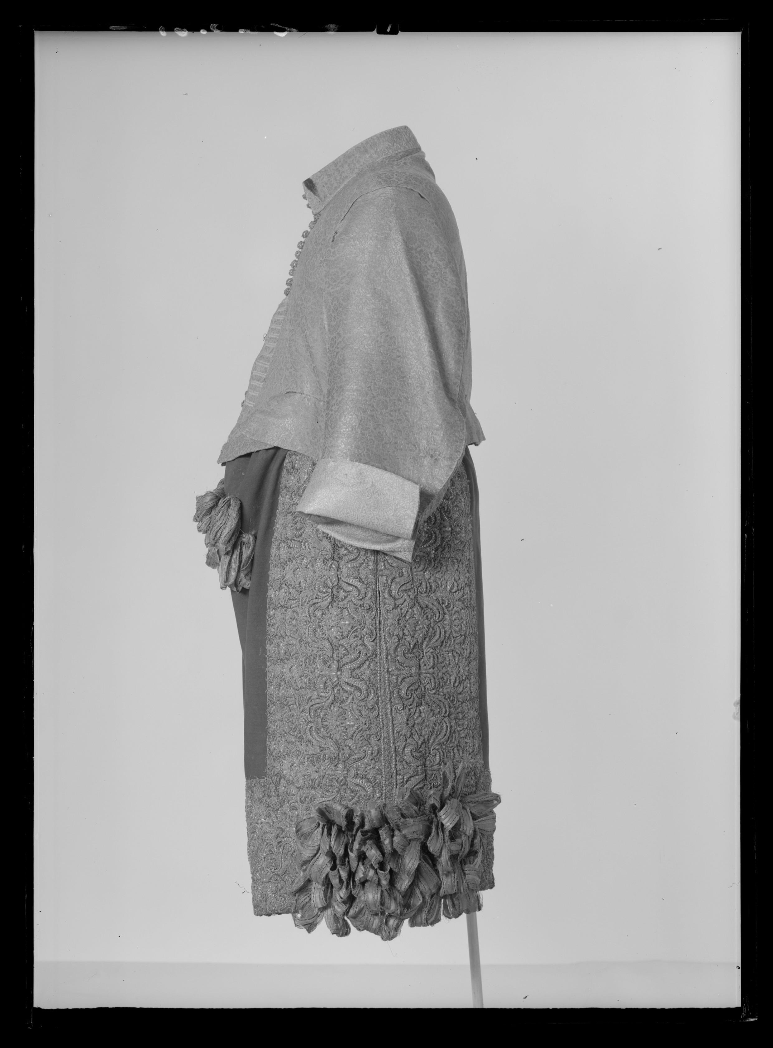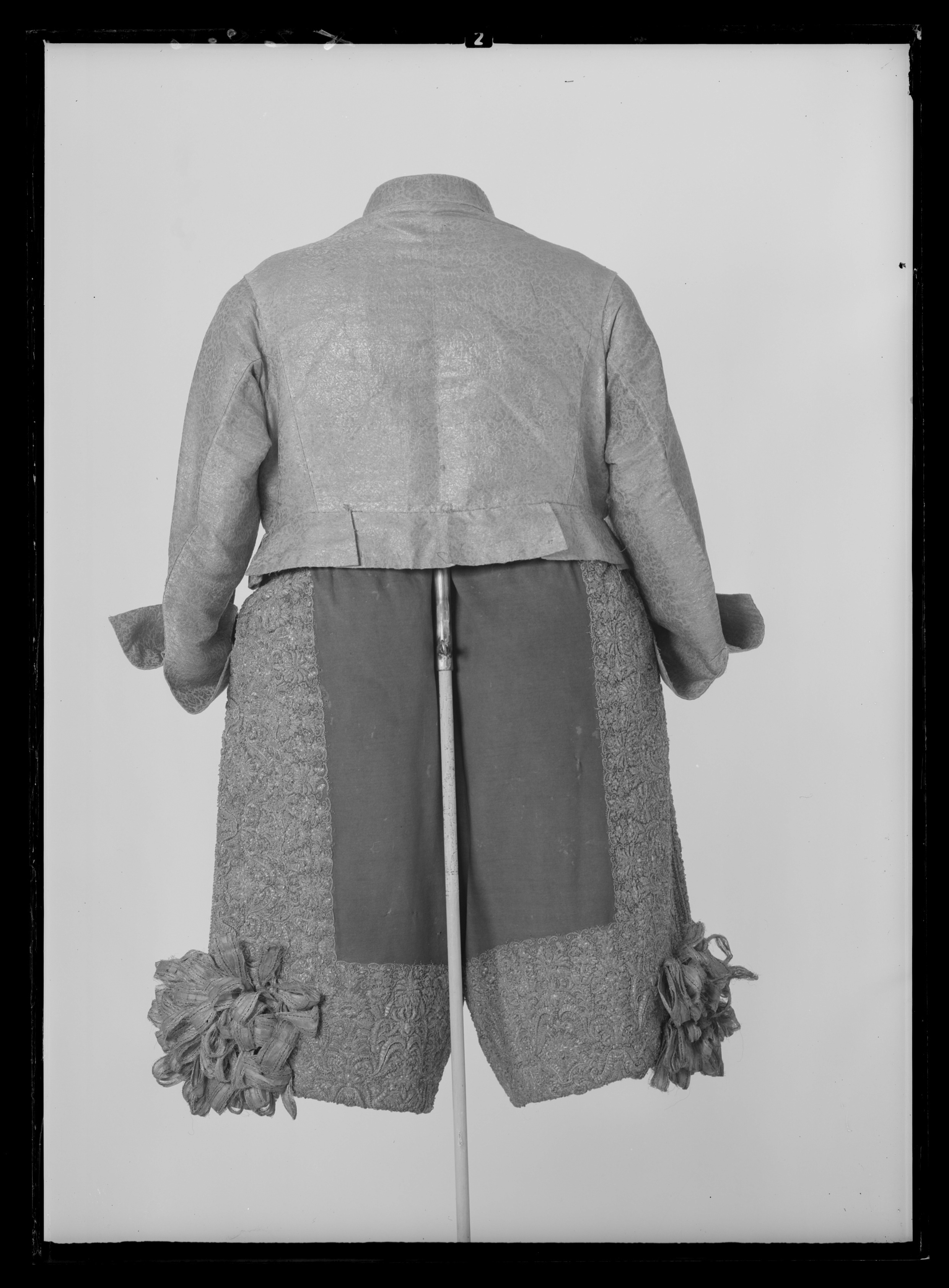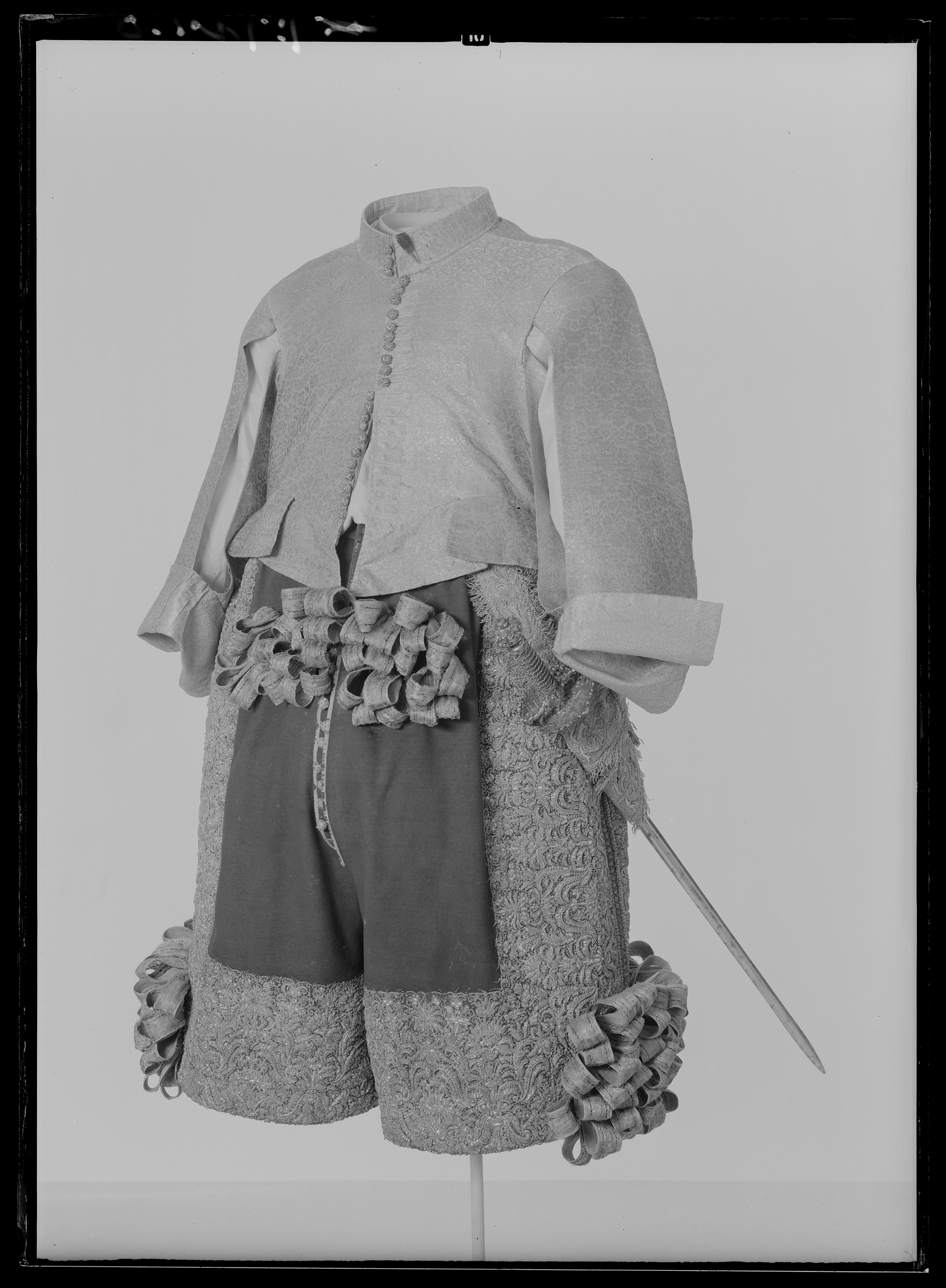 Tröja av mönstrad silverbrokad, ca 1650-1660, använd av Karl X Gustav vid kröningen 6 juni 1654.