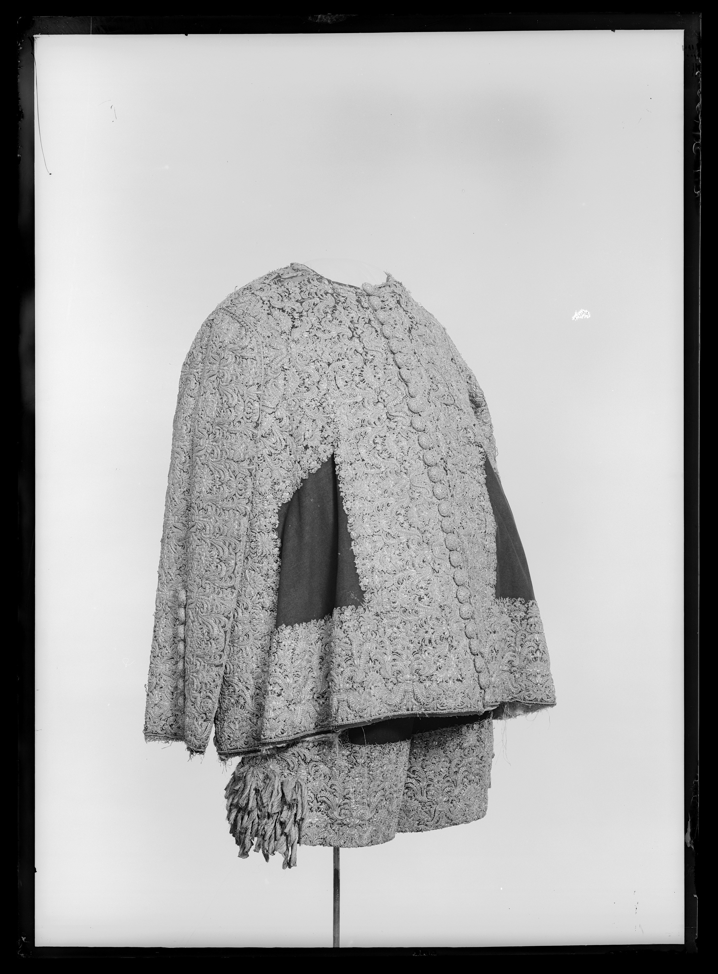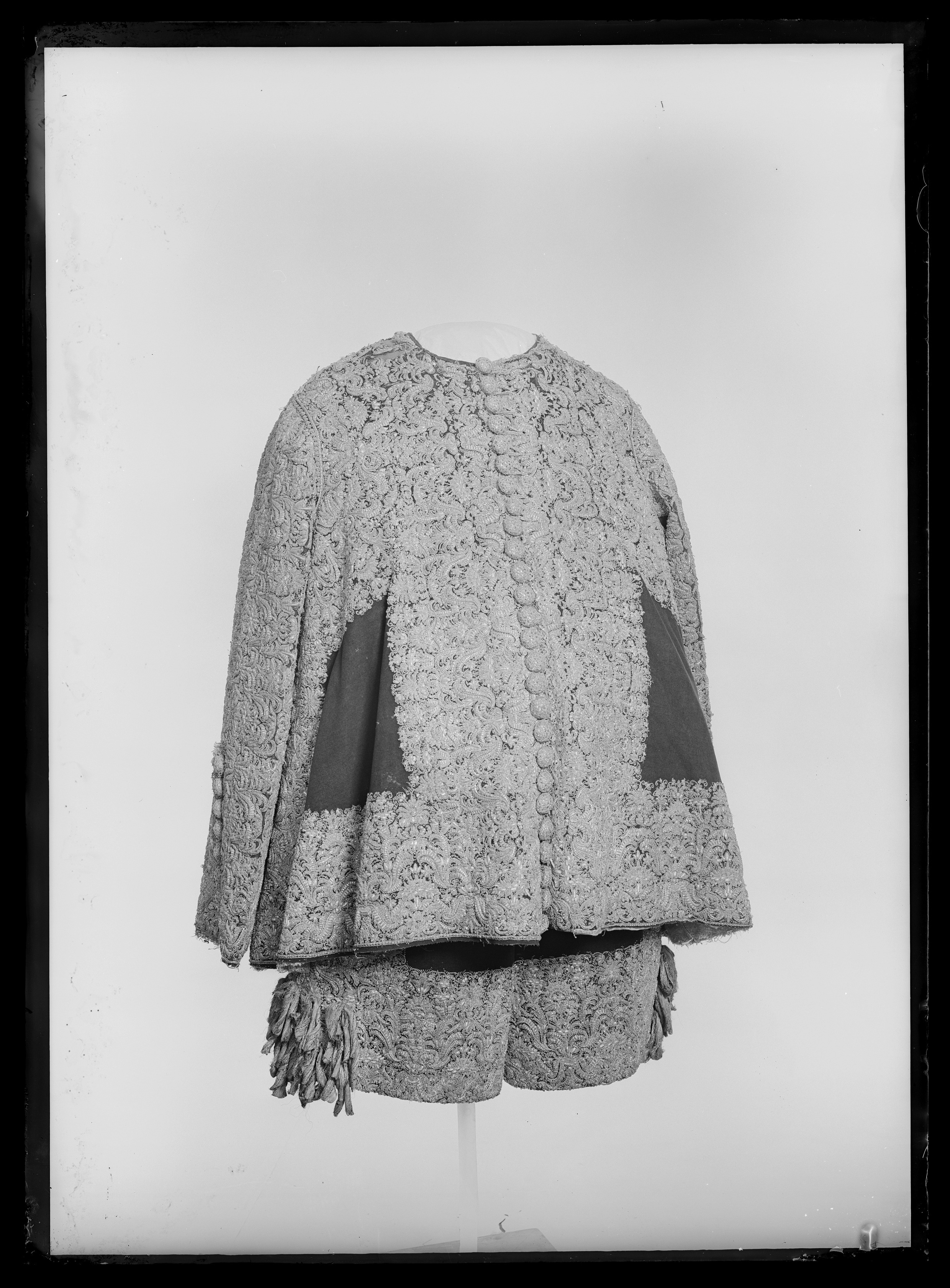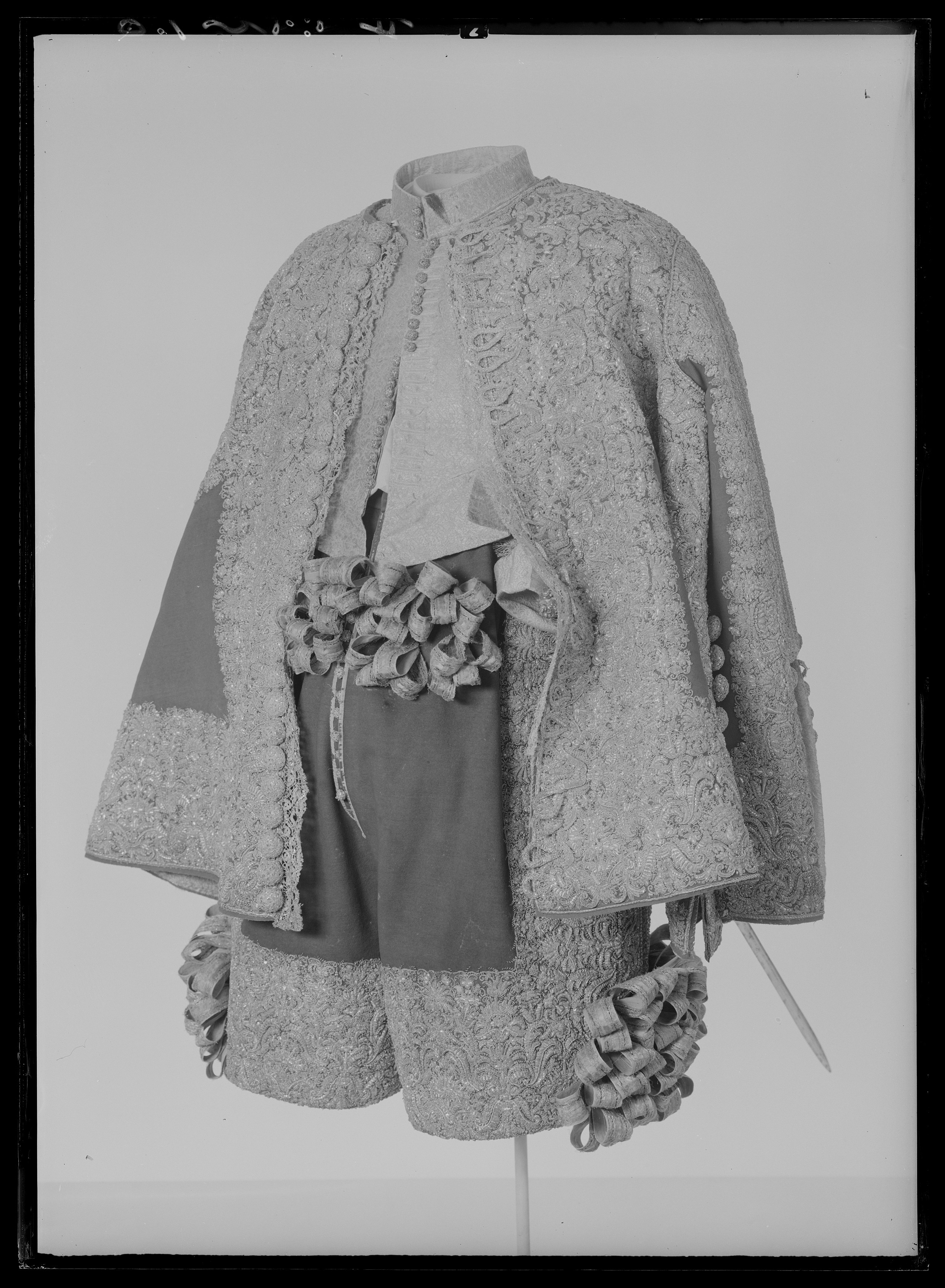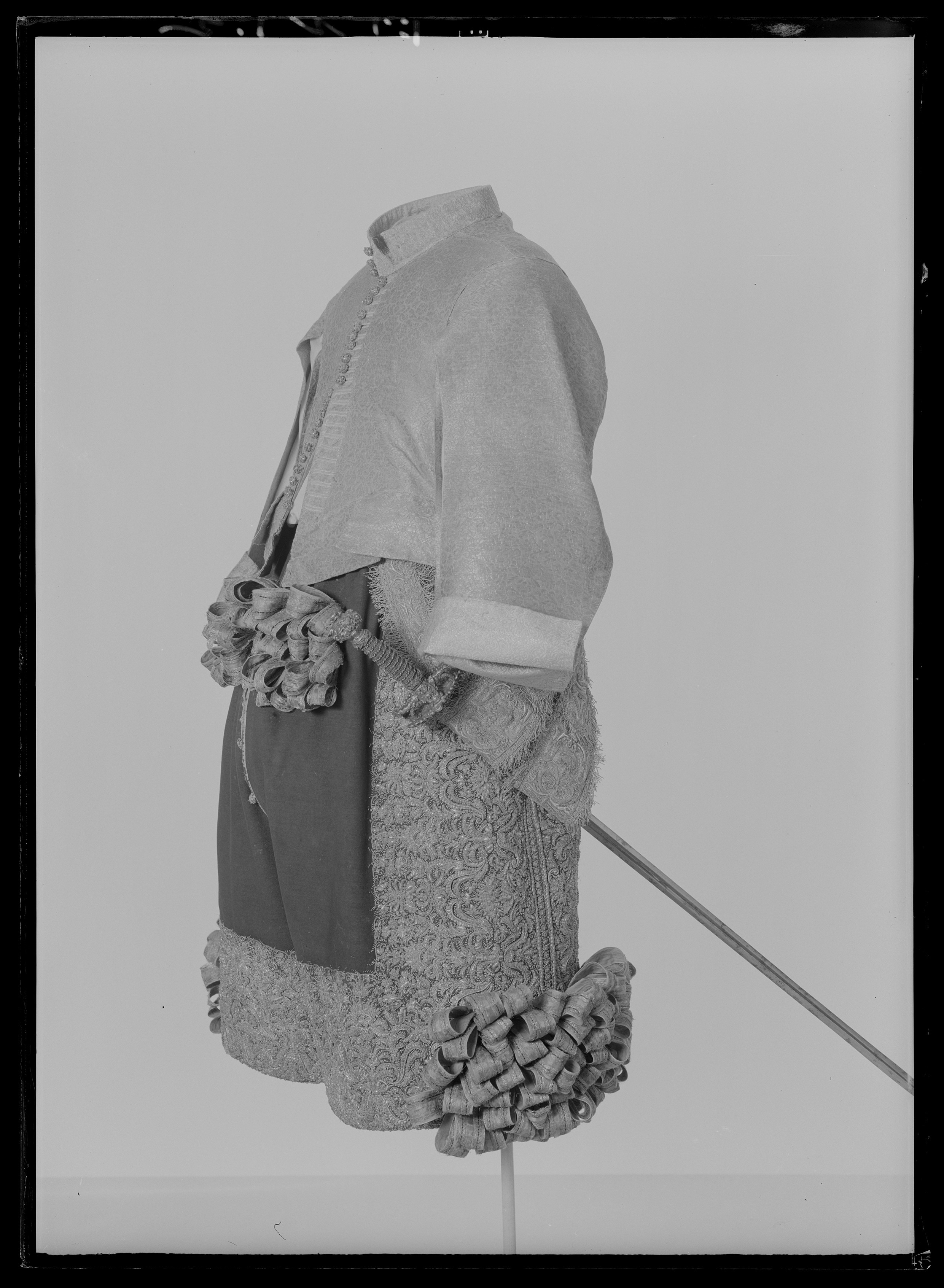 Tröja av mönstrad silverbrokad, ca 1650-1660, använd av Karl X Gustav vid kröningen 6 juni 1654.