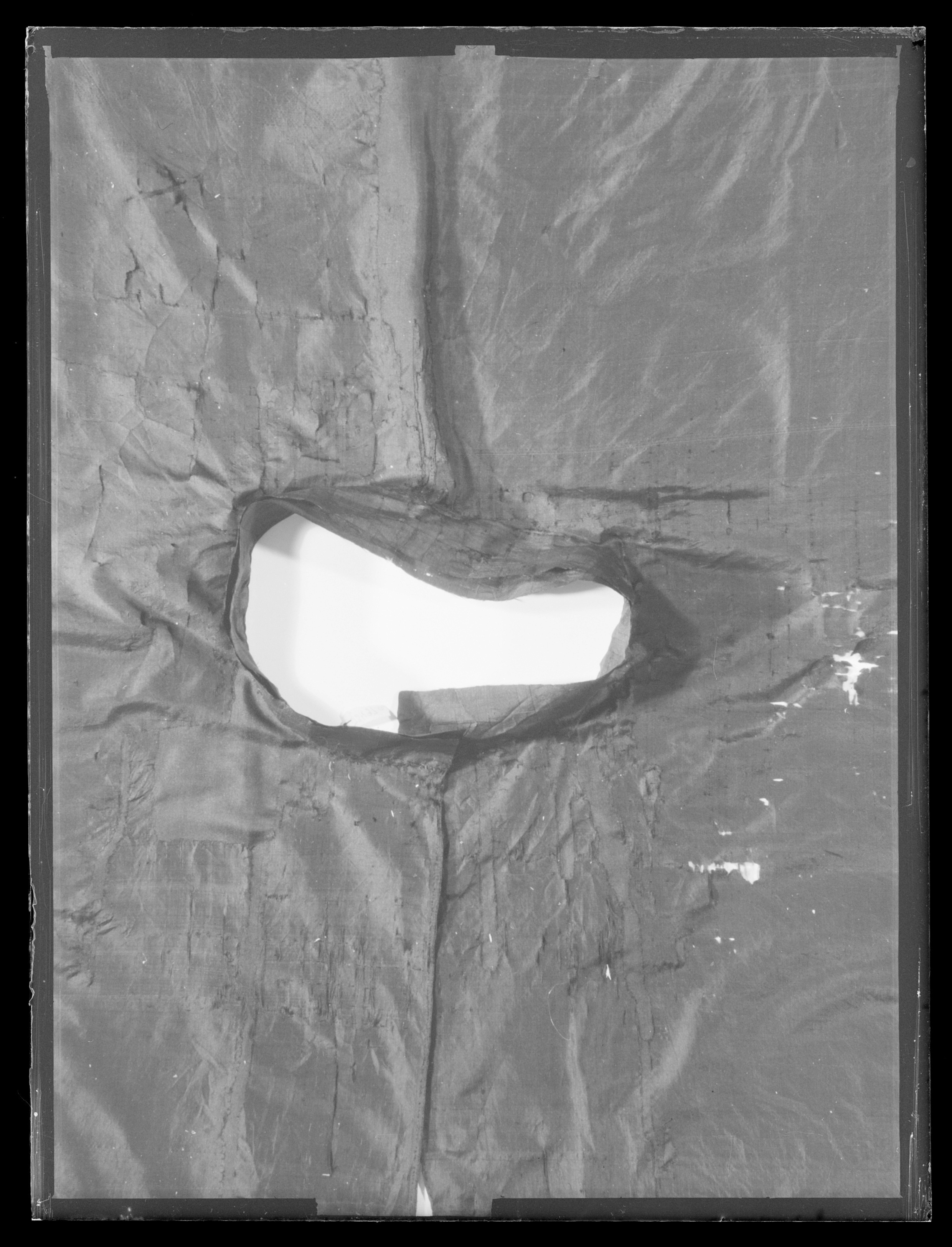 Diverse linnen, som varit nyttjade till kompresser å skottsåret, bestående af fyra fyrkantiga finare och gröfre linnestycken af hvilka två äro märkta med kunglig krona af blått garn; alla hafva fläckar af blod;