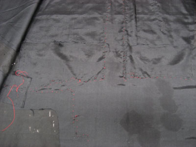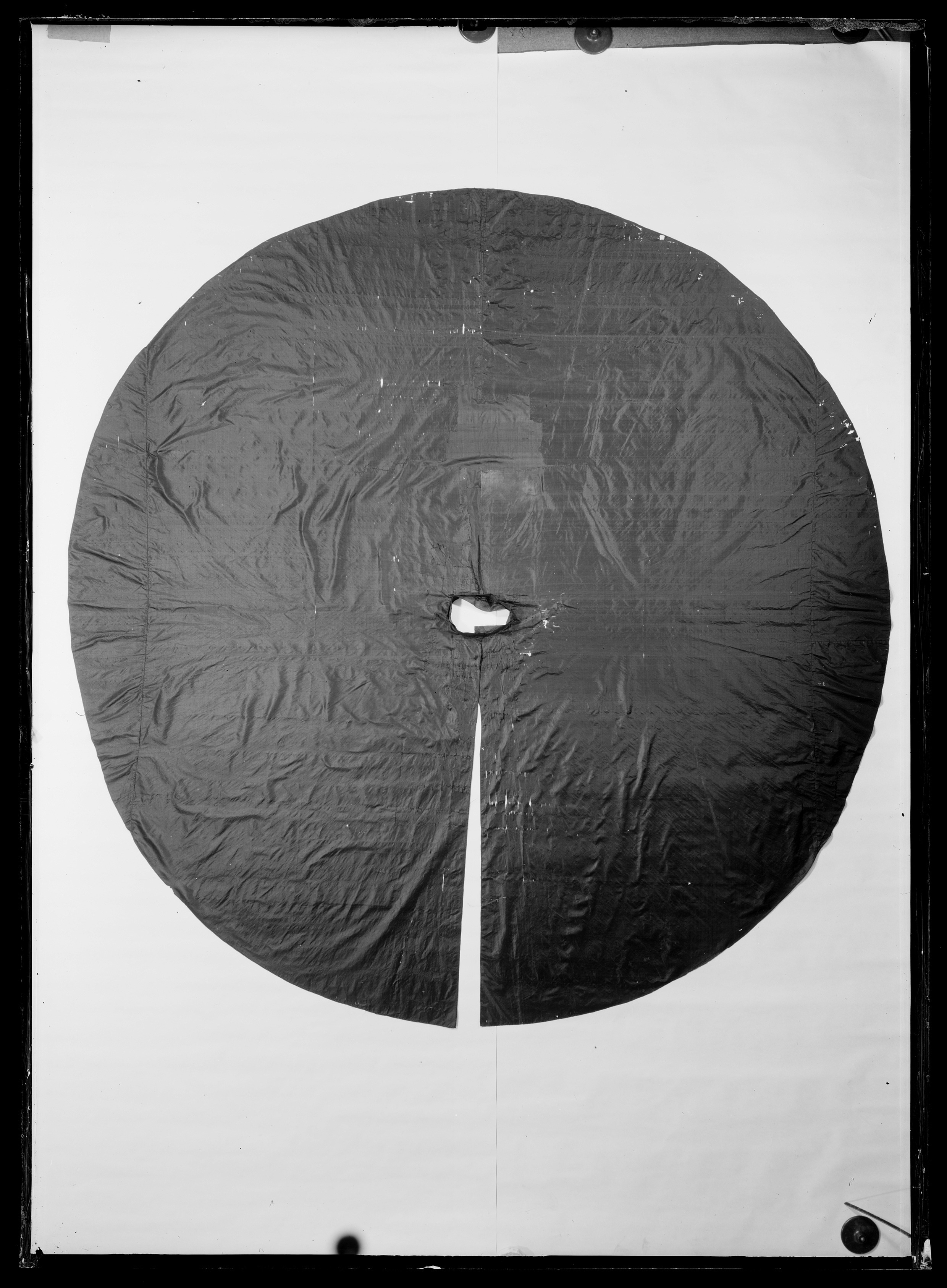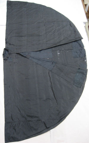 Kopia av den rundskurna svarta taftkappan 3497 a) utförd af Fröken Gertrud Cederwall i okt. 1955. Material: fransk taft ink. fr. De förenade Spets- och Siden. (G. E-d)