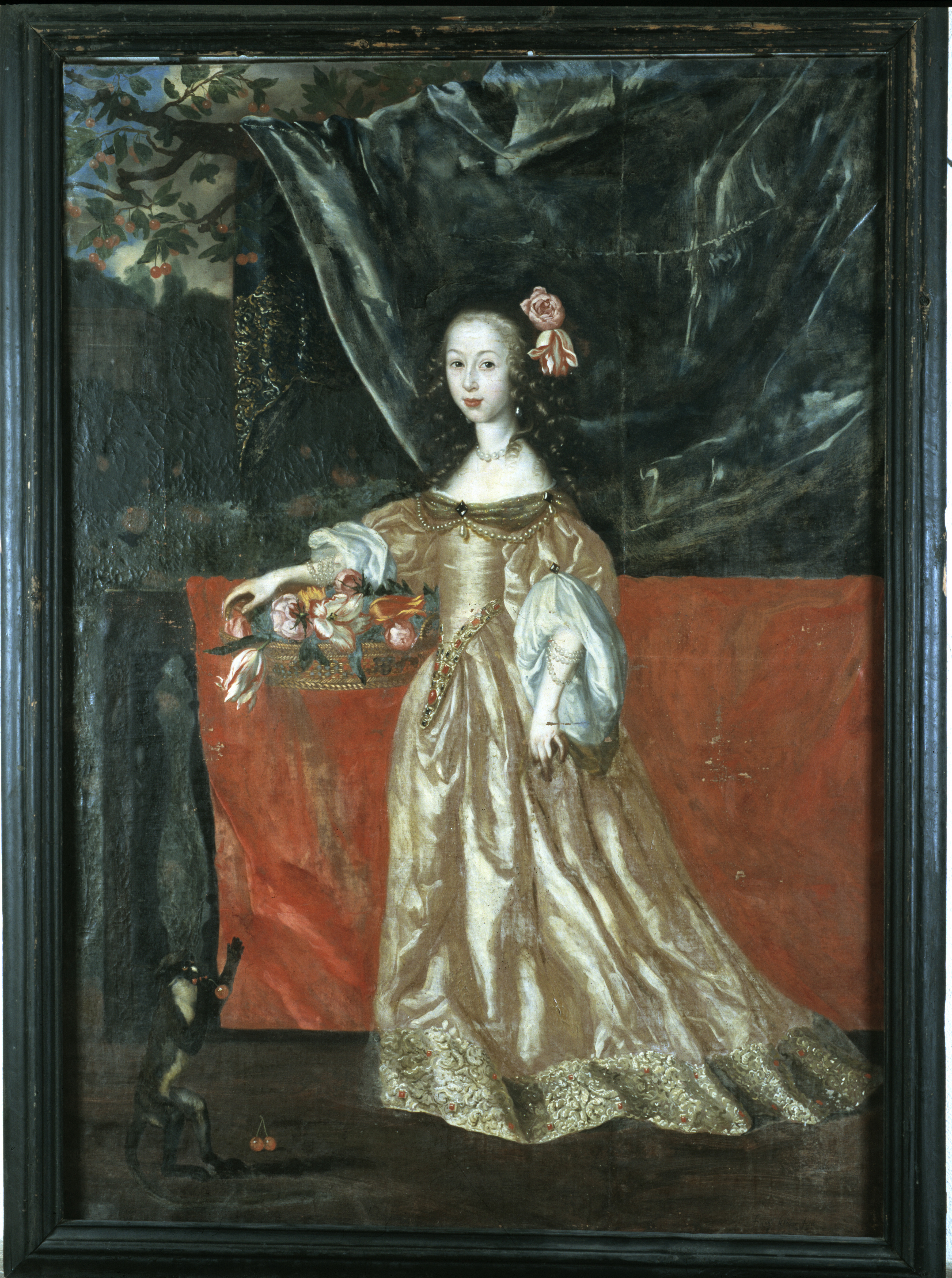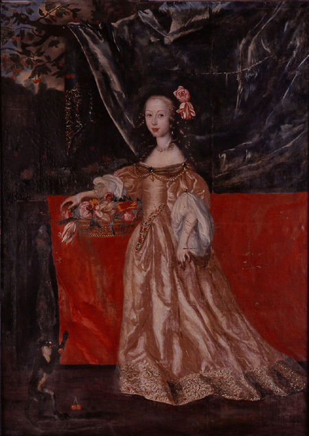 Margareta Juliana Wrangel (1642-1701) var Carl Gustaf och Anna Margareta Wrangels äldsta dotter. Hon blev länken till kommande generationer på Skokloster. Genom Julianas äktenskap kom Skokloster att länkas till familjen Brahe. Gift med Nils Brahe d.y. (1633–1699). Helfigur stående halvt vänster. Gul sidenklänning med puffärmar, vid kjolfållen bred, broderad och pärlbesatt, bård. Livet med spetsig avslutning, där stenar i rött och blått följer konturen. I håret röda blommor. Pärlörhängen, halsband och armband i flera runt båda handlederna. Pärlor också på klänningen runt halsringningen. Under ena armen en korg med blommor. I fonden bord med röd duk samt blått draperi på fruktgren. T.v. på marken en markatta med körsbär. Olja på duk. Kilad spännram. Profilerad, svart ram. Ramlistens bredd 90 mm. Sign.: "David Klöker fecit Ao 1651".