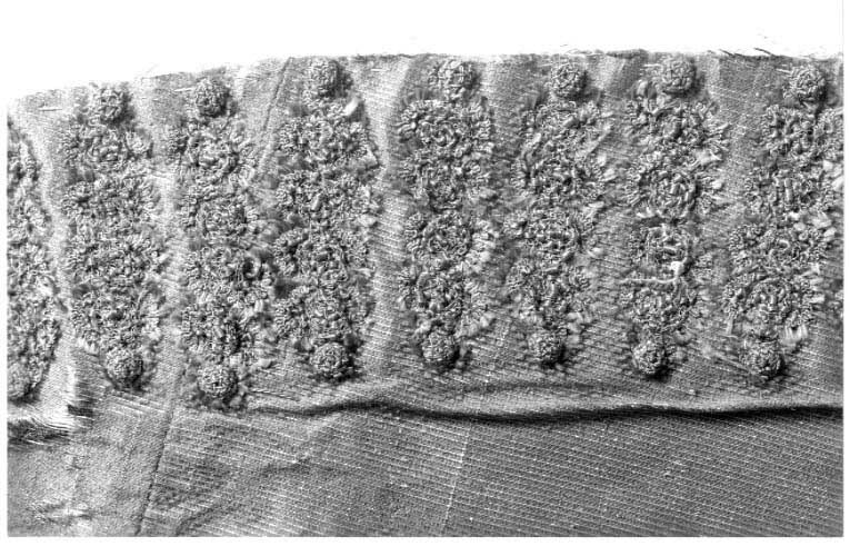 Av grått silvertyg, silke med flotterande silverinlsag, Dekorerade med snörmakeriarbete i nederkanten. Foder av blommönstrad silverbrokad.Tillhört Karl X Gustav (1622-1660). Gudrun Ekstrand:"Ströfflingar", eller kanoner, sydda av samma tyg som dräkten i övrigt och fodrade med samma brokad som i jackan. De är sydda i konisk form med söm utefter den svängda kanten. De består av en hel våd av silverdukstyget (övertyget), som man dessutom har varit tvungen att skarva i hörnen. Även fodret är en hel våd, som man ökat ut med än större bitar i hörnen, då ju detta tyg är smalare. (En extra hörnkil har i båda kanonerna har varit tvungen att sättas på ena sidan i fodret). Längs den breda öppna kanten löper en 6 cm bred bård av snörmakerier, eller 39 st "litzor".Vid den smala delen, som skall knytas omkring benet, har ett ca 1,3 cm brett ripsband i samma färg som tyget i övrigt sytts på såsom skoning och sannolikt fortsatt i knytband. Ett ca 7 cm långt sprund har lämnats i sömmen i denna smala ände.