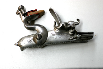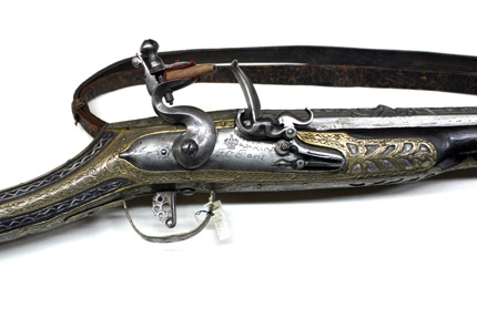 Flintlåsbössa, av grekisk typ, pipa signerad F.a C.o Paris Torchio, Brescia, lås F. C Paris, ca 1840.