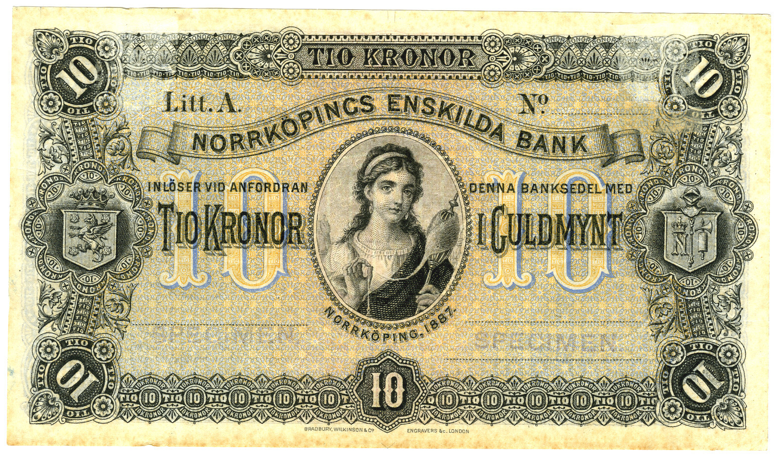 Upphov: Norrköpings Enskilda Bank. Media: Statens historiska museer. Ekonomiska museet - Kungliga myntkabinettet/SHM, (PDM) Upphovsrätten till detta verk har gått ut och är därmed fritt att använda på alla sätt. Ange gärna upphovsperson om denne är känd.