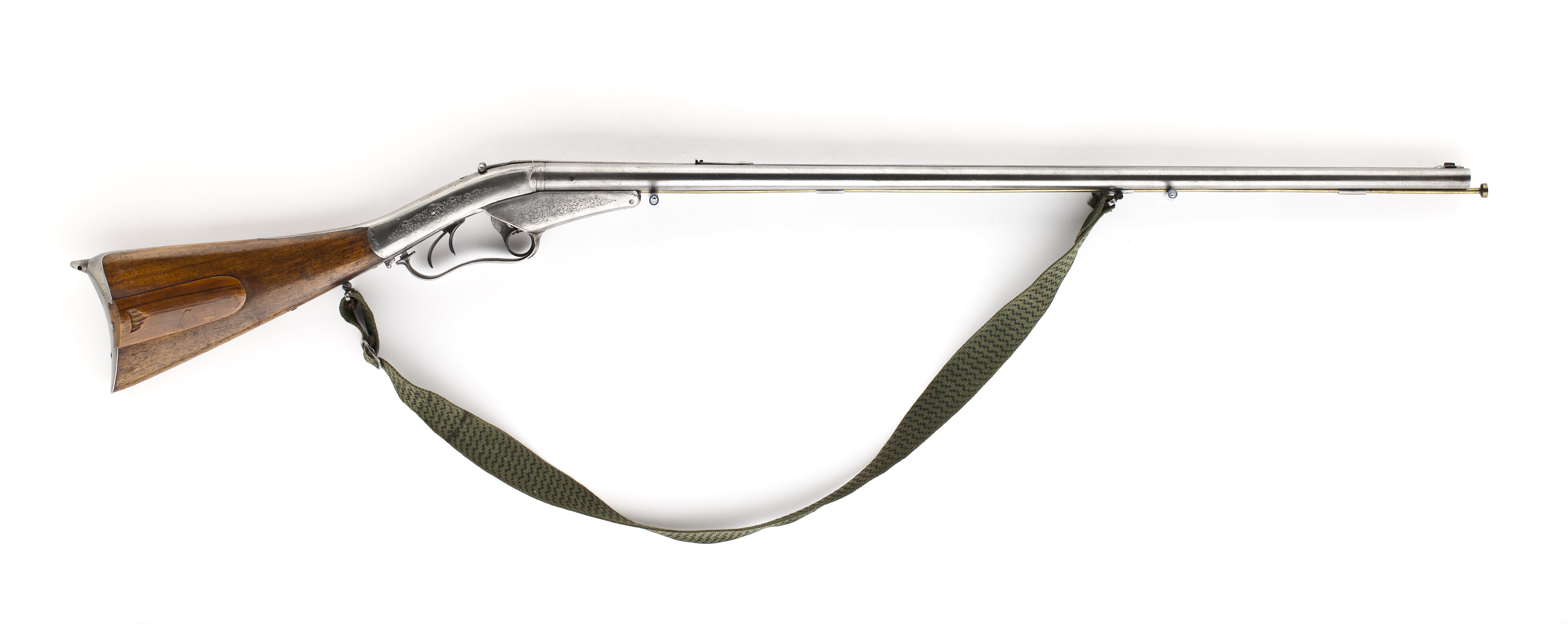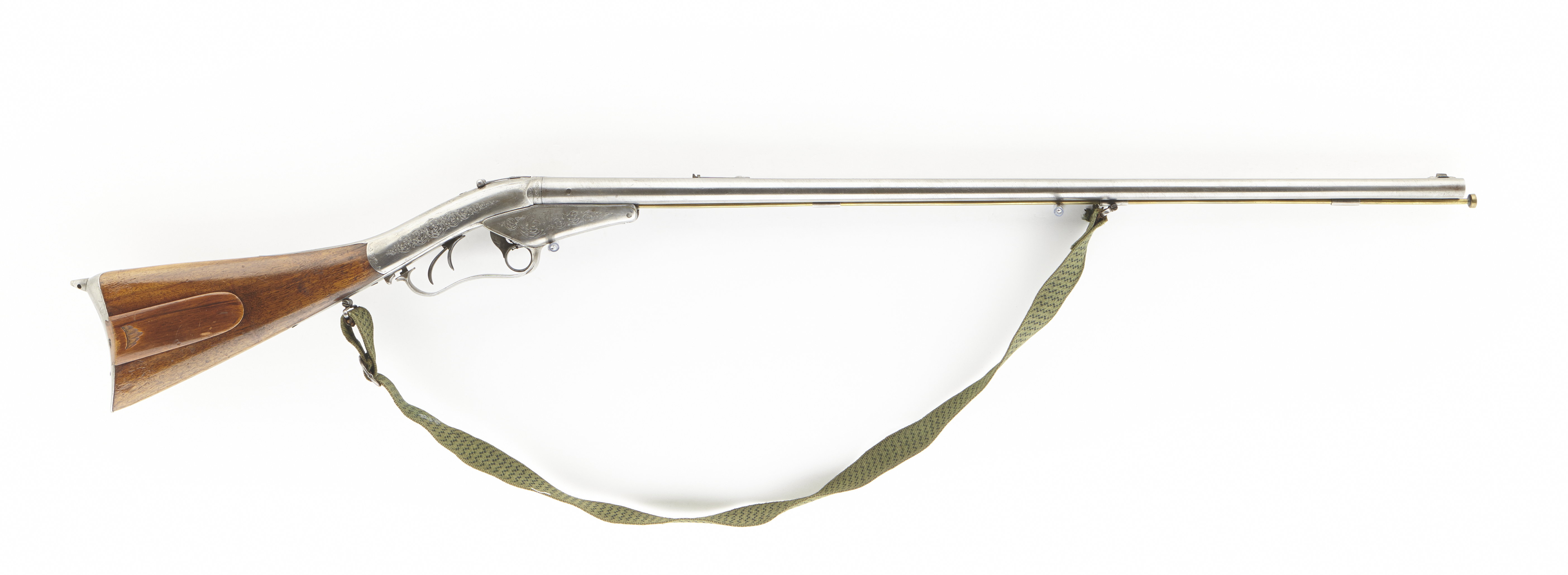 Slaglåsdubbelbössa, framladdare med tändhattsnipplar i svansskruven, konstruerad och tillverkad av A. Fornander 1847.