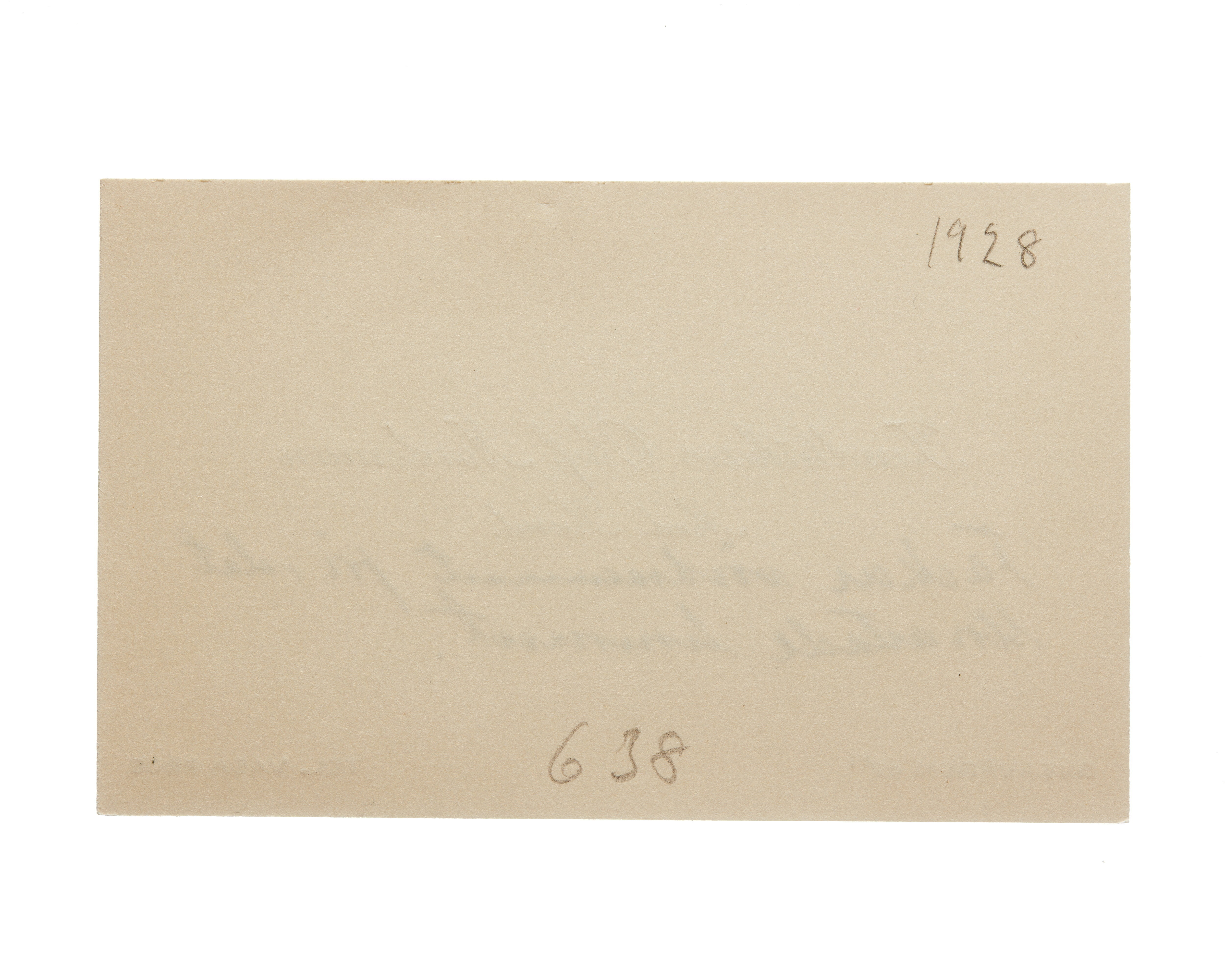 Ett visitkort från Tandläkare Olof Nordeman, Med. Kand. daterat 1928. Adress (nedre vänstra hörnet) Sveavägen 47 III. (nedre högra hörnet) Tel. Vasa 9308. Handskrift "...".