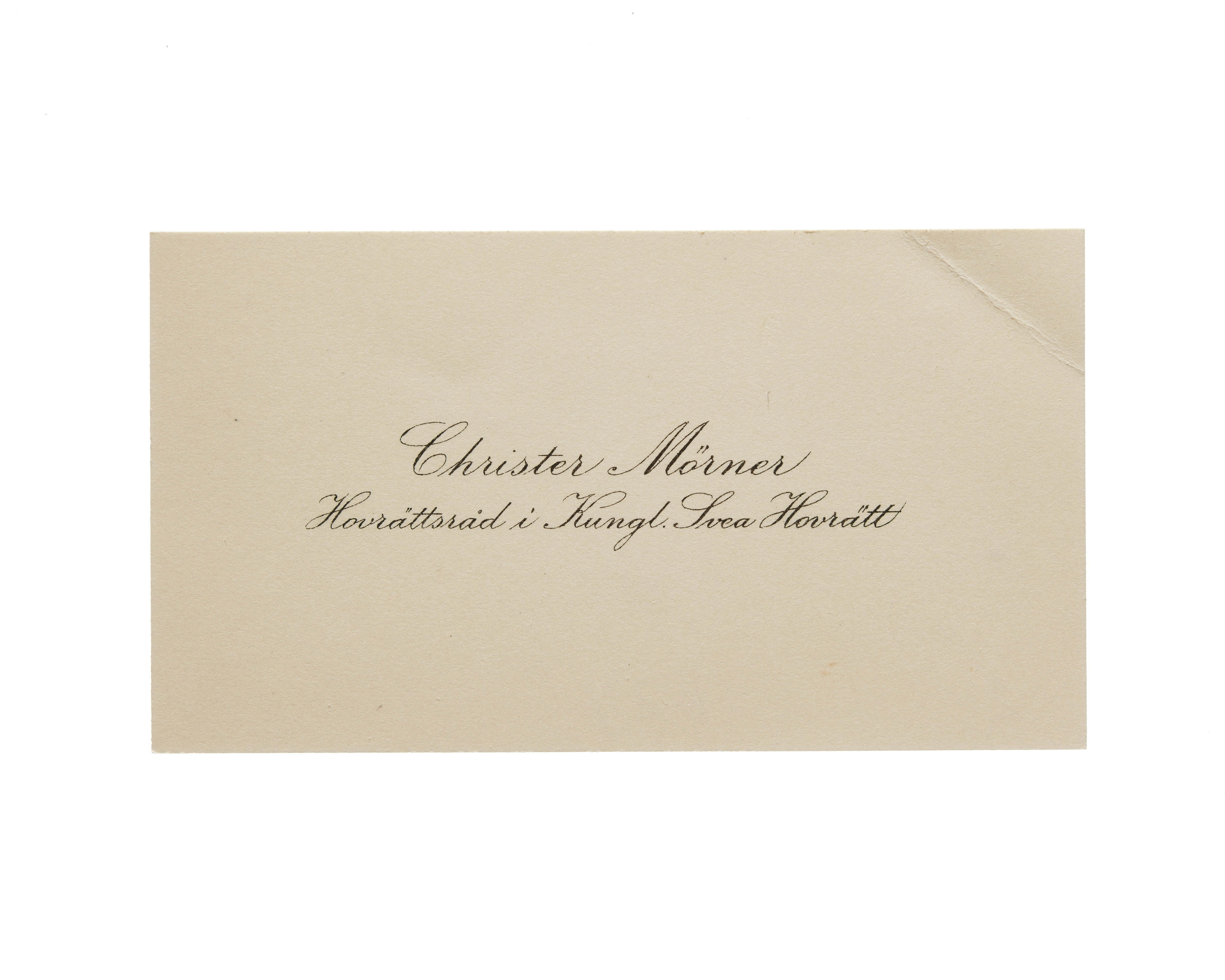 Visitkort från Christer Mörner, Hövrättsråd i Kungl. Svea Hovrätt.