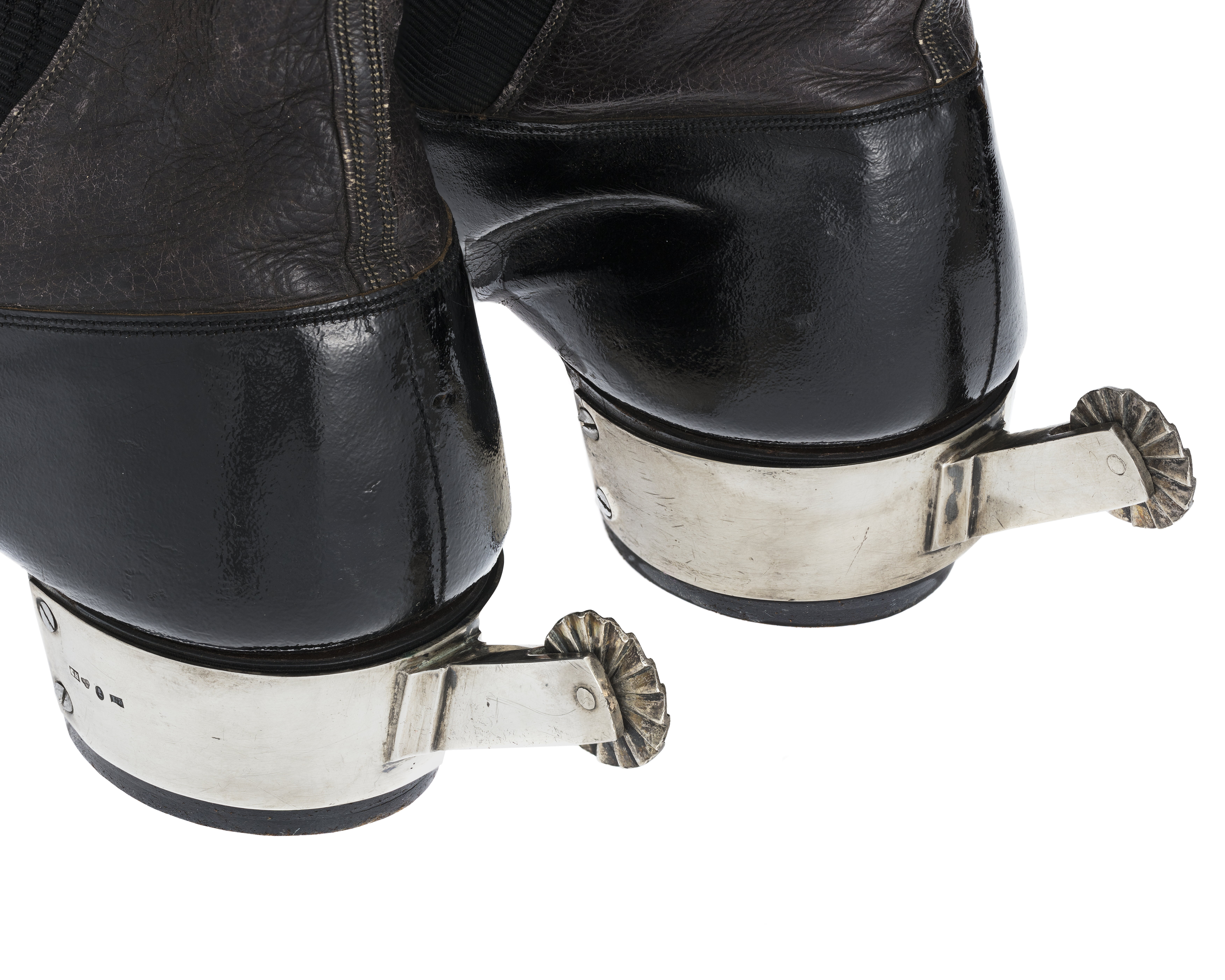 Sporre av silver med breda U-formade skänklar, i vars ändar två skruvar fäster sporren i stövelklacken. Hals 43 mm lång med rektangulärt tvärsnitt snett uppåtriktad. Finräfflad klinga. På ena skänkelns utsida stämplar: "C. H., tre kronor, St Erik i profil, L5". Har tillhört Karl XV, sammanförd med uniformen, som användes vid kröningen 1860-05-03.