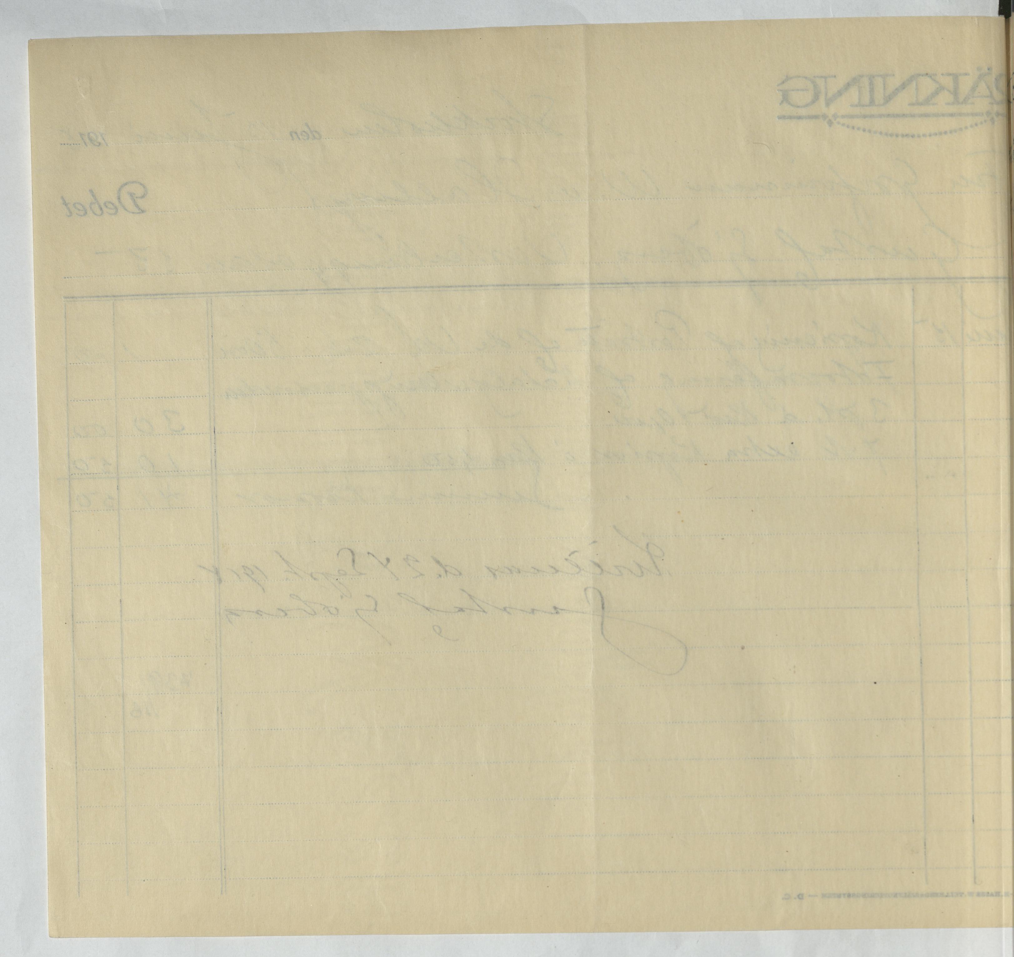 Kvitto från Gustaf Sjöberg