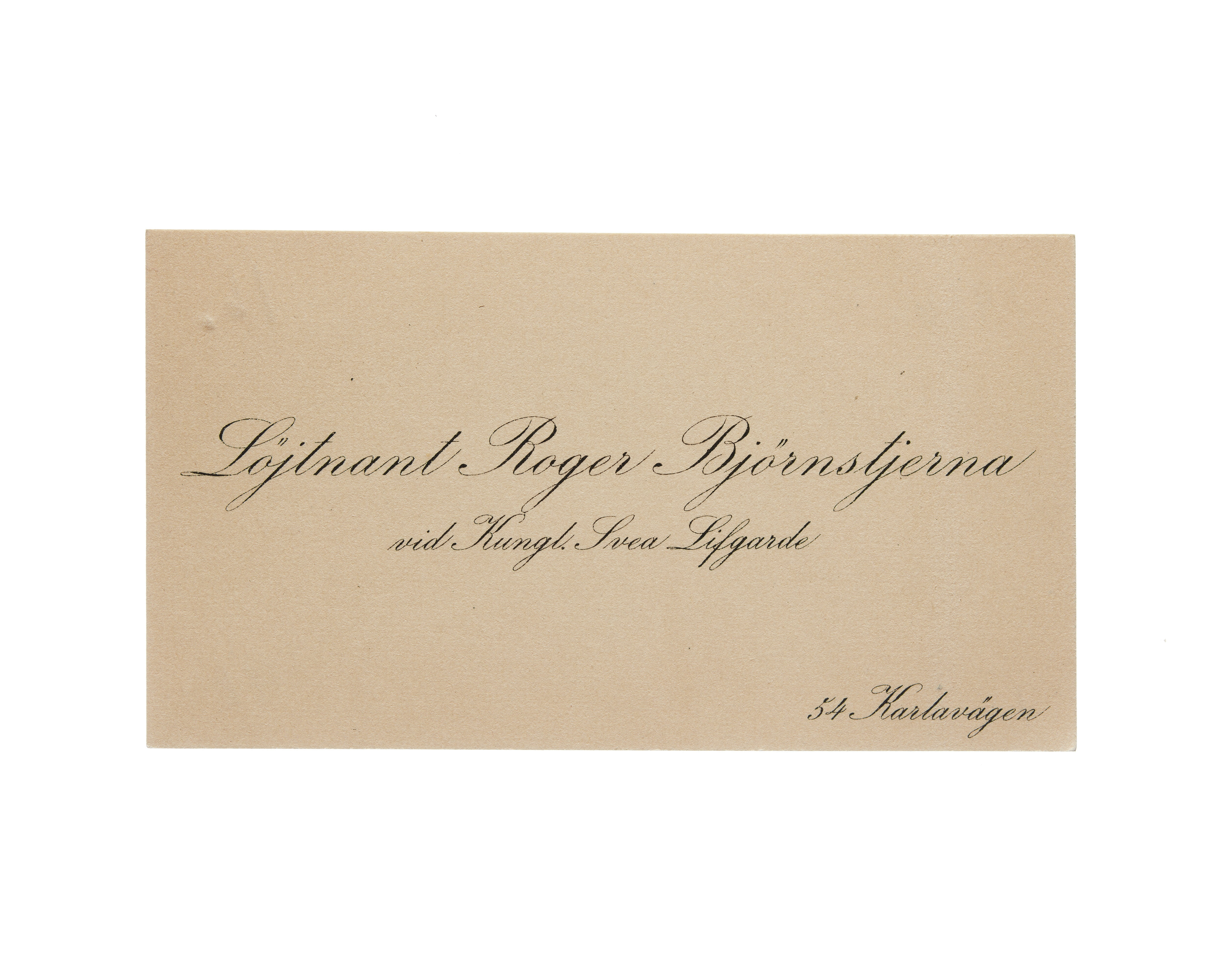 Visitkort från Löjtnant Roger Björnstjerna, vid Kungl. Svea Lifgarde