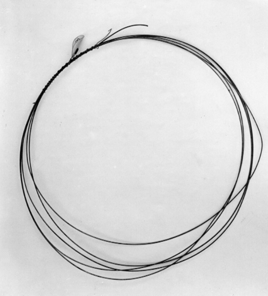 Lindad rulle om fem varv ståltråd, ombunden av en kort koppartråd.