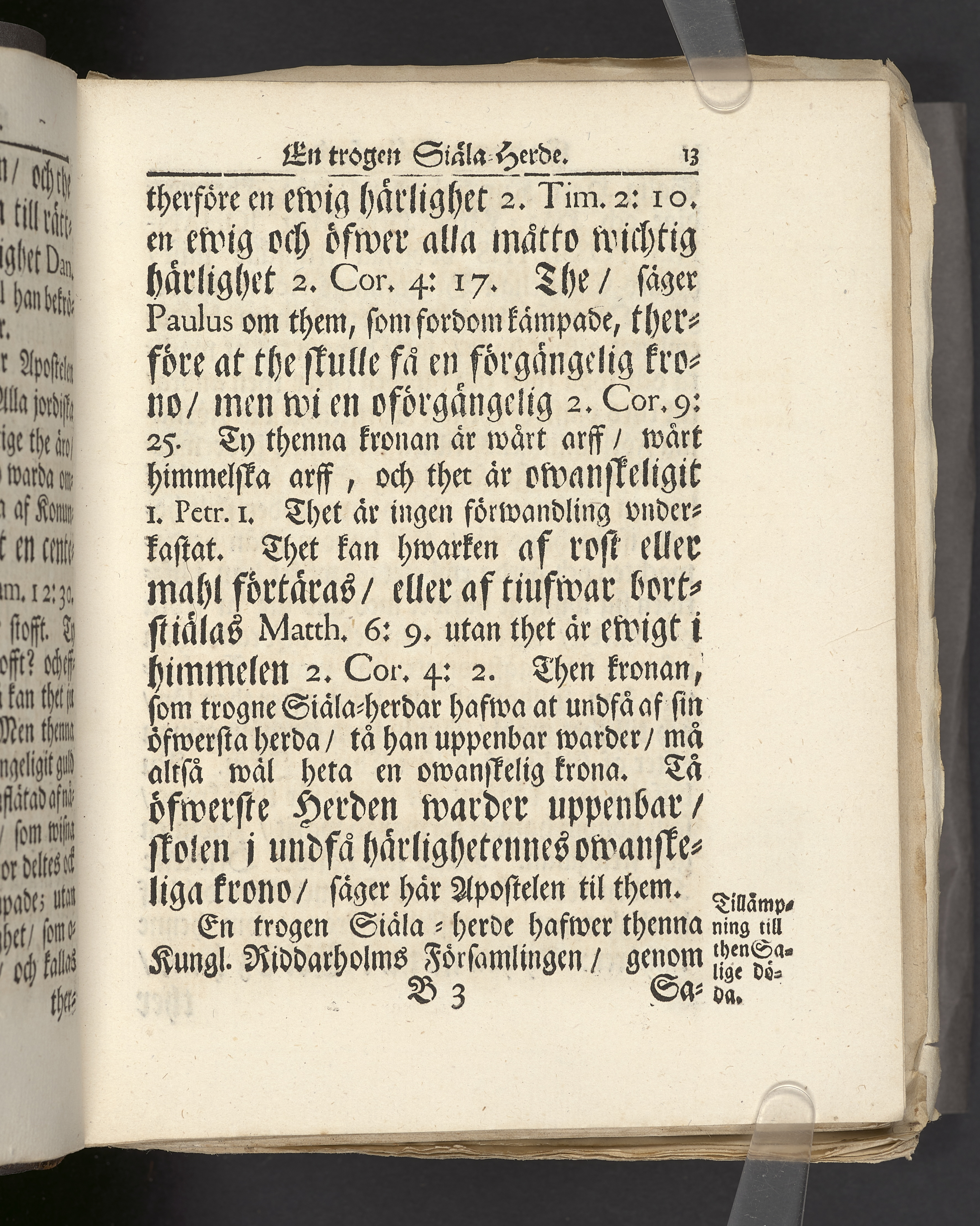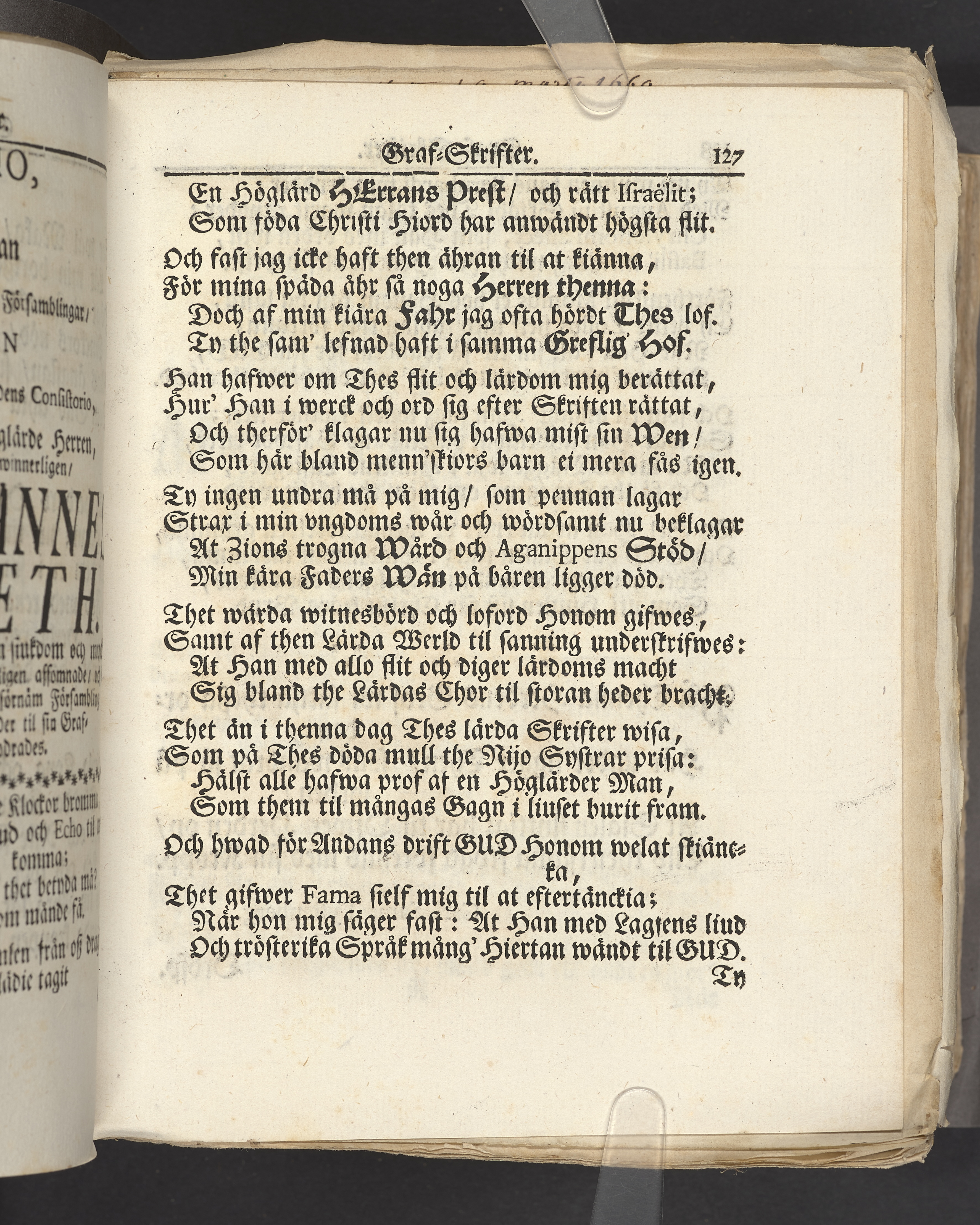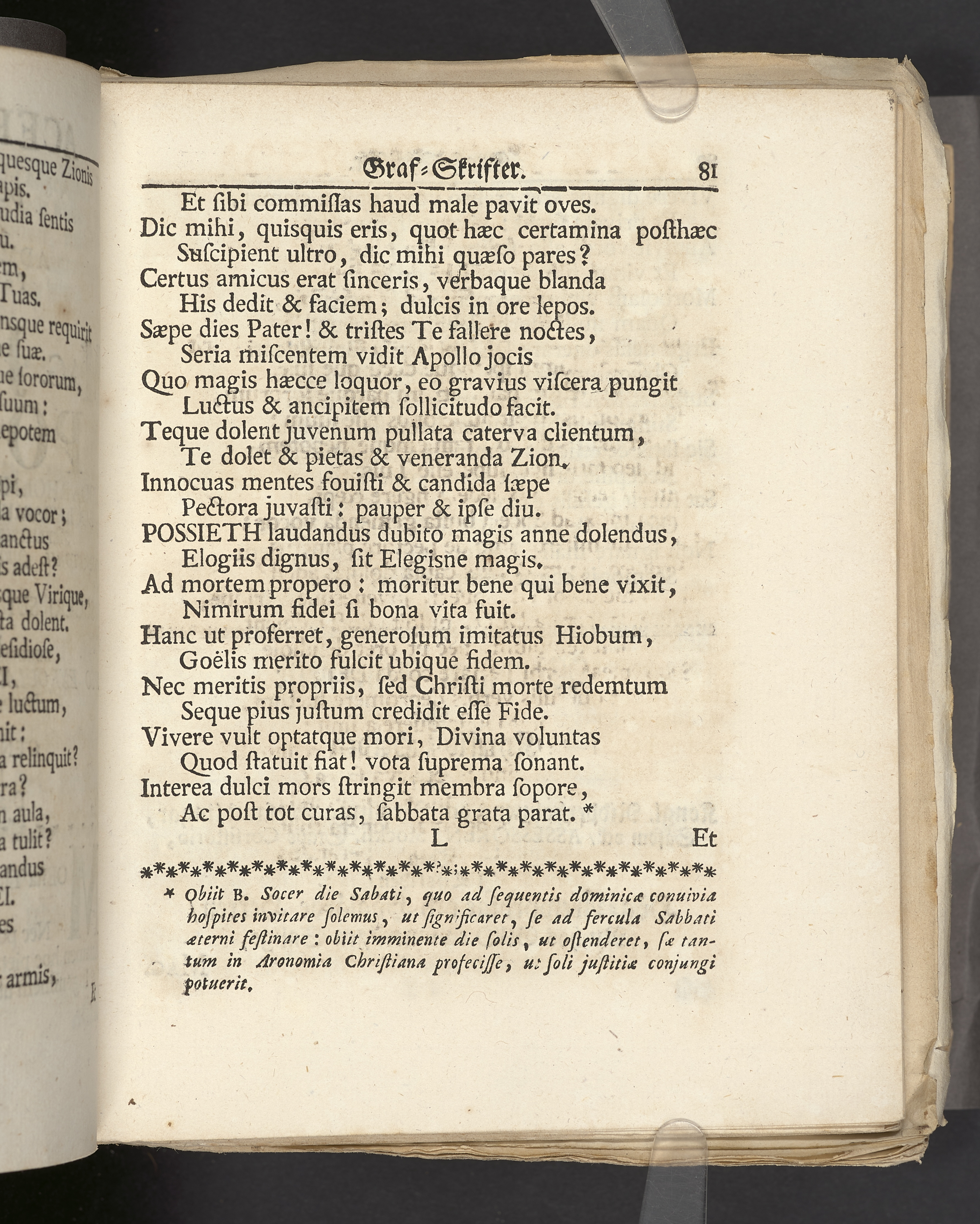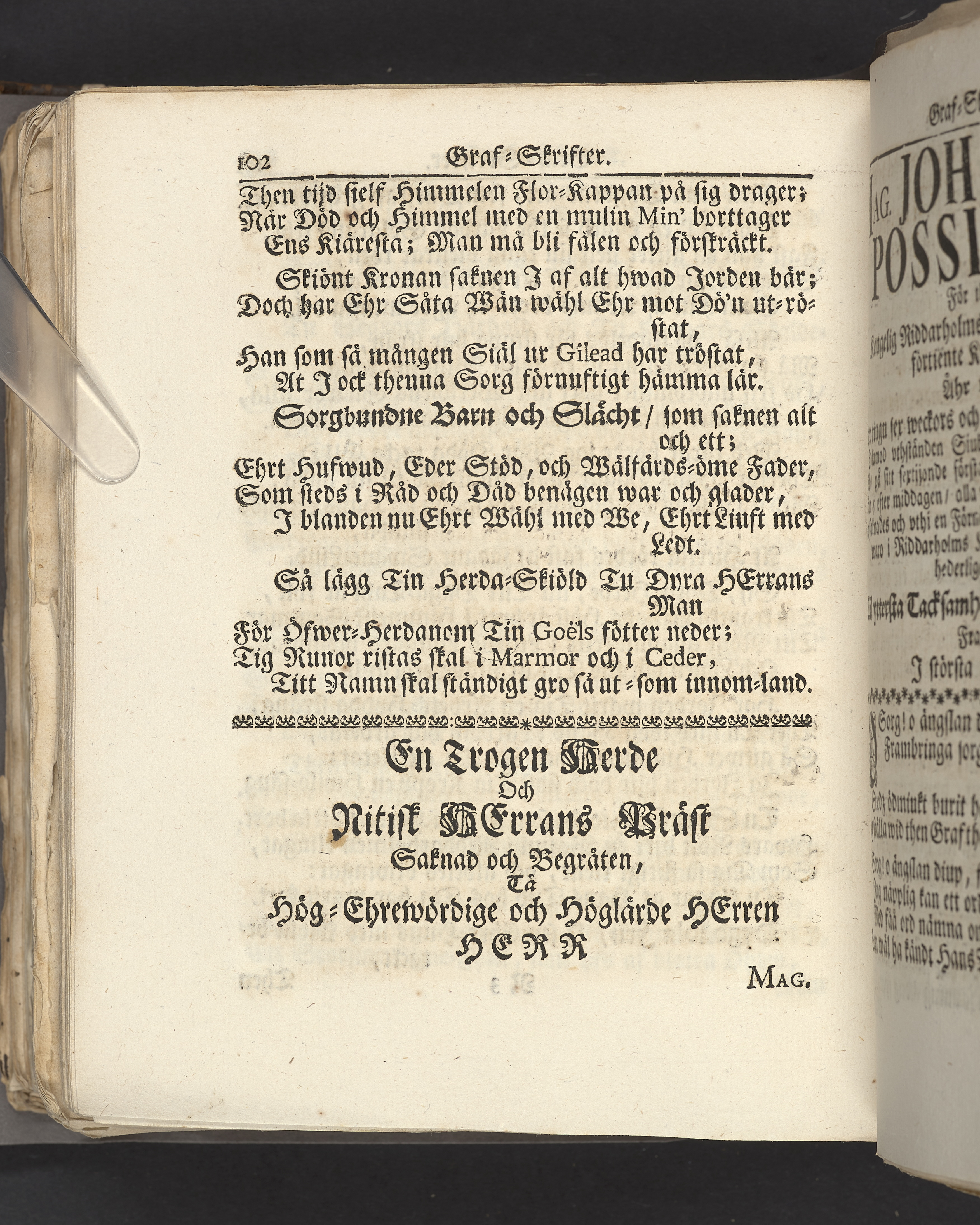 En trogen siäla-herde, uti en christelig lik-predikan öfwer för thetta kyrckioherden uti kungl. Ridderholmens och Bromma församlingar ... nu mehra ewinnerligen hos Gud sal. herren, herr M. Johannes Possieth, som med tillbörlig heder till sin graf och hwilo-kammar blef beledsagad i kungl. Ridderholms kyrckan then 13. aug. anno 1729. före stäld af Nicolao Barchio ... Tryckt hos Joh. L. Horrn, kongl. ant. arch. boktr.