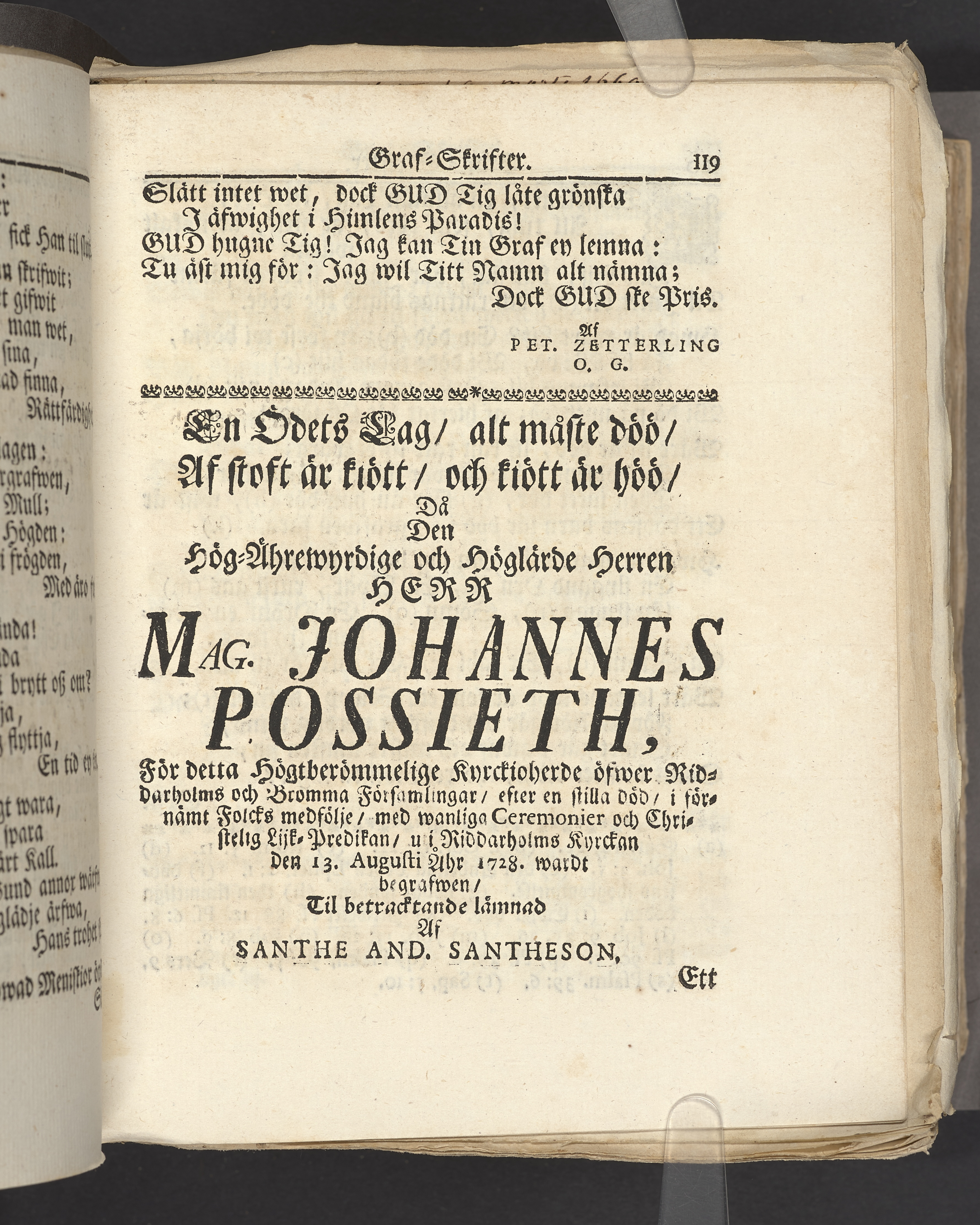 Begravningen av Johan Possieth (Omnämnd på/i)