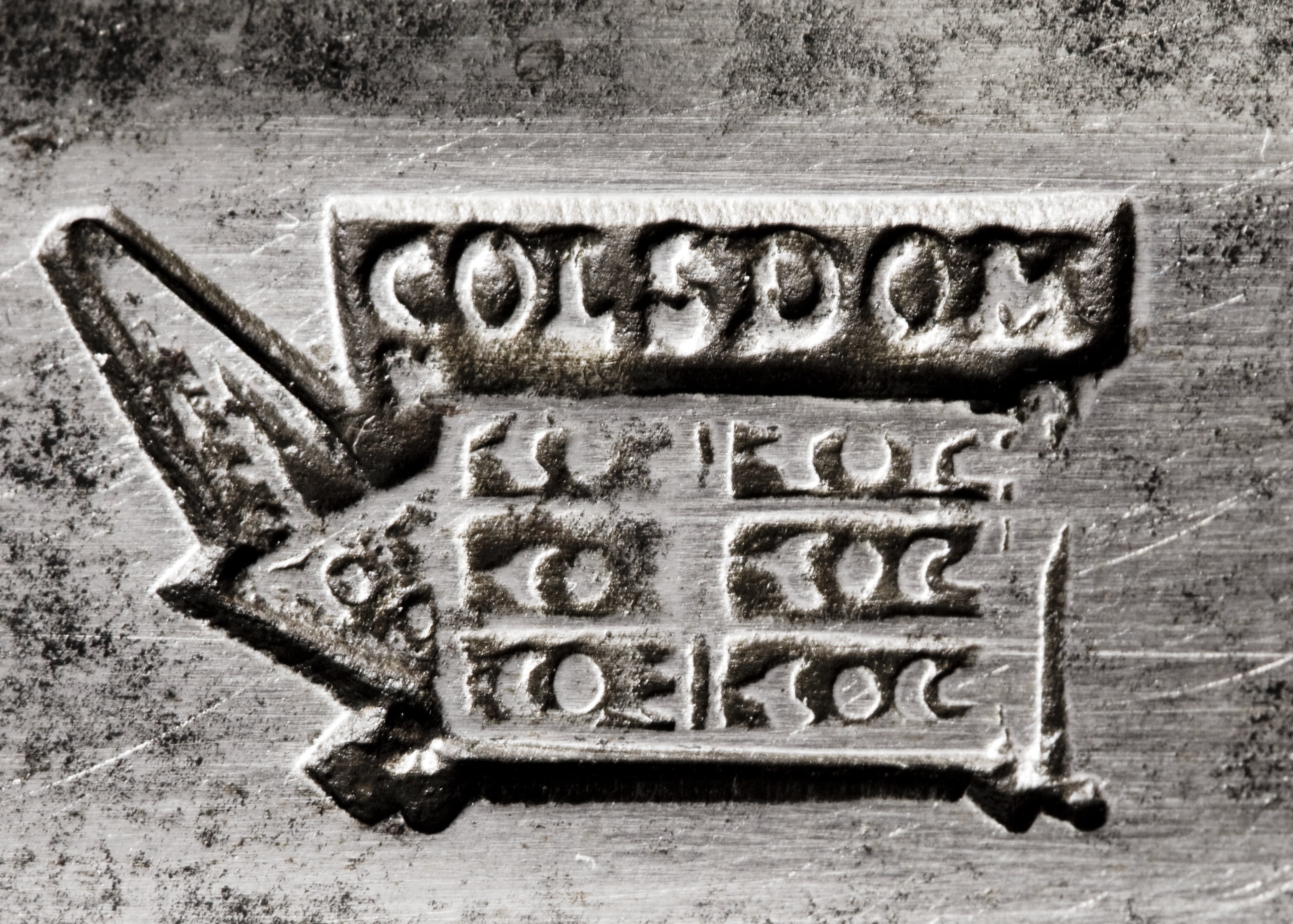 Klinga rak, tvåeggad med mötande jämnbreda skär. Ricasso, l: 50 mm med två hålkälar, som fortsätter på klingans bas. På klingbasen inpunsat två ggr på var sida: "IAN WOLFFERT AVF BERGH", därovanför en smedstämpel med bokstäverna "COLSDOM" samt bild, föreställande Kölner-domen.