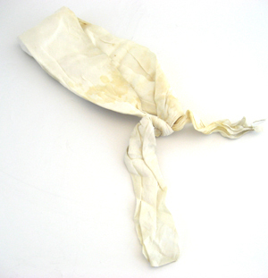 Svulstduk/ huvudduk av vitt linnetyg, vikt på mitten och knuten med två smala snibbar i vardera ände. Duken är 90 mm bred som bredast mitt på då den är vikt. Duken är i ändarna avsmalnande. Kanterna har en smal omvikt fåll, 1 mm bred. Ljusgula fläckar på duken. En orangebrun fläck mitt på i kanten. Den blodiga svulstduken bars av Karl XIV Johan under hans sjukdomstid efter slaganfallet den 18 januari 1844.