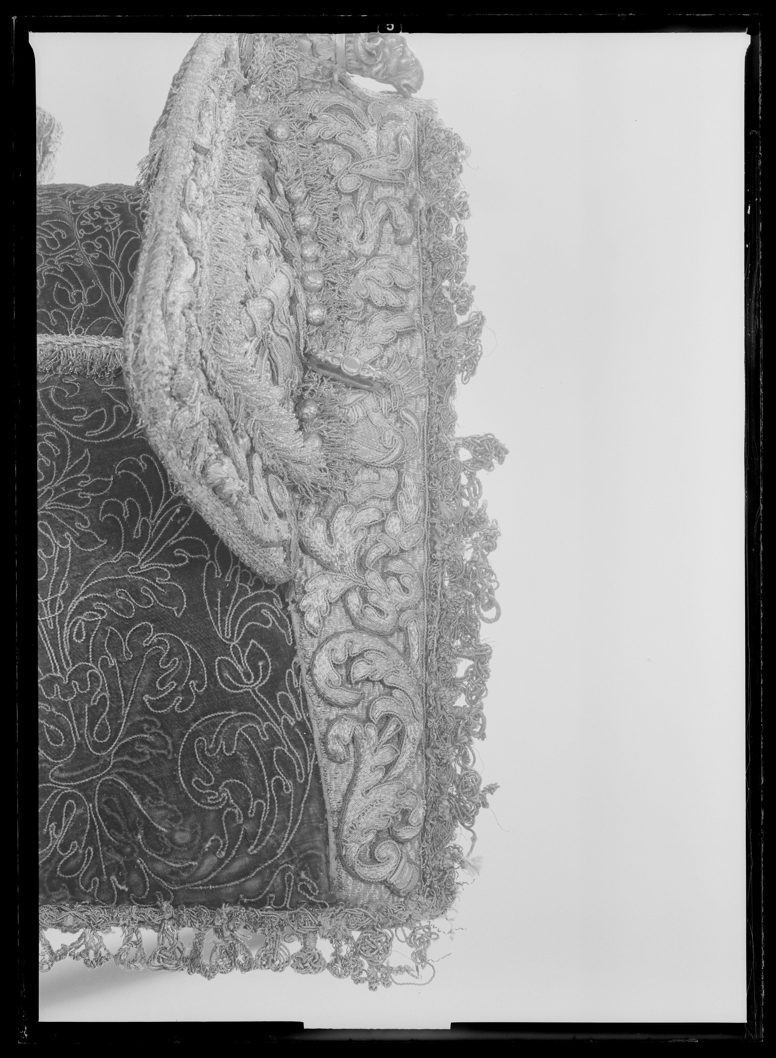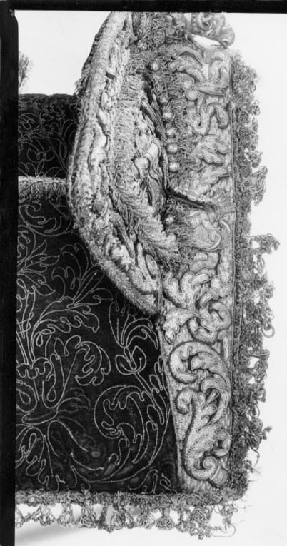 1 st Dto (Sadel) af Colleur de feu Samet med guld Litsquard Tid. inv. nr.: 580 Sida: 82 Nr. i föreg. inv.: 76 Sida i föreg.inv.: 182 Anmärkning: Le Crusque