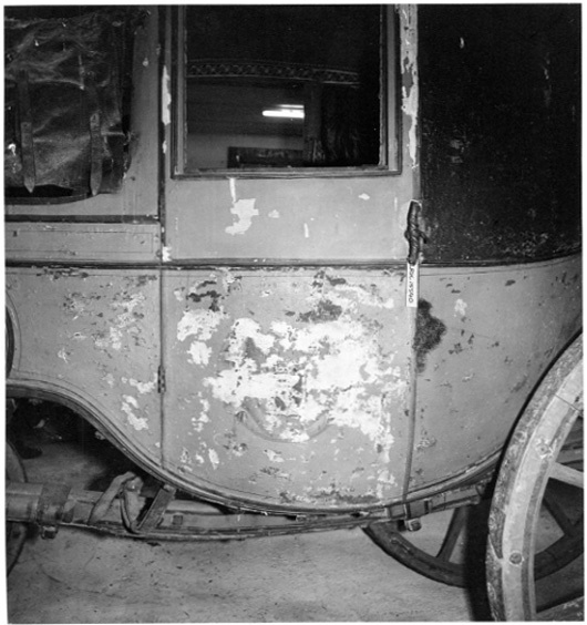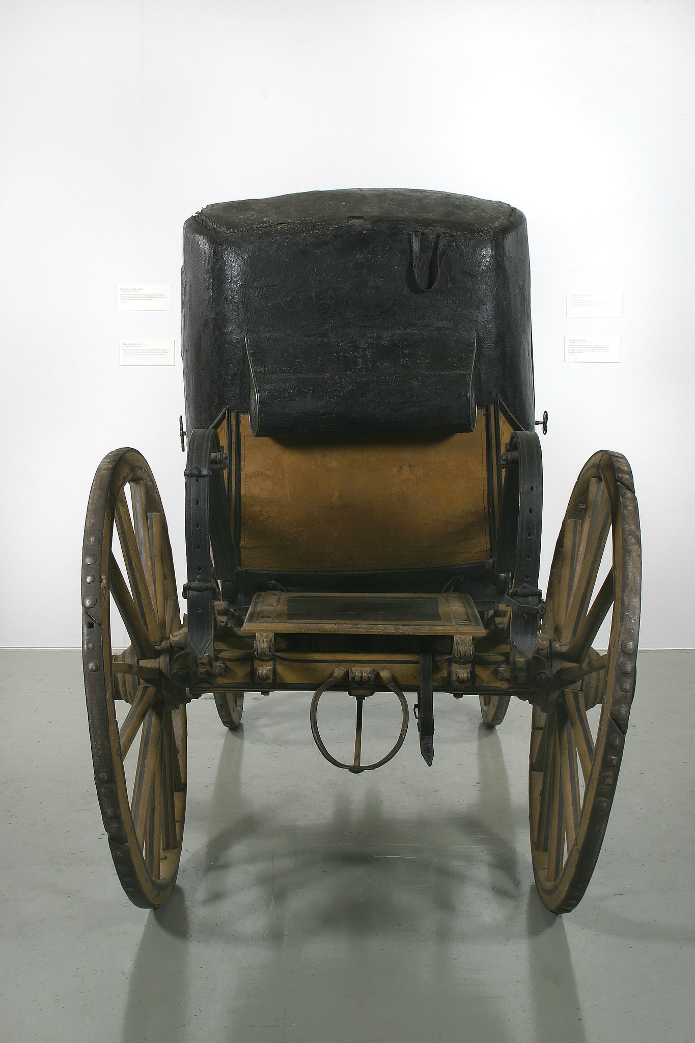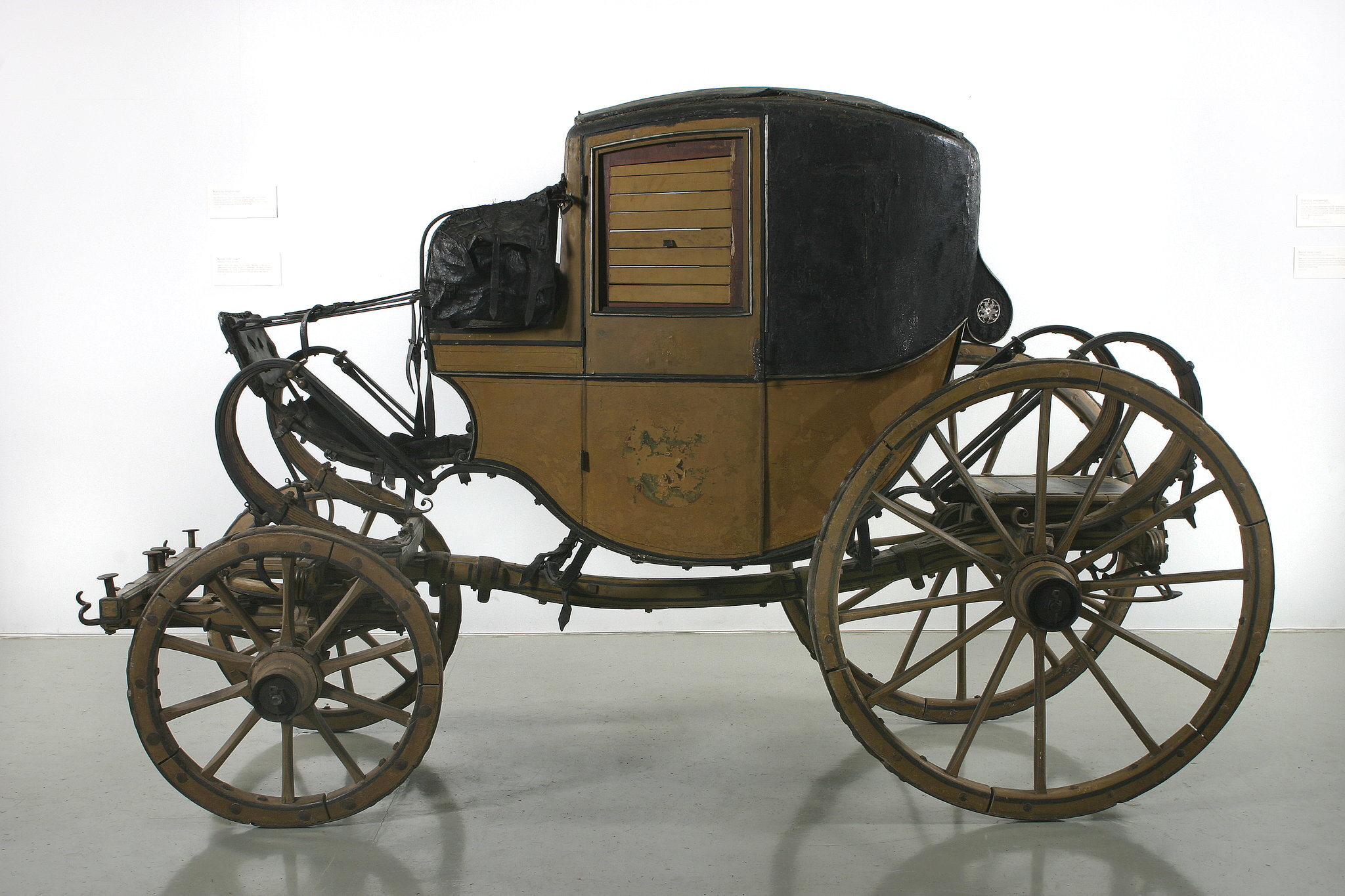 Resevagn, postvagn med tvåsitsig korg, kupé, med välvt läderklätt tak och rundad fotbotten. Kuskbock sammanbyggd med korgen och utgörande förvaringsutrymme, åtkomligt inifrån. Tak och övre väggdel svarta, nedre delen gul med svarta linjer. På dörrarna Brahevapnets svarta vingar, mot grön hermelinsmantel. Två dörrfönster satta i svartklädda ramar med mässingsbeslag i hörnen och dessutom jalusier av trä. Gallret försett med fönster framtill. Pungformigt förvaringsfack i bakväggen med rosettformade mässingsbeslag på ändarna. Lakejhandtag vid takkanten. Invändigt ljusgrått kläde med garnering av galoner i rött, vitt, blått. Två sitsdynor. På väggarnas övre del är fästade gröna, löst stoppade dynor. Vid dörrarna uppfällbara fotsteg i två steg. Korgen hänger i fyra remmar lagda över fyra C-fjädrar, s.k. fjädring à la Polignac, på underredet som är gult och har en mittbom utan svanhals. Bakvagn med bagage- eller lakejbräda, framvagn med vändkrans, springvåg och anordning för anspann med två eller tre hästar i bredd. Kuskbock med smalt, stoppat ryggstöd, sidstöd med läderväskor, fotbräda samt stänkskydd av läder.