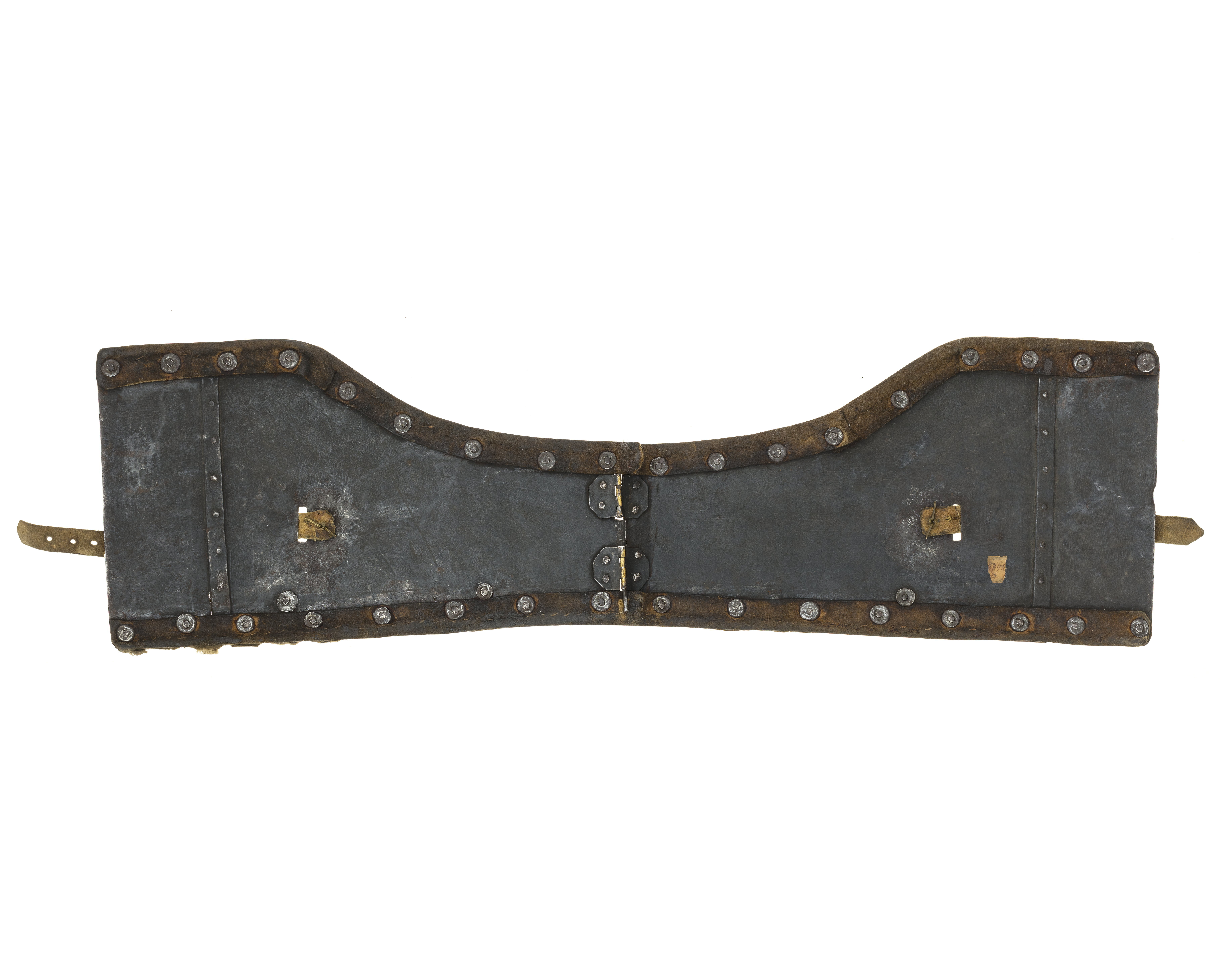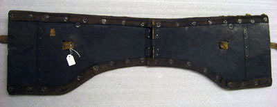 bringbetäckning med en drifven rund uphöjning på hvardera sidan samt 4 söljor af förgyldt jern,
