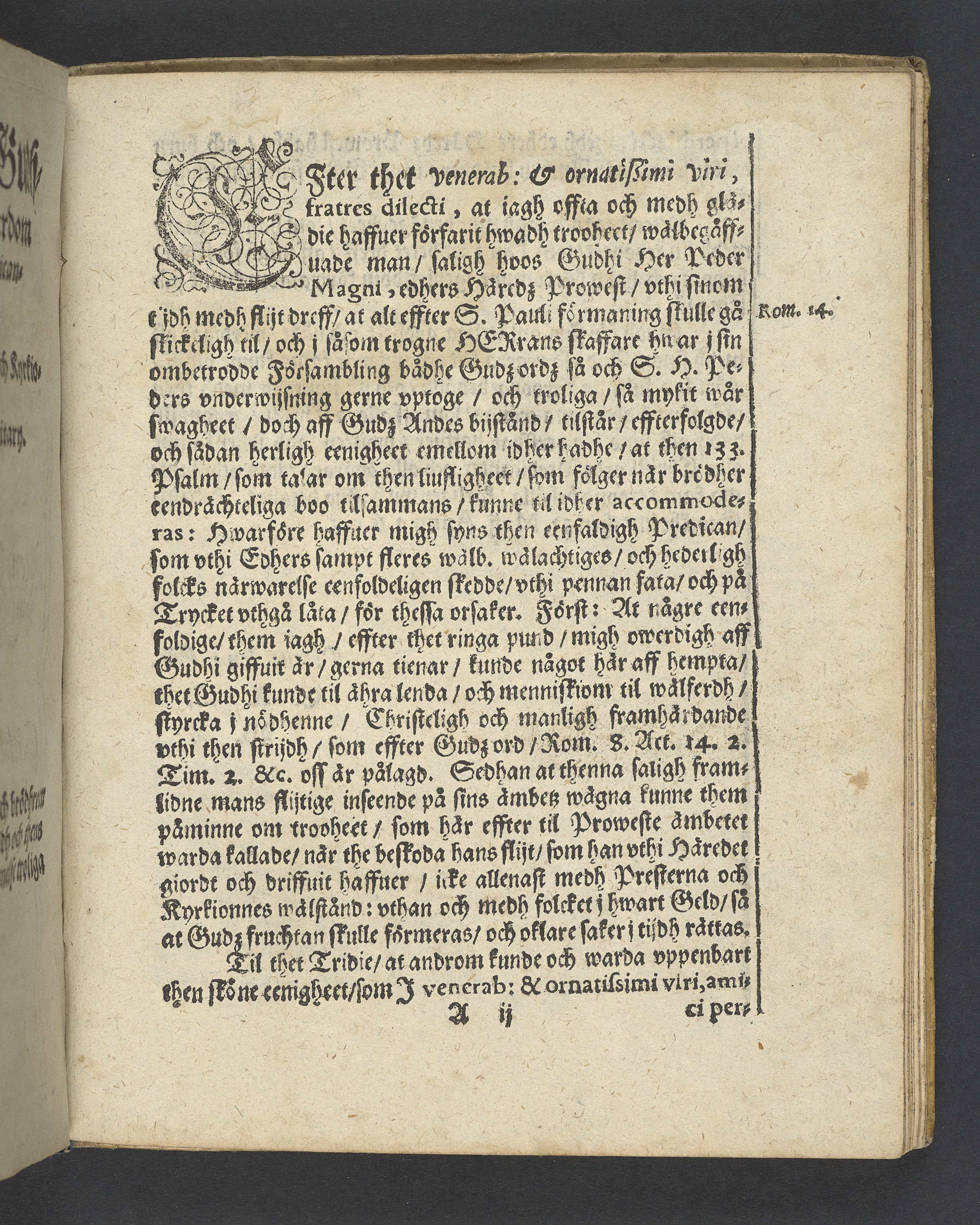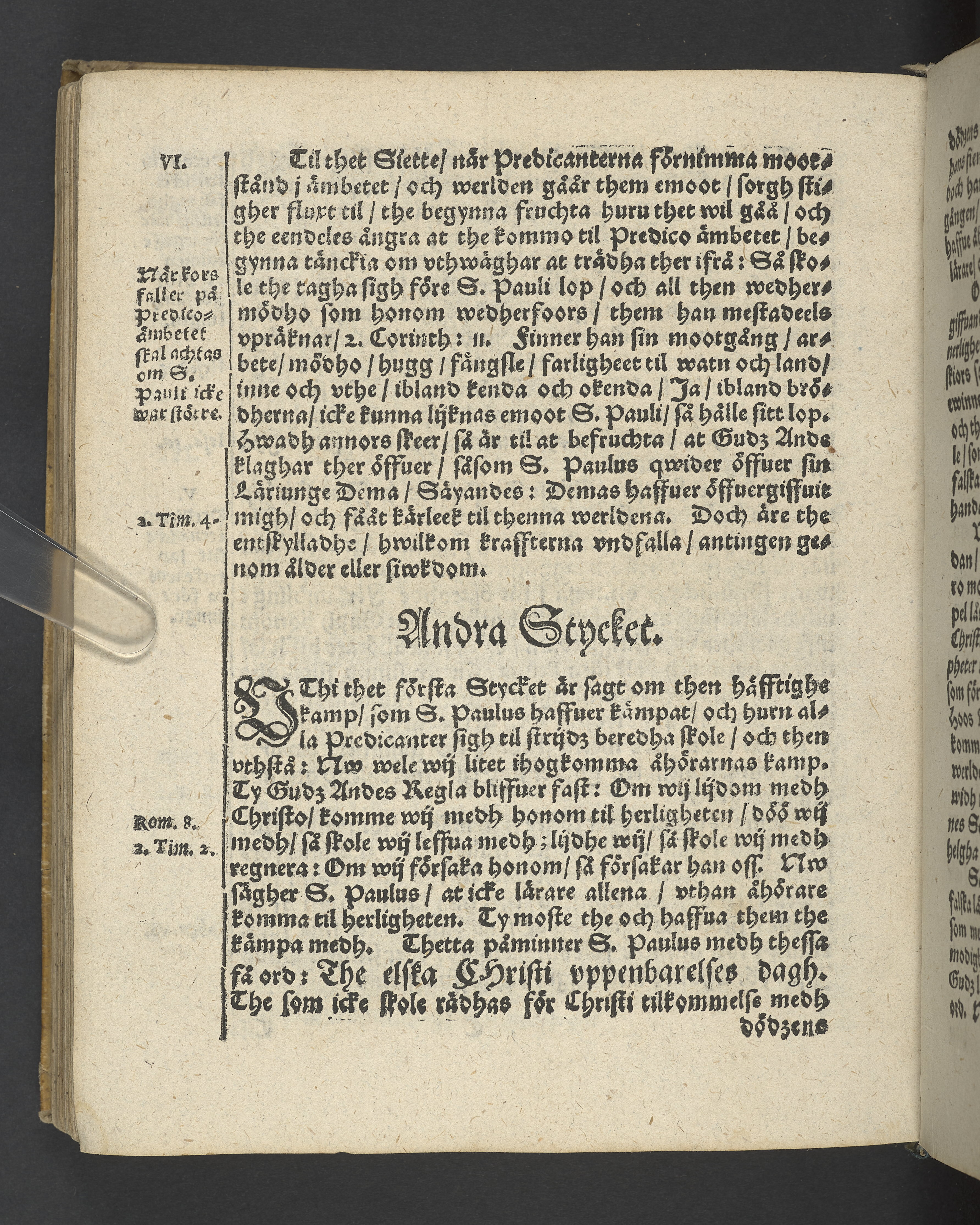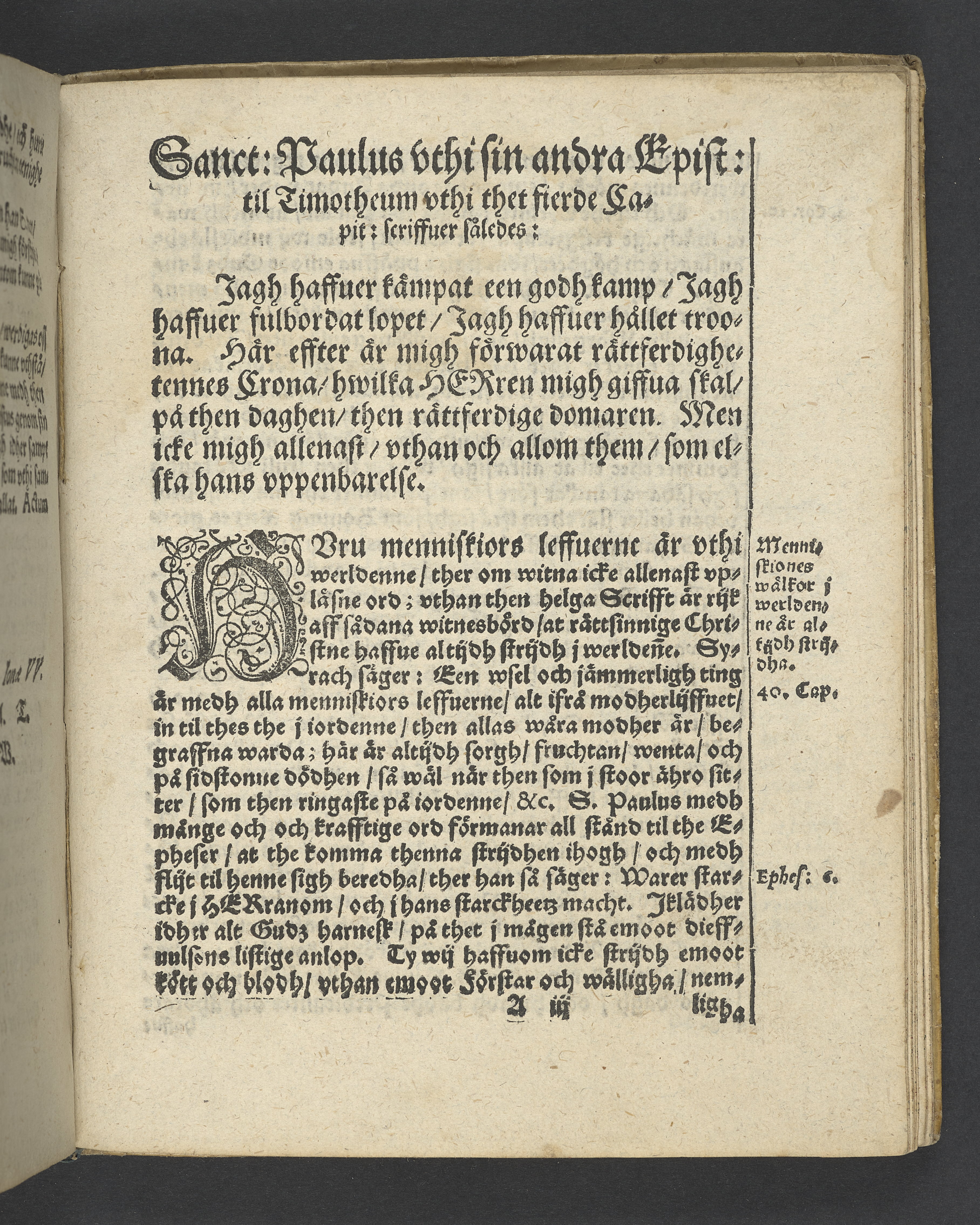Een christeligh predican öffuer S. Pauli tröstrijke ord, hwilka han kort för sin dödh screff sinom läriunge timotheo til, vthi hwilken först lärare sedhan åhörare haffua merckeligh tilflle giffua acht vppå vthi hwadh strijdh the stadde äro, huru the henne kunne gå igenom, hwadh löön the haffua förmodha som wäl kämpa. Item hwadh theras rätte ämbetet är, som j härederne på landzbygden äre kallade medh häredes presterne haffue vthi episcopi fråwarelse inseende, och kallas prowestar. Hållin öffuer gudfruchtigh. wällärd och wälbegåffuade S: Her Peders Magni, prowest j Sönderboo och kyrkioheerdes j Ingelstadh lijk, aff Petro Ionae Ang: VV. Prentat i Stockholm, aff Andrea Gutterwitz. Anno MDCV.