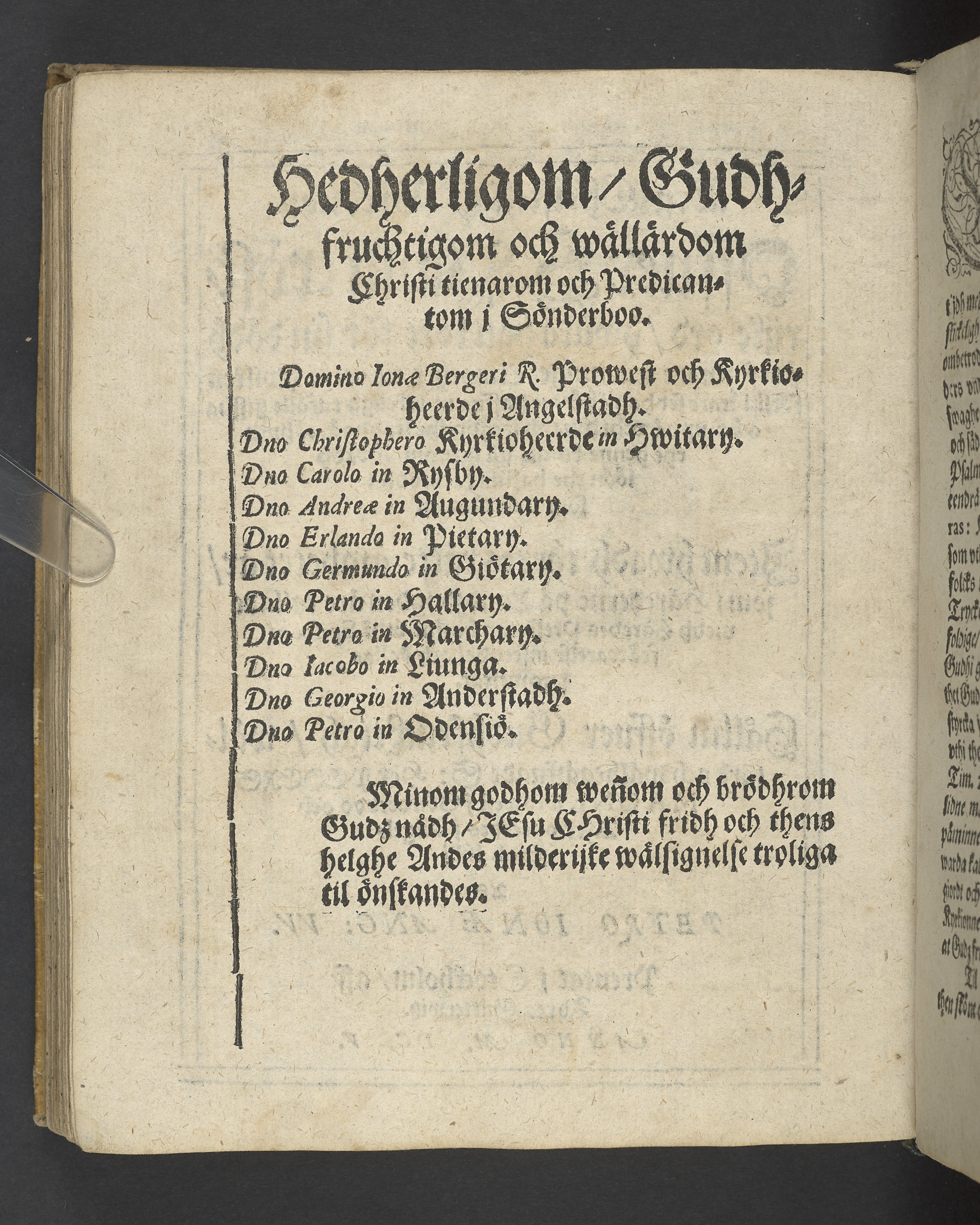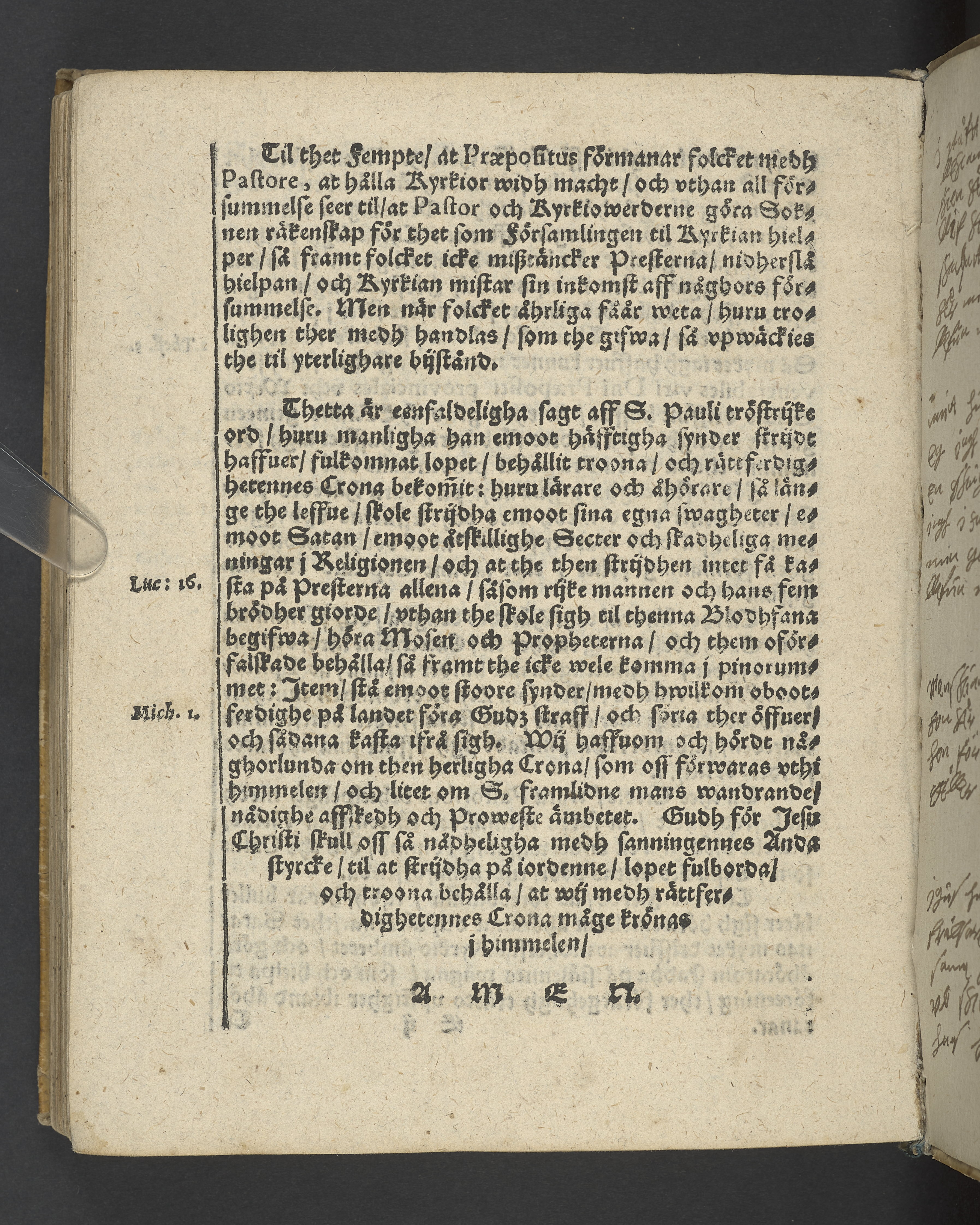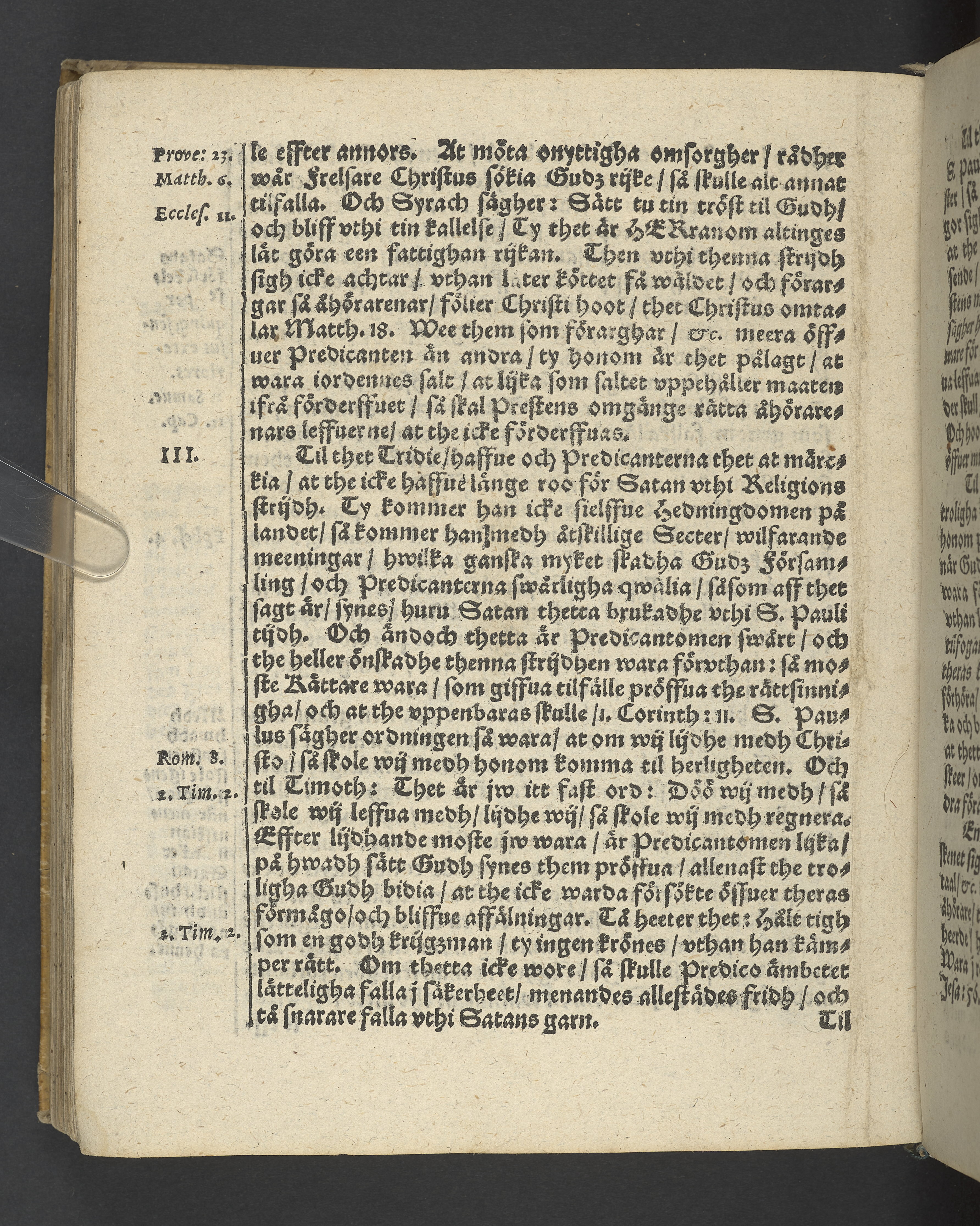 Een christeligh predican öffuer S. Pauli tröstrijke ord, hwilka han kort för sin dödh screff sinom läriunge timotheo til, vthi hwilken först lärare sedhan åhörare haffua merckeligh tilflle giffua acht vppå vthi hwadh strijdh the stadde äro, huru the henne kunne gå igenom, hwadh löön the haffua förmodha som wäl kämpa. Item hwadh theras rätte ämbetet är, som j härederne på landzbygden äre kallade medh häredes presterne haffue vthi episcopi fråwarelse inseende, och kallas prowestar. Hållin öffuer gudfruchtigh. wällärd och wälbegåffuade S: Her Peders Magni, prowest j Sönderboo och kyrkioheerdes j Ingelstadh lijk, aff Petro Ionae Ang: VV. Prentat i Stockholm, aff Andrea Gutterwitz. Anno MDCV.