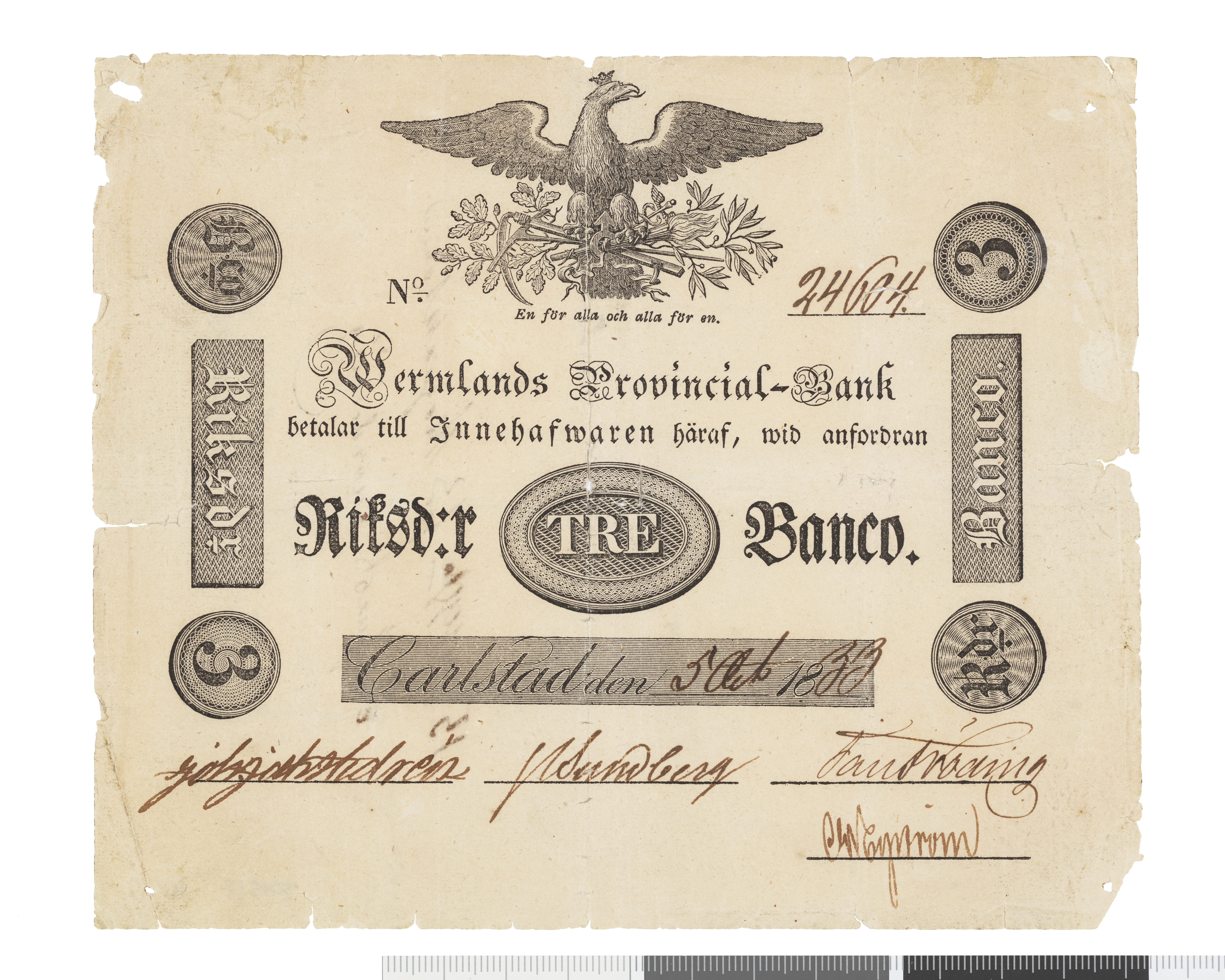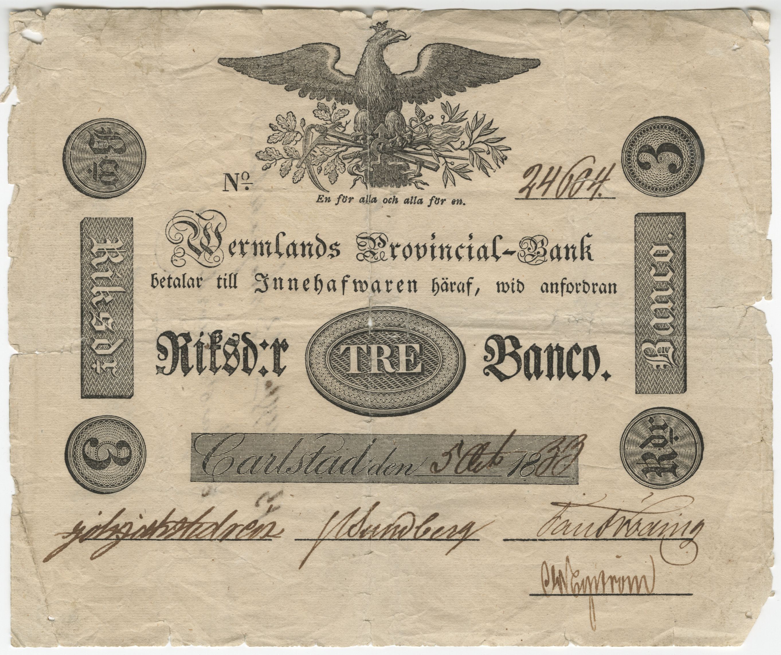 Wermlands Provincial-Bank - Tre riksdaler banco