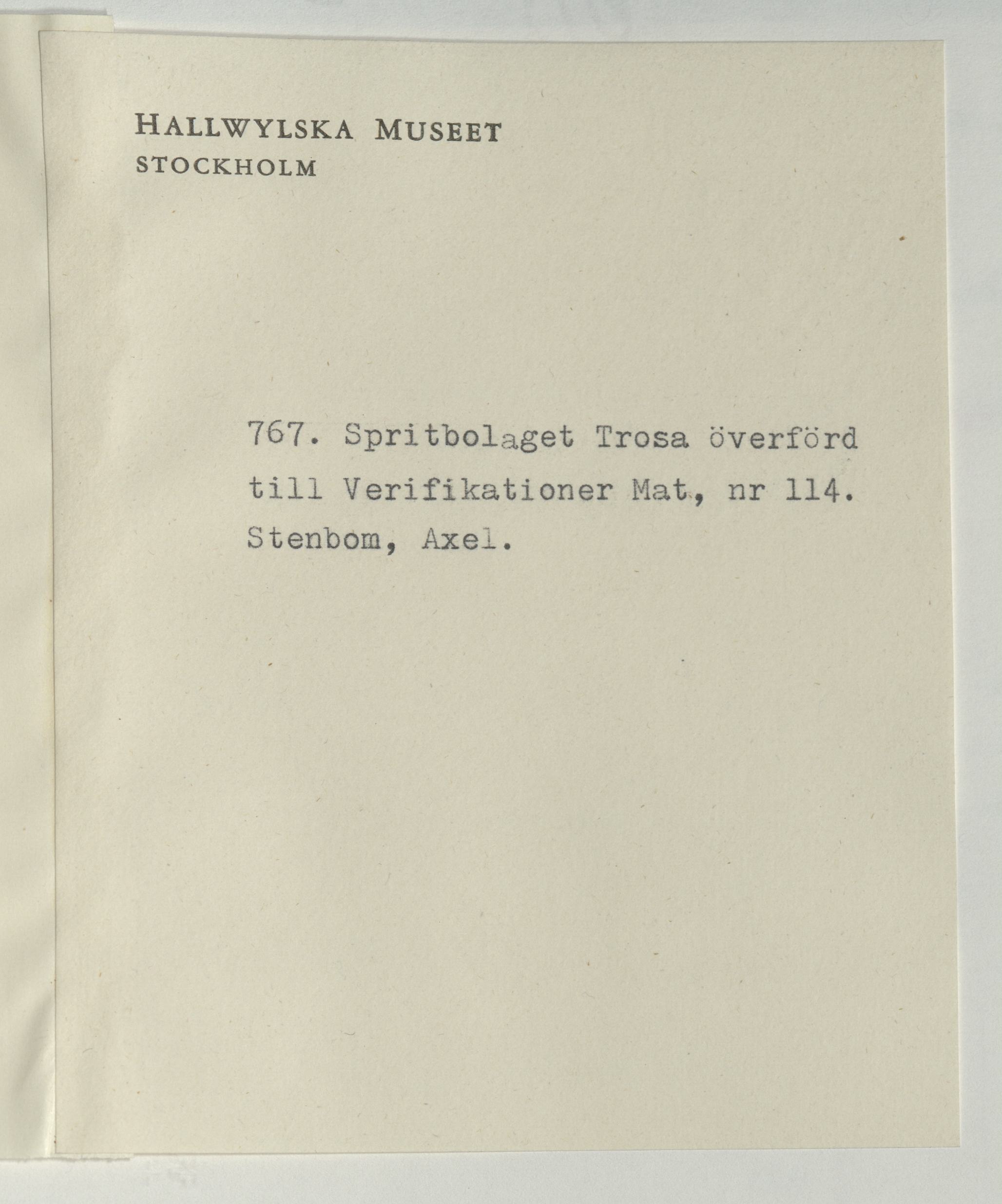 Spritbolaget Trosa nr: 767 är överförd till Verif. Mat nr: 114