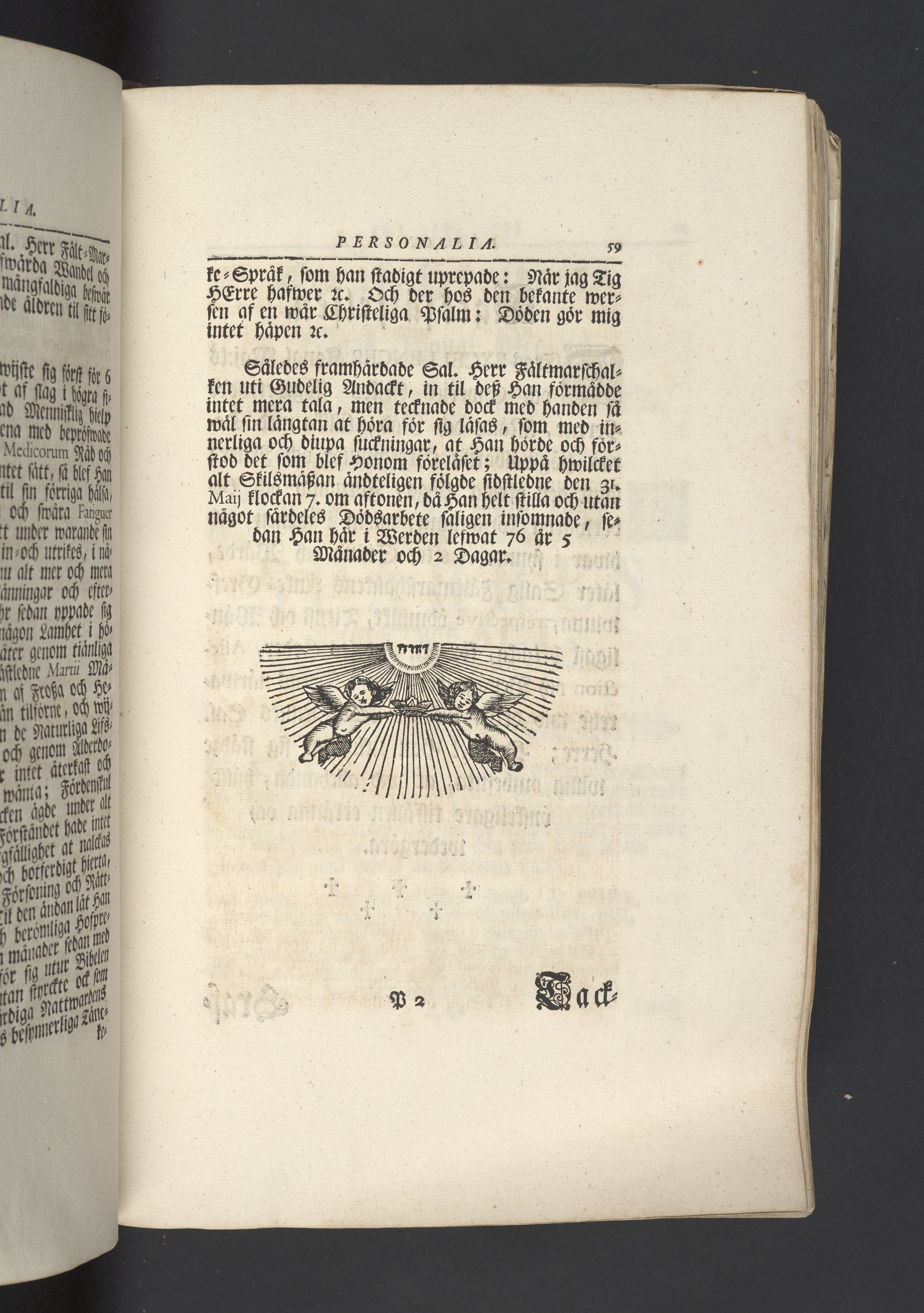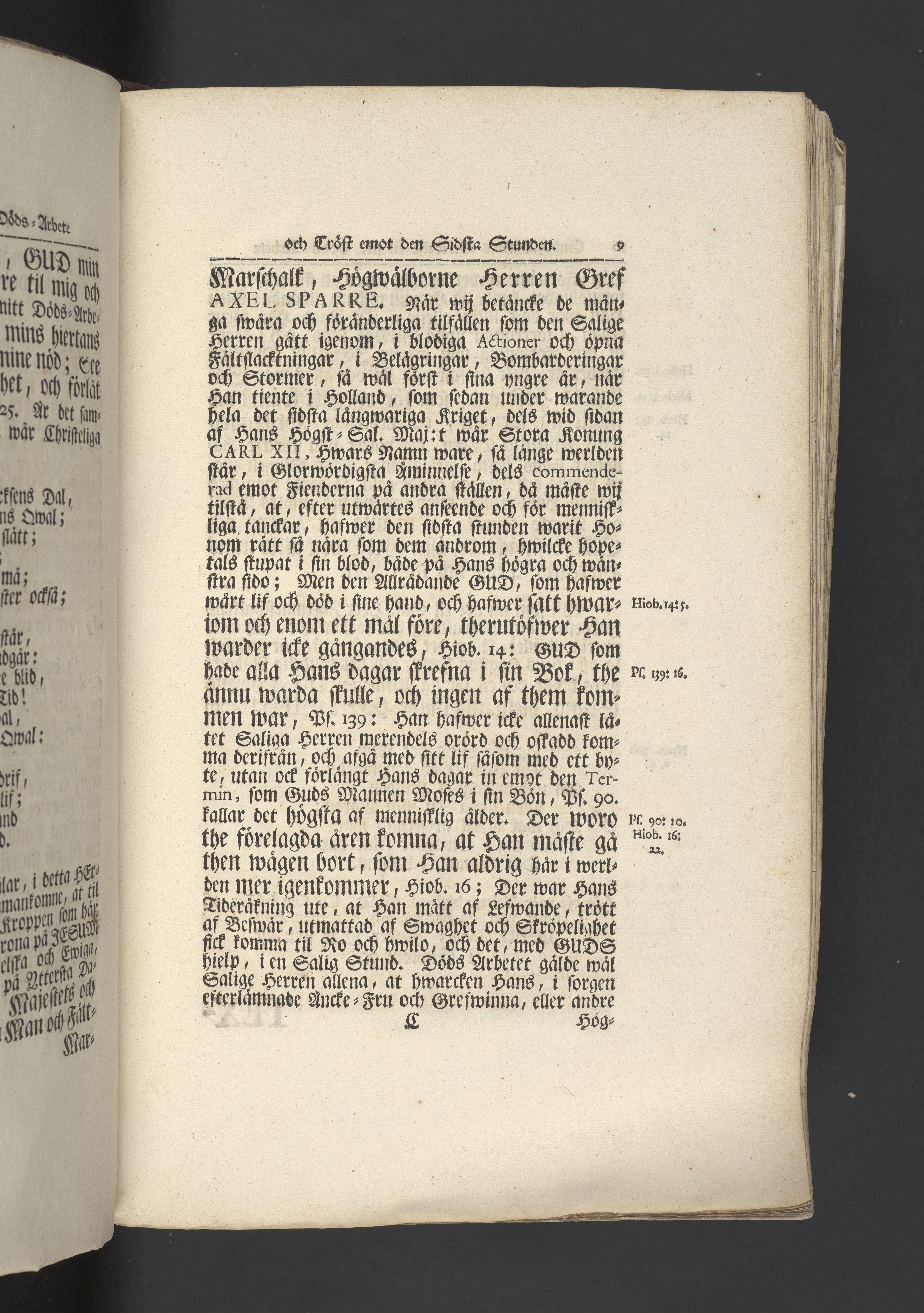 Guds barnas beredelse til sitt döds-arbete och hwad tröst de fatta uthaf Guds nåd emot den sidsta stunden; förestält uti en christelig lik-predikan, då hans kongl. majestets och Sweriges rikes högtbetrodde man och fält-marschalk ... nu salige, gref Axel Sparre, närwarande en hög, förnäm och anseenlig församling, begrofs i Stockholm och Ridderholms kyrkan år 1728 den 5 novemb. af Jöran A. Nordberg ... Stockholm, tryckt hos Biörkmans encka.