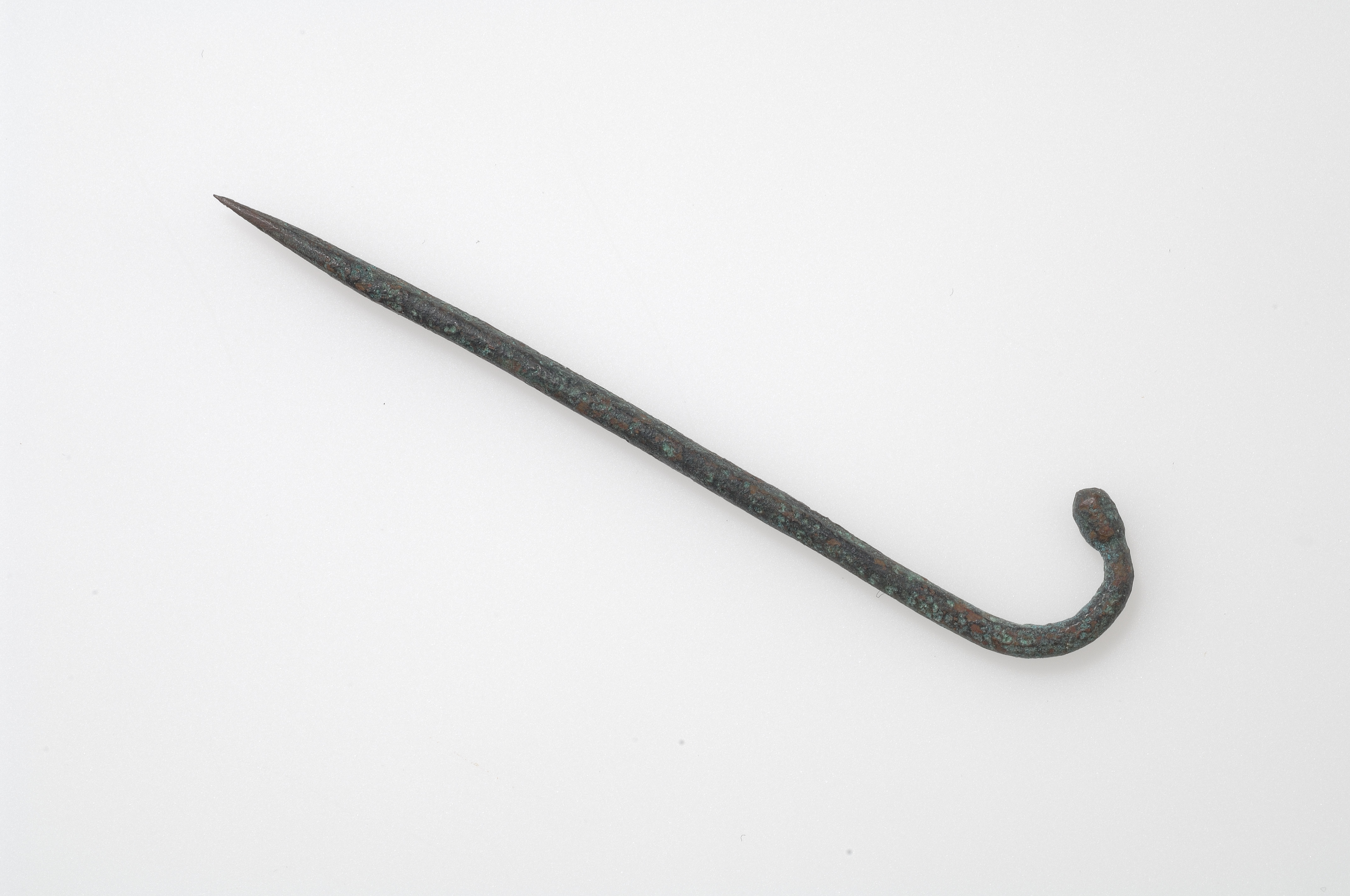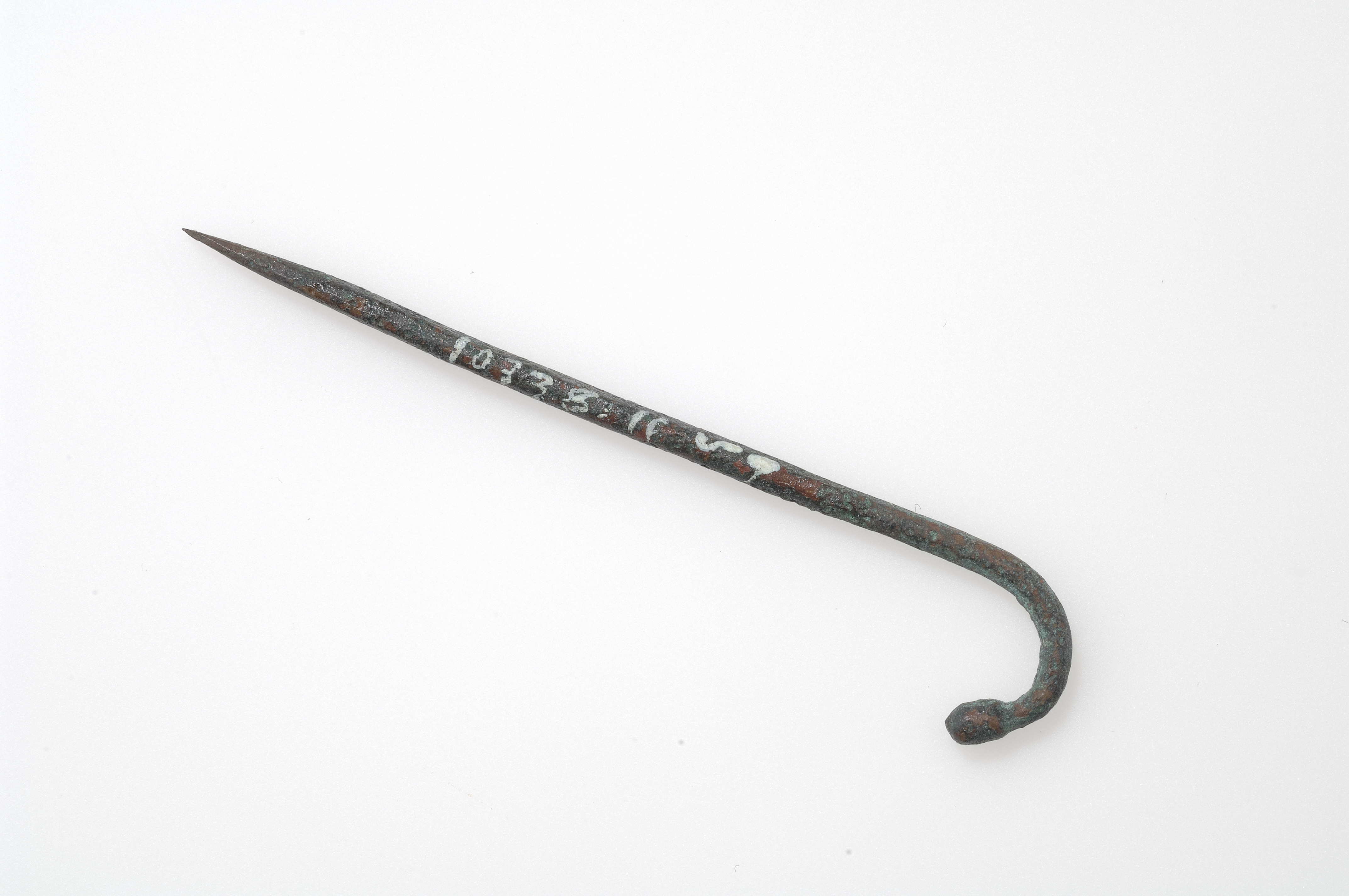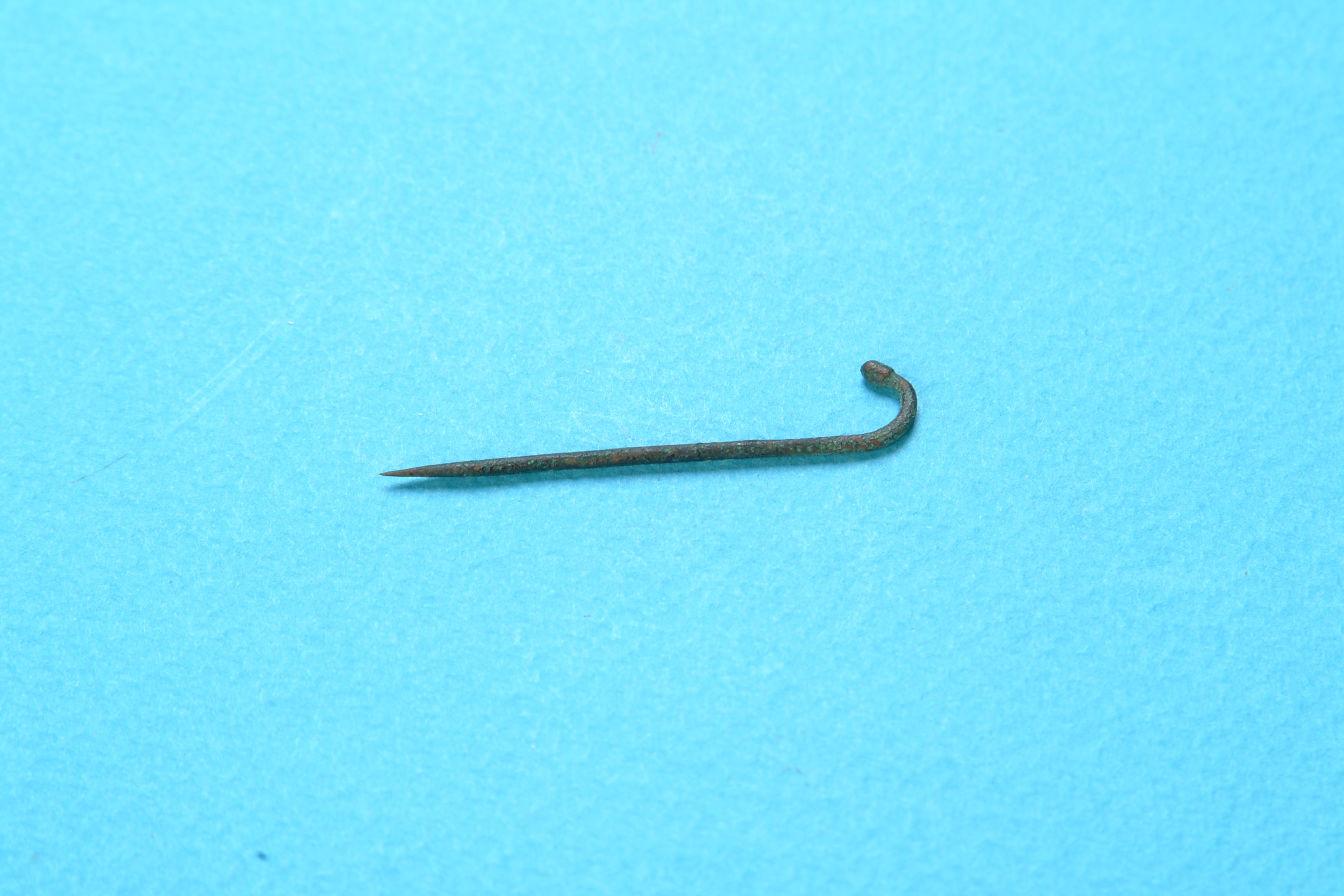 Miniatyr föreställande en nål som är böjd upptill med en rund knopp som huvud.
