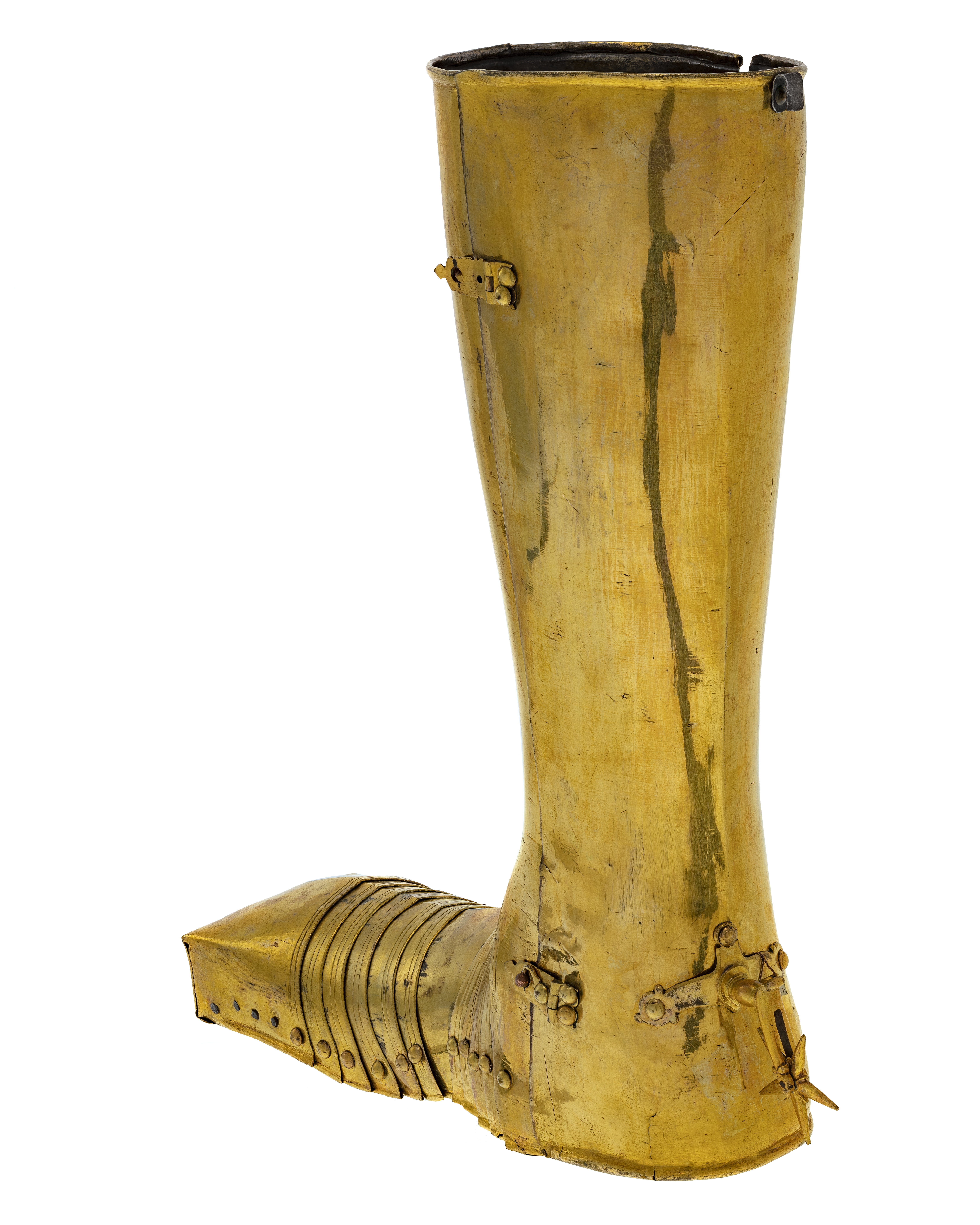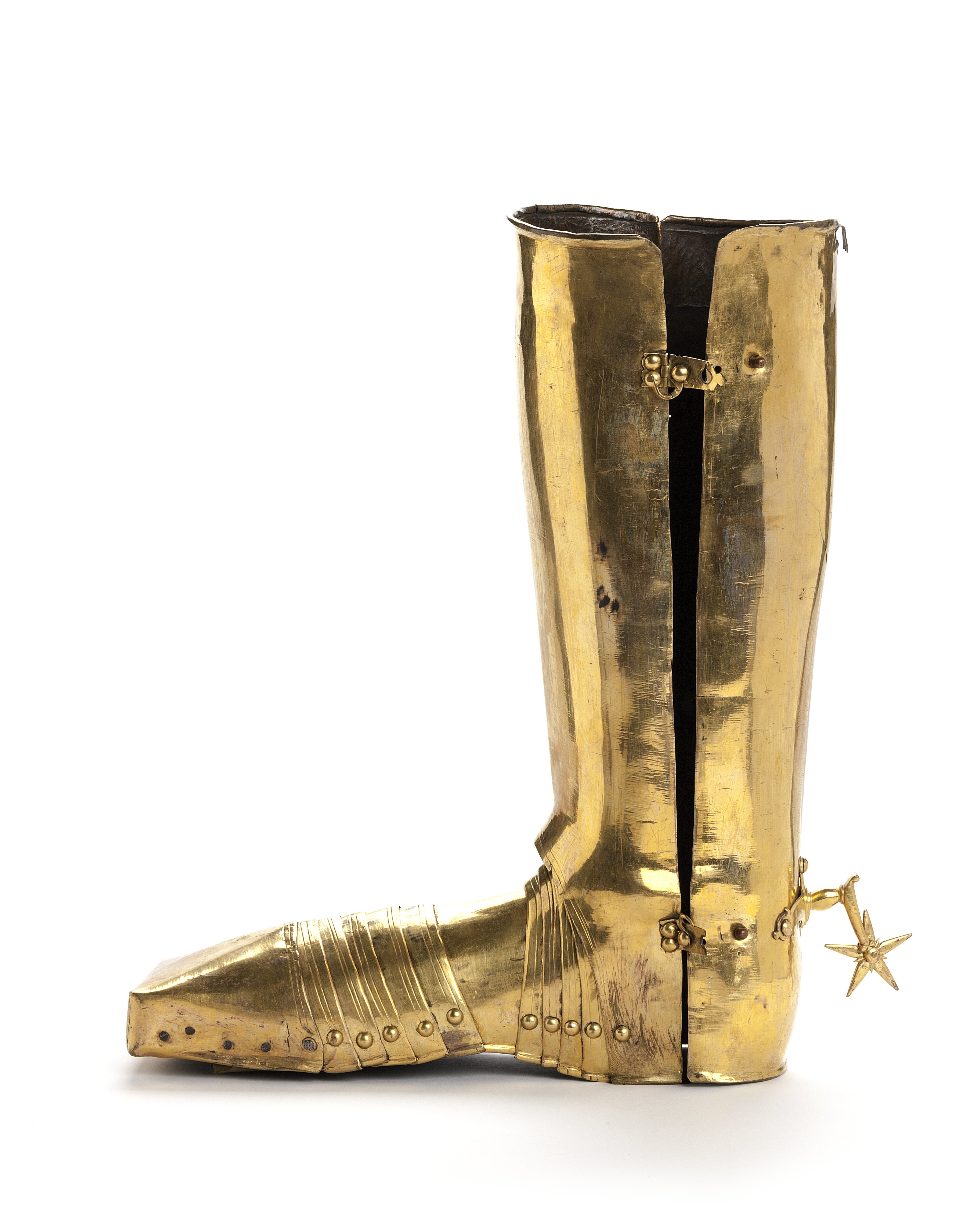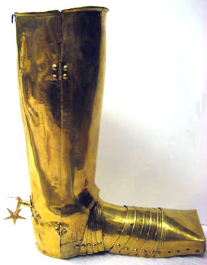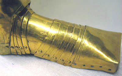 Riksrådet Johan Gyllenstjernas rustning af förgylld messing med knappformiga nithufvuden består af: