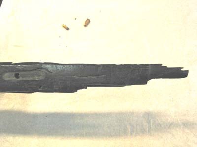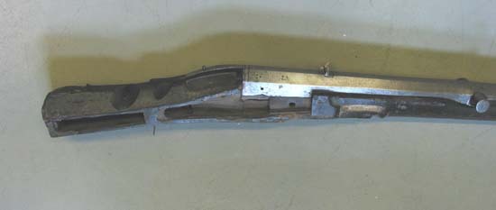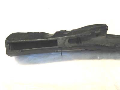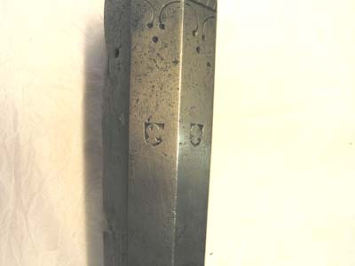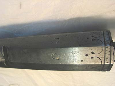Rund, slätborrad pipa med åttsidig kammare, mynningen svagt fasad, fasad övergång rund kantig del. Böjt, baktill tvärt avskuret svansskruvblad. Punsad dekor vid pipbasen, dubbla linjer på de tre övre faserna, sneda tvärstreck däremellan, framför linjerna bågar och tre punkter framför varje bågmöte, bågar även vid kammarens framände. På överfasen och h fas sköldformiga stämplar med huvuden (?, Stöckelnr, LRK 1921:144:1). Framför siktet Nürnbergs stadsvapen och N (Stöckelnr , alla stämplar sedda från mynningen). 500 mm från pipbasen lavettaxlar, b: 115 mm, d: 30 mm. Riktmedel: Från sidan inlaxat ståndsikte med bred, låg skärm, punsad dekor på plattan, skärmen svagt skålad på framsidan, ett hörn knäckt. Långt, lågt korn av mässing. Fästning: Fyra häften. Pipan fäst med krysskruv underifrån samt fyra ej ursprungliga pipstift av trä. Låset saknas. Rak, smal avtryckare med kulformig ände, Z-formigt dragen i vinkel framåt och upp till fästet i kolven, främre lodräta delen går ut igenom hål i avtryckarblecket, och påverkas av justerskruv fäst framifrån i blecket. Rektangulärt avtryckarbleck av stål med dubbla tvärstreck framför bakre och bakom främre avtryckarhålet. Två fästskruvar, den främre igenom rundat utskott intill främre avtryckarhålet. Helstock av mörkt brunbetsat trä. Kort, kantig kolv med kolvlåda, närmast sexsidigt tvärsnitt. Två mot h skurna tumlägen i kolvryggen. Mjukt svängd kolvnacke. Rundad framstock med plan undersida och fasade kanter till pipnoten. Beslag och inläggningar av graverat ben, de flesta saknas. Kolvlådelocket saknas liksom de två låsskruvbrickorna och två plattor vid svansskruvbladet. På framstocken långa pipstiftbrickor med rundade ändar, på h sida finns bricka 1 och 3 (bakifrån) kvar, den bakre med S-formigt svängd volut, den främre med flätverk, på v sida återstår bara nr 3 med samma dekor som på h sida. Framänden kraftigt skadad.
