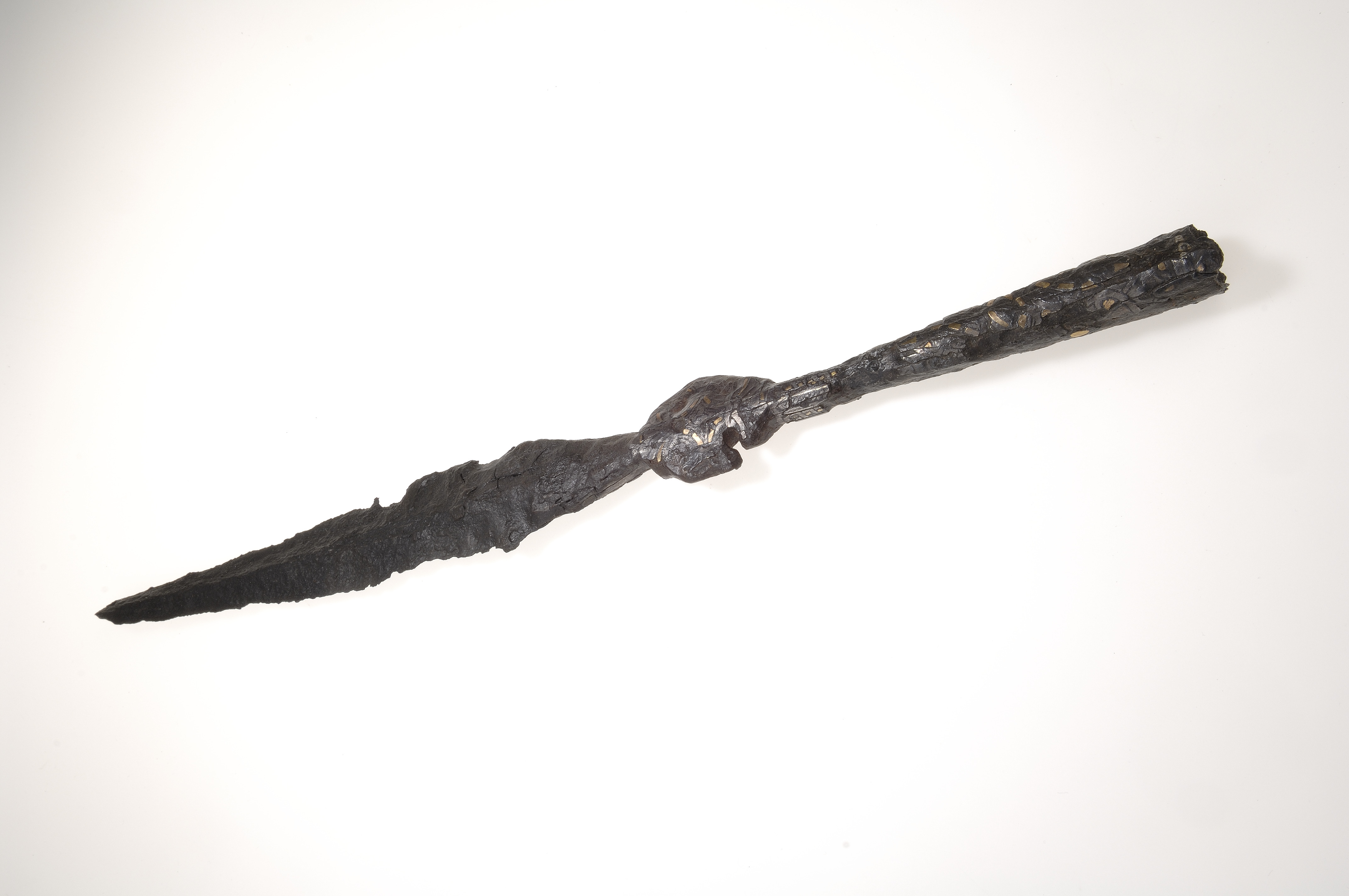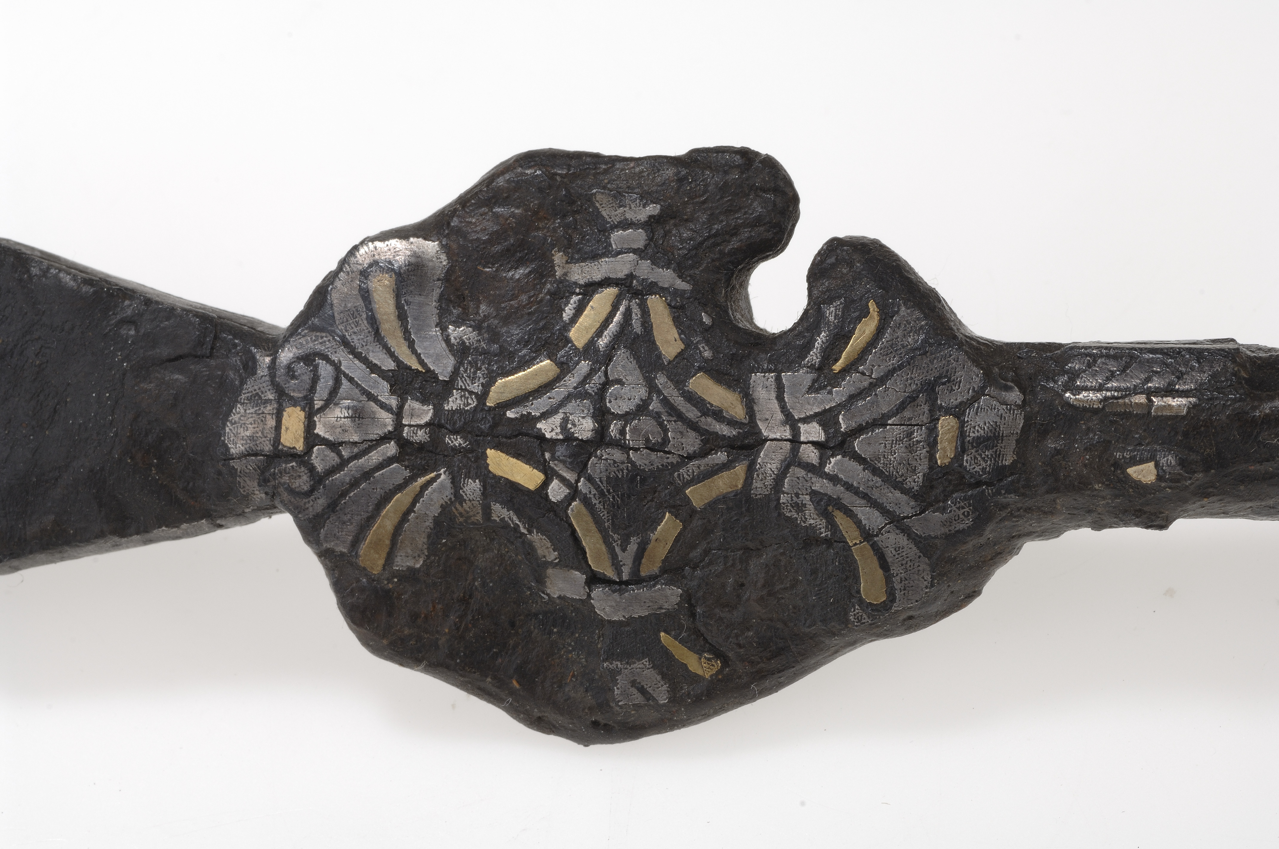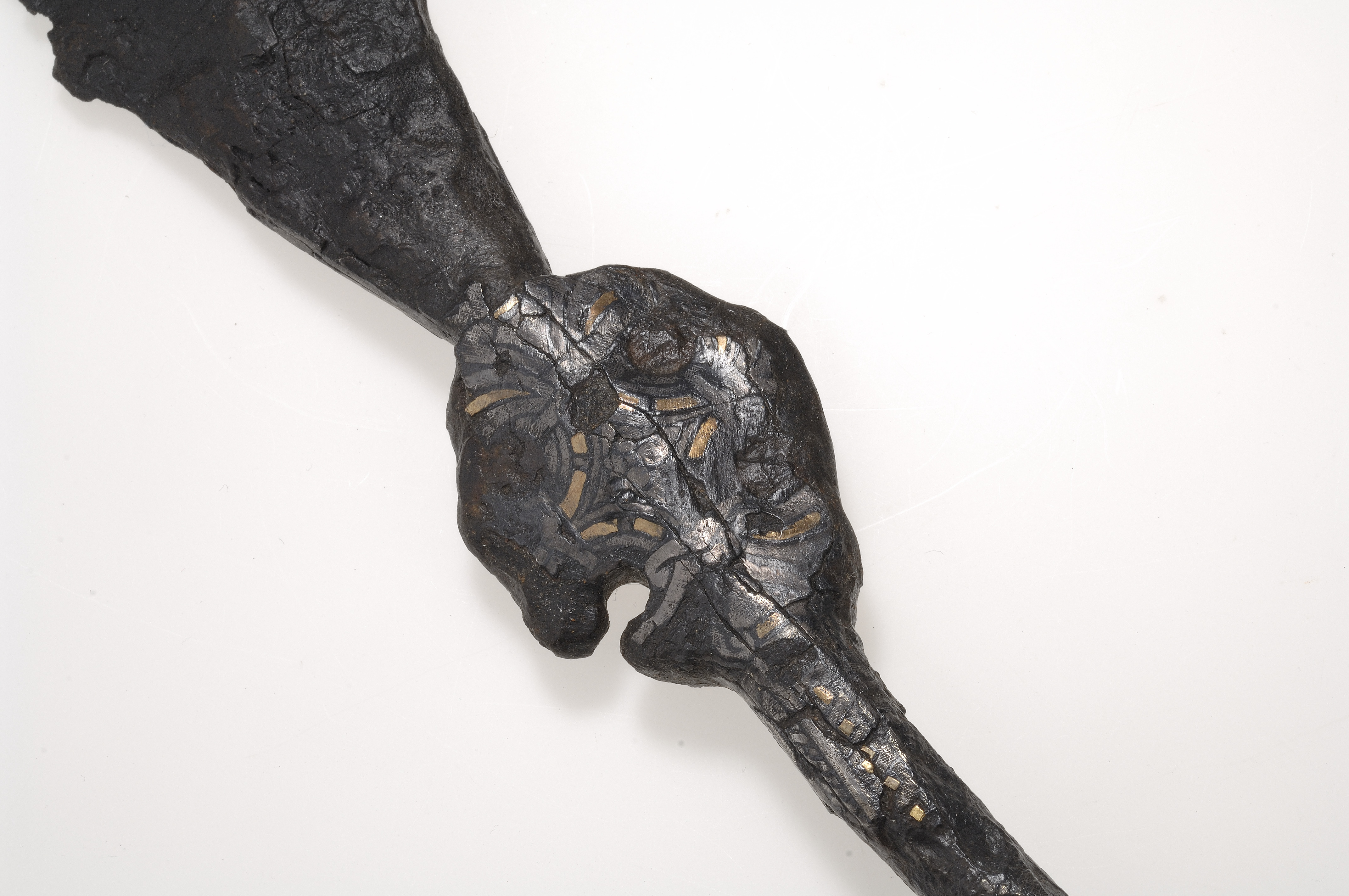 Stor korsprydd spjut- eller lansspets. Korset placerat vid övergången till holken.