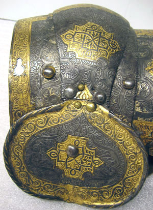 2 Complette Armstycken af drifvit incrusterat Jern med Guld och Silfver