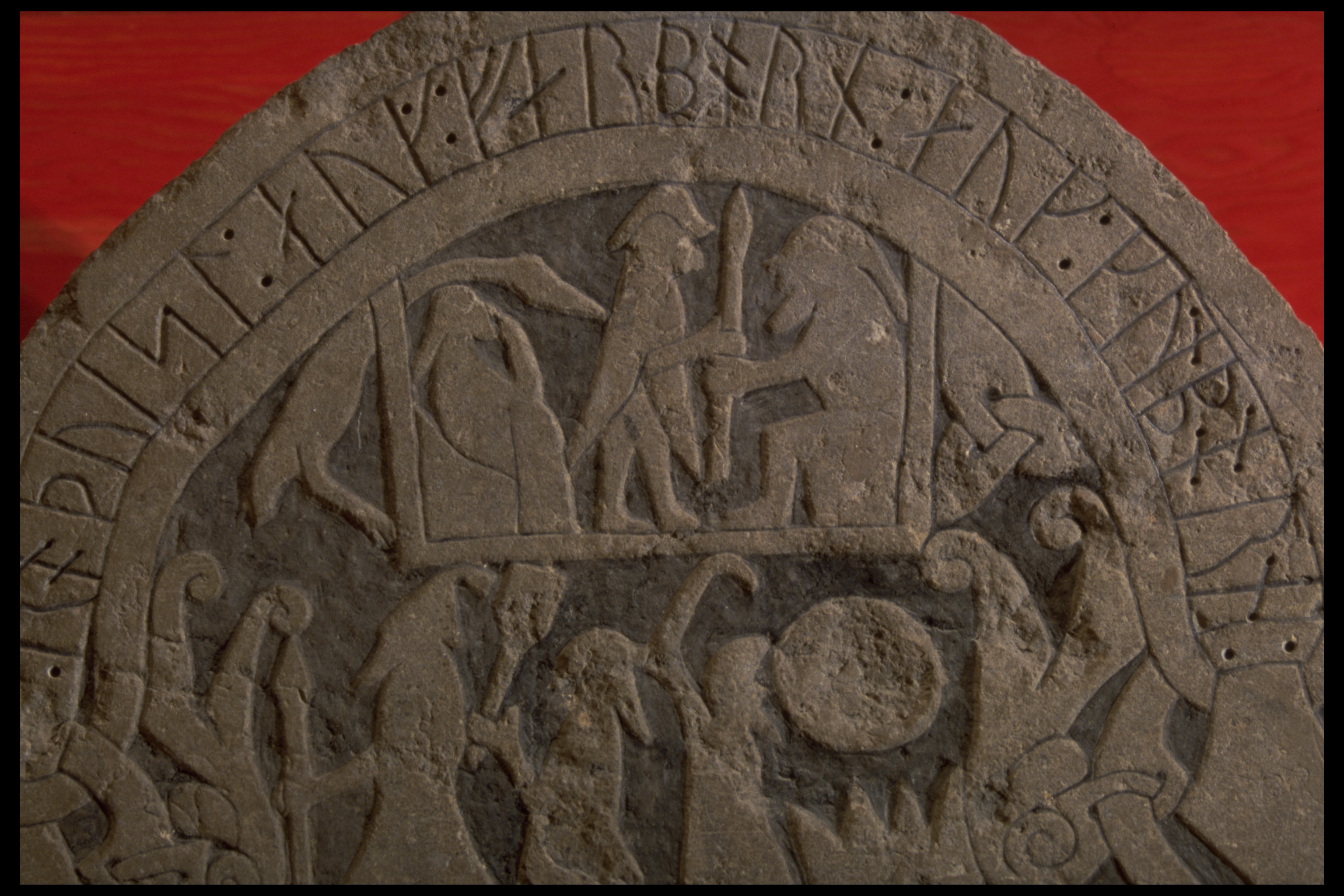 Runor: : roþuisl : aug : farborn : auk : kunborn : (Rodvisl och Farbjörn och Gunnbjörn.)