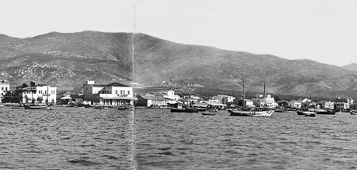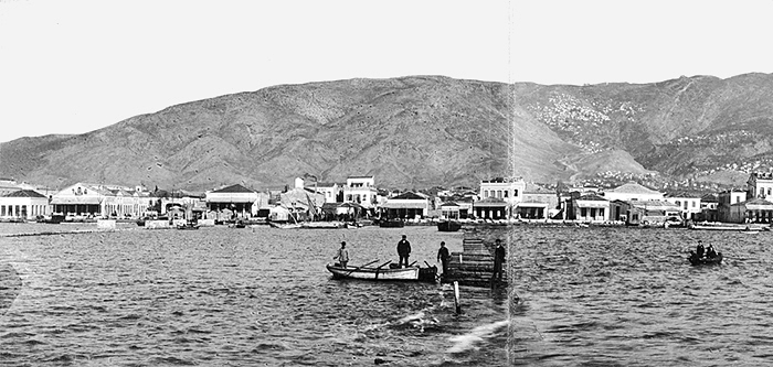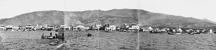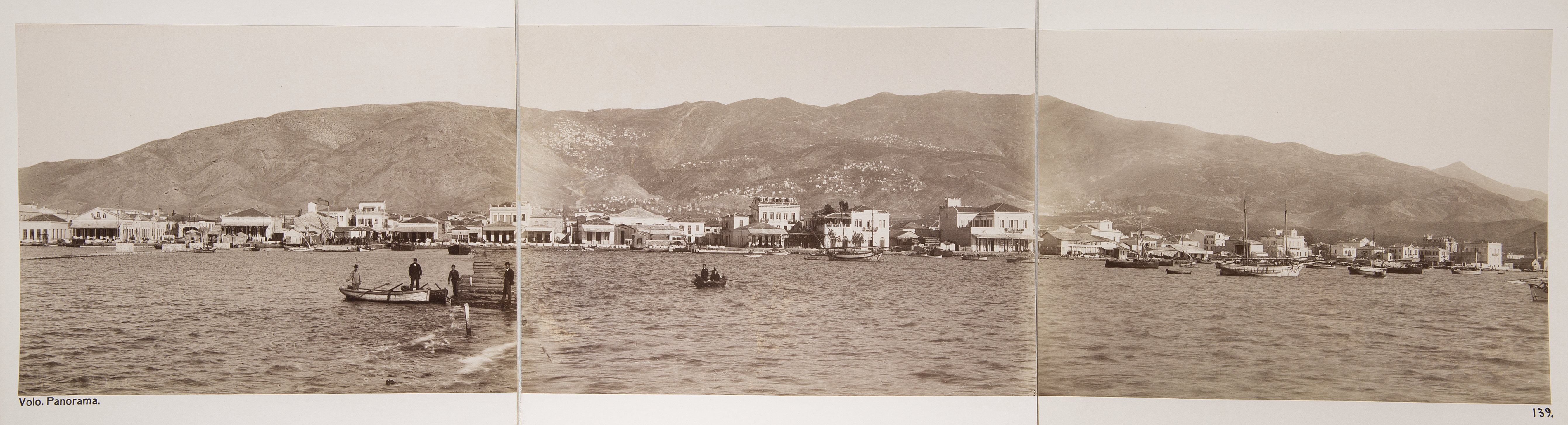 Panorama över Volos, Grekland. Text på originalet: Volo. Panorama (I,II) Foto från resa genom Grekland, Makedonien och Serbien, 15 mars-6 juni 1896. Fotografierna LXVI:K.18.-147. är köpta av Wilhelmina von Hallwyl, f. Kempe på Korfu samt i Patras, Nafplion, Aten, Thessaloniki och Belgrad. Med på resan var maken Walther von Hallwyl och fröken Ida Uhse. Uppgifterna kommer från Ida Uhses reseanteckningar.