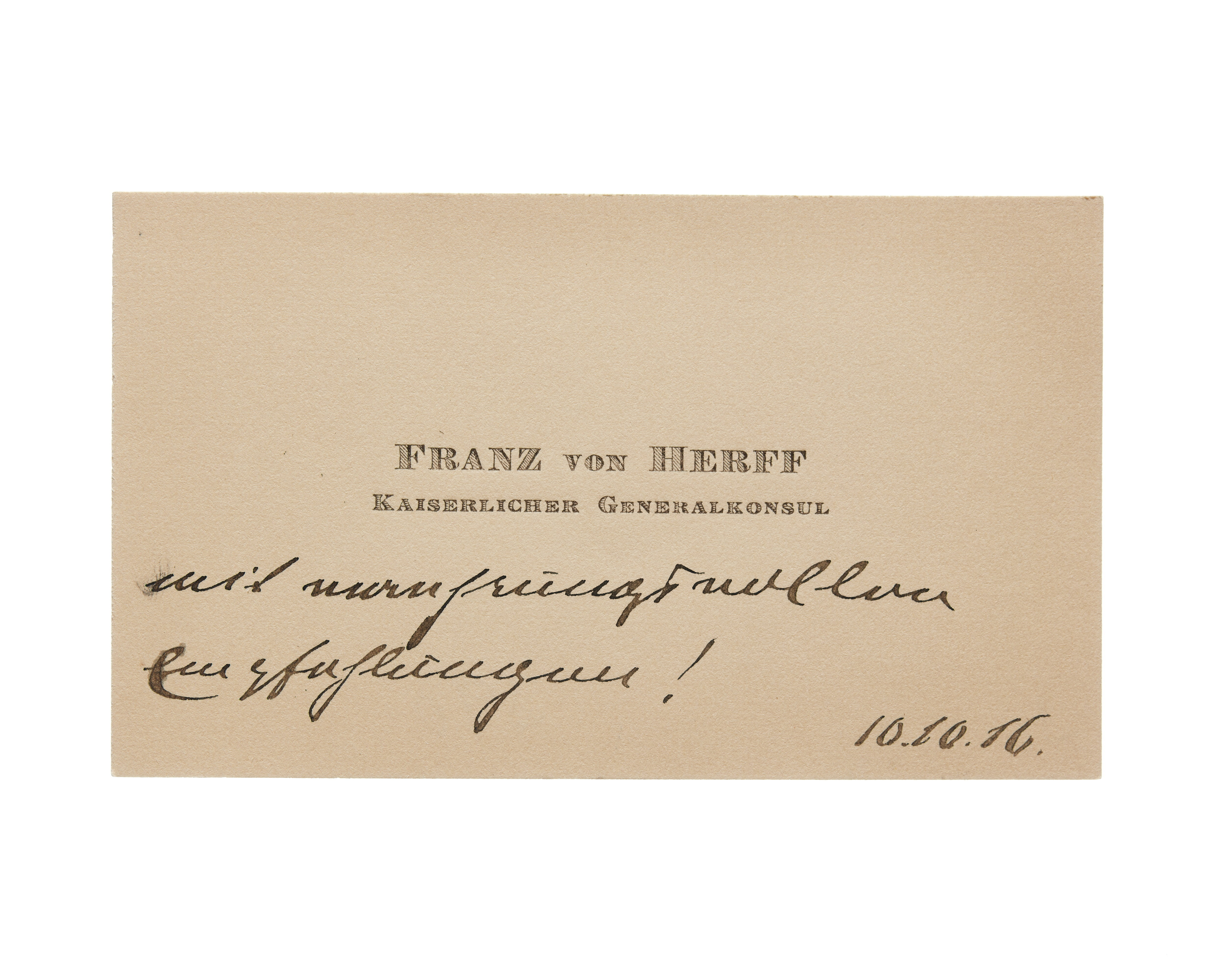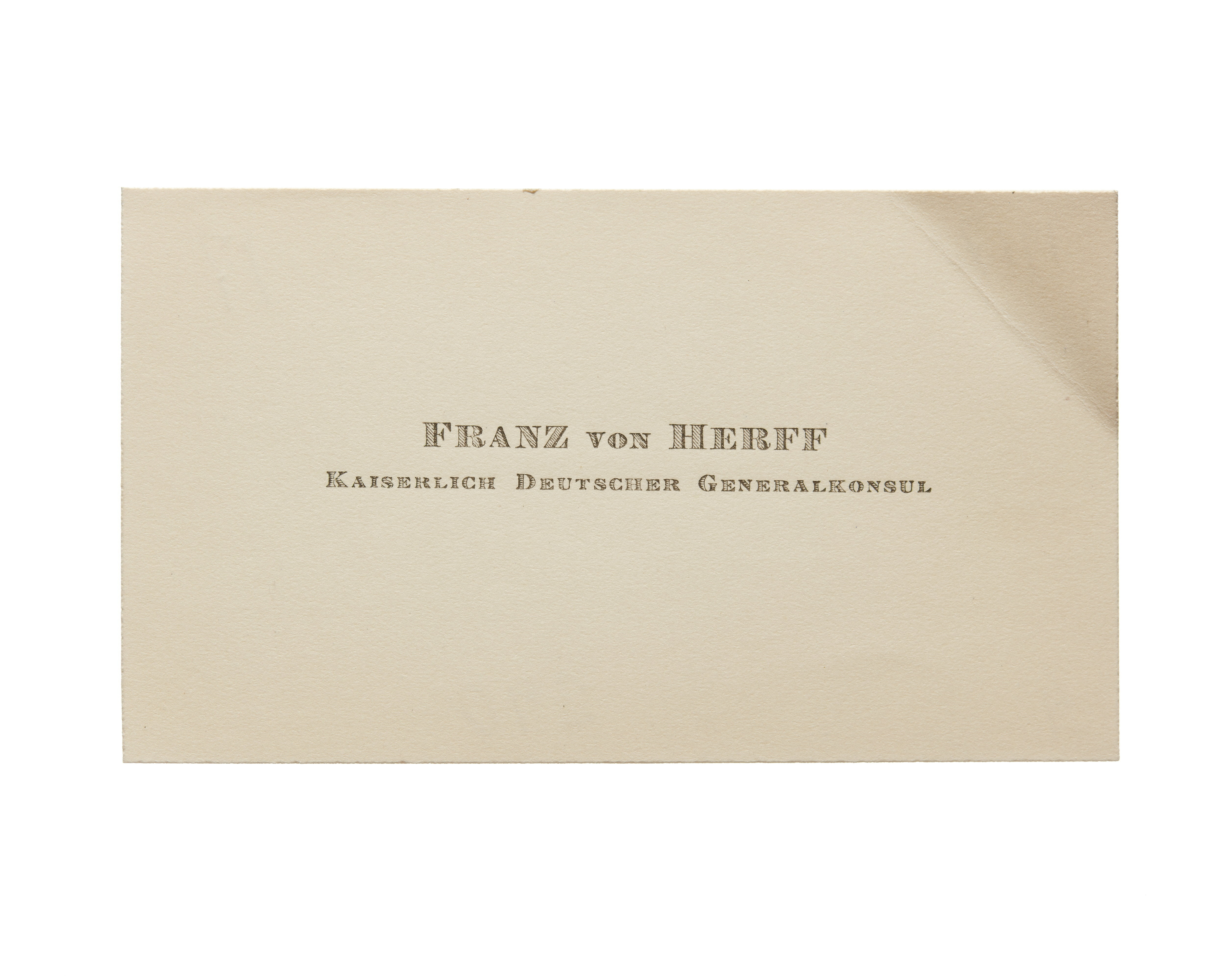 Visitkort från Franz von Herff, Kaiserlicher Generalkonsul.