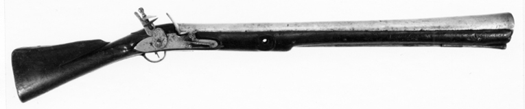 Rund, slätborrad pipa vidgad mot mynningen. På ovansidan till v. stämplat 2 ggr Birminghams kontroll eller Tower Private Proof (Stöckelnr 1314-1319, 8647) samt däremellan en otydlig stämpel med ett H. Rektangulärt, bakåt breddat, något böjt svansskruvblad. Fästning: Tre häften, det bakre för pivå. Pipan fäst med krysskruv samt två pipstift av stål. Flintlås med plant låsbleck, något fasade kanter. S-formig, platt hane med fasade kanter, ringformig hals. Ovala käkar, överkäken lös, käkskruv med ringformigt huvud och skruvskåra. V-formig fängpanna med liten fals, låg krutskärm. Batteri med välvt fängpannelock, eldstål med tvärt avskuren överände och rundad framsida, fot med volut på hälen. Batterifjäder med fasade kanter, nederarmen något kortare, rombiskt fjäderlöv, ingen studel. Nöt utan studel. Fästning: Två låsskruvar. Kort, något böjd avtryckare. Helstock av trä med delvis sluten laddstocksränna. Kolv av fransk typ med rak kolvände, plan kolvrygg och rundad undersida. På framstockens bakre del ett runt hål genom stocken för pivå, rund, plan yta runt hålet. Beslag av mässing. Plant sidbleck med mjukt svängda sidor, uppåtsvängt vid bakre låsskruven, rund bakre ändplatta. Slät rörka. Kraftig varbygel med rundad utsida, kluven bakre stolpe, kort, bred främre arm med liten ändkula. Lång bakre arm med rundad ände, två fästskruvar på bakarmen. Under framstolpen en fästplatta av stål för krysskruven. På sidbleckets insida en otydlig stämpel: "_STALL"(?). Tillbehör: Laddstock av tär, l: 912 mm.
