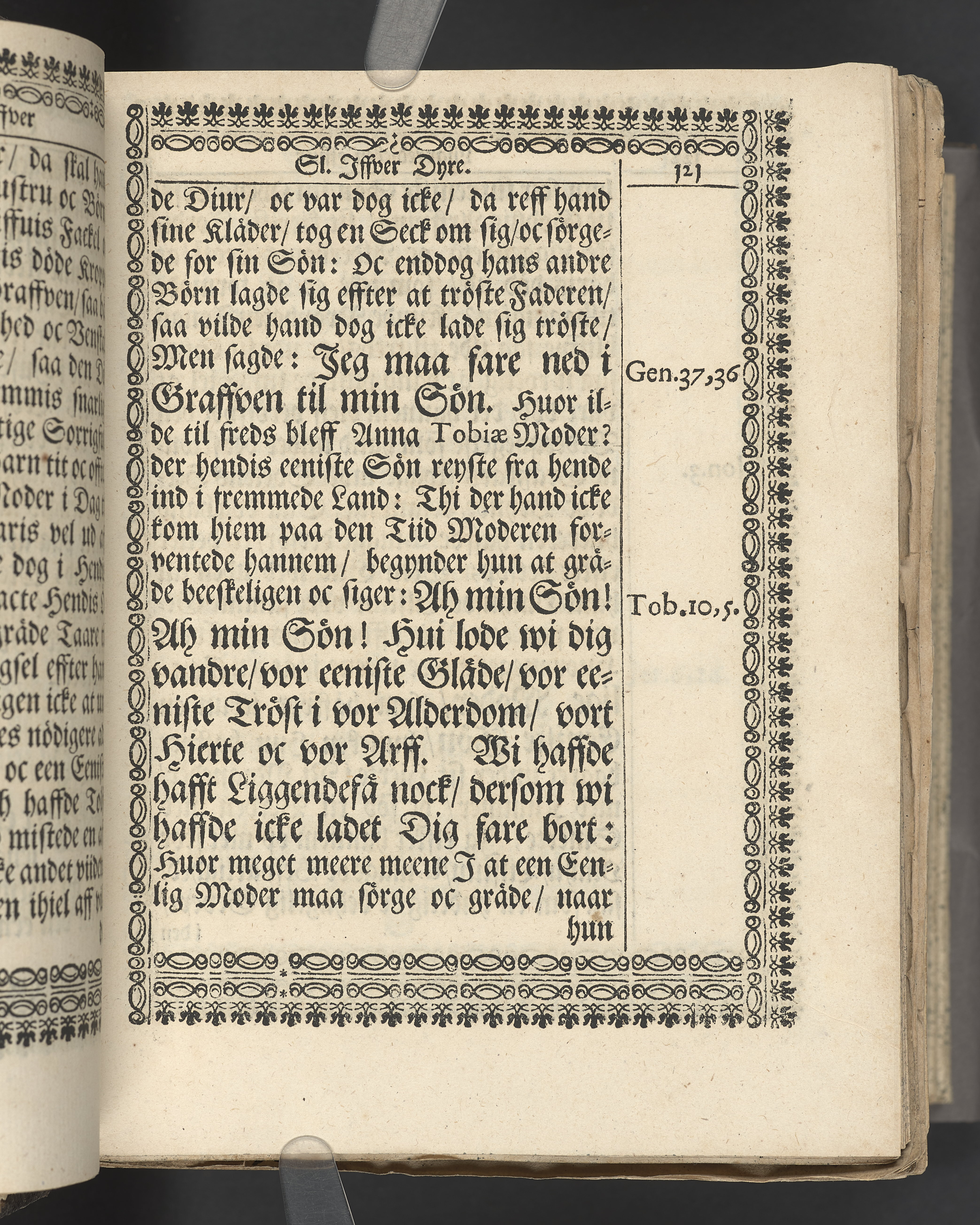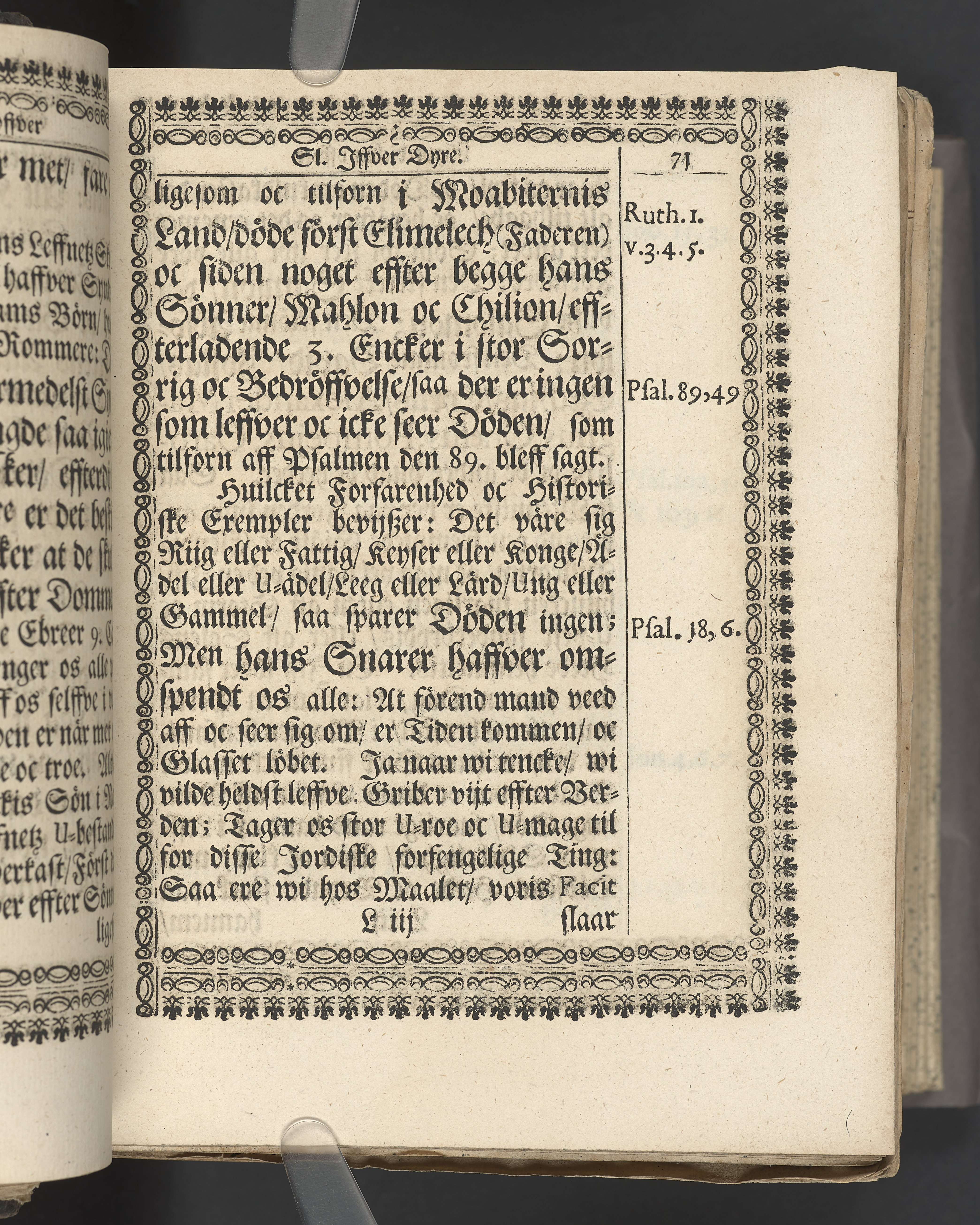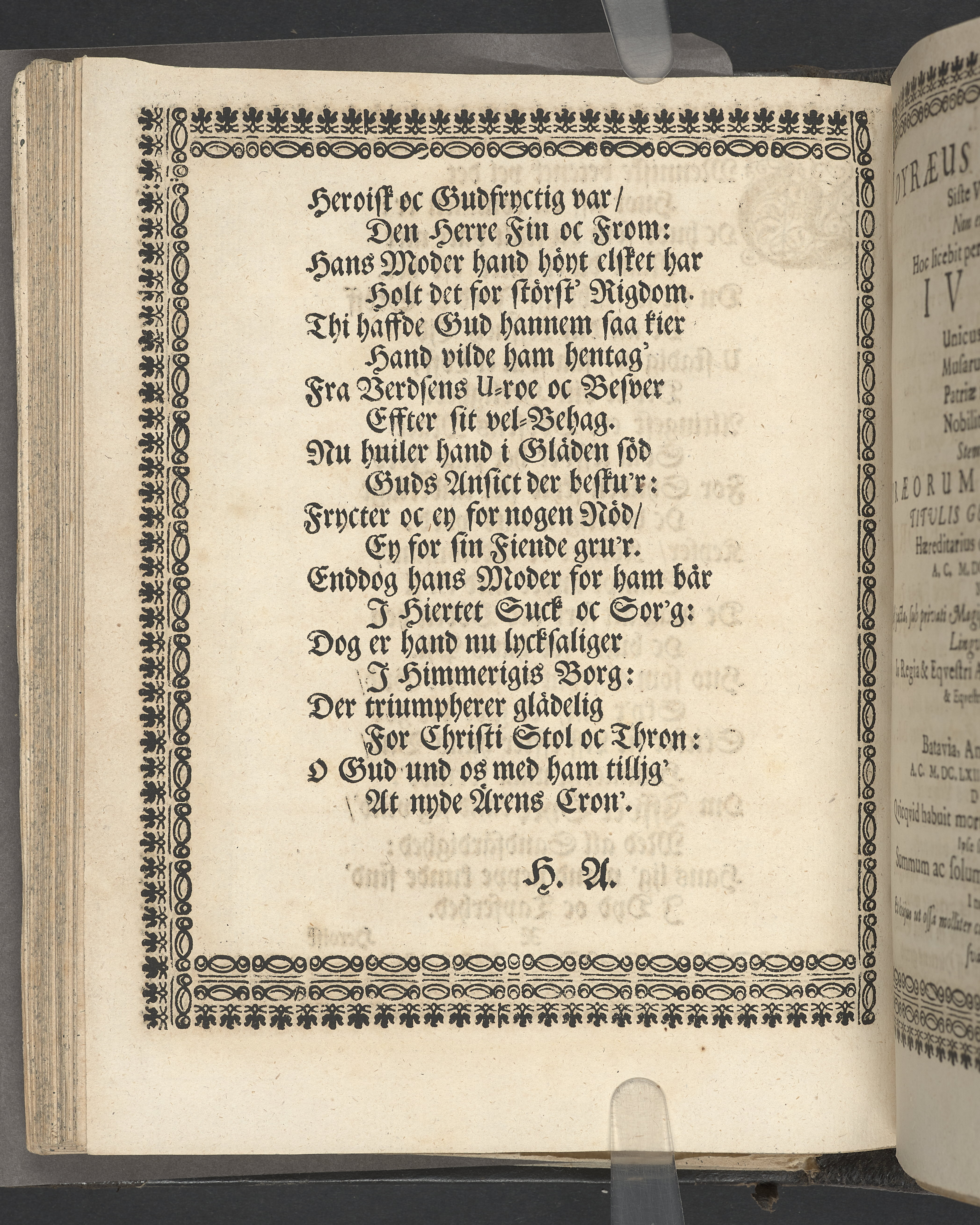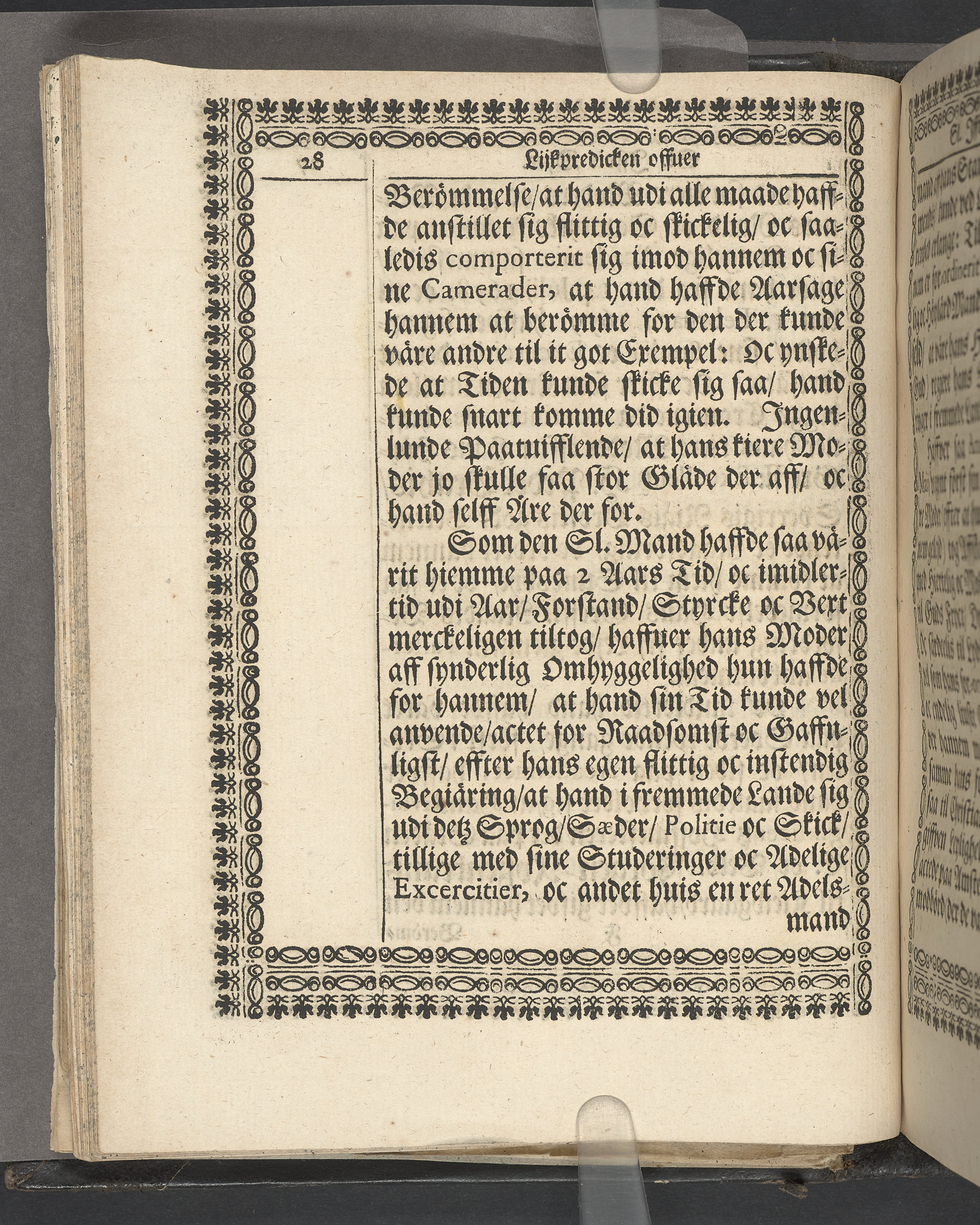 Utvikbar plansch med antavla infogad efter titelbladet. I övre högra hörnet på titelsidan med bläck "4" skrivet över "5". Snitt stänkta i rött och blått.