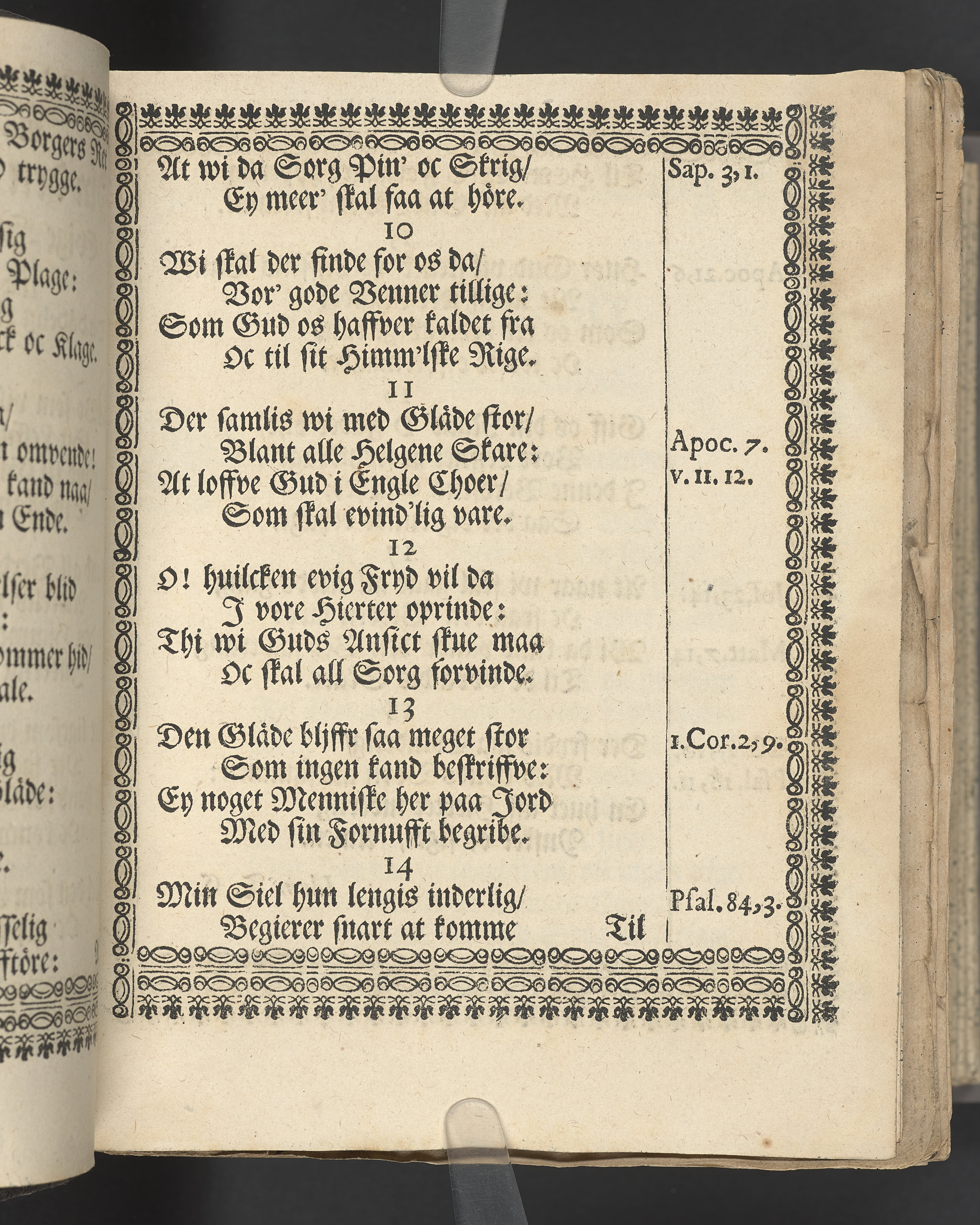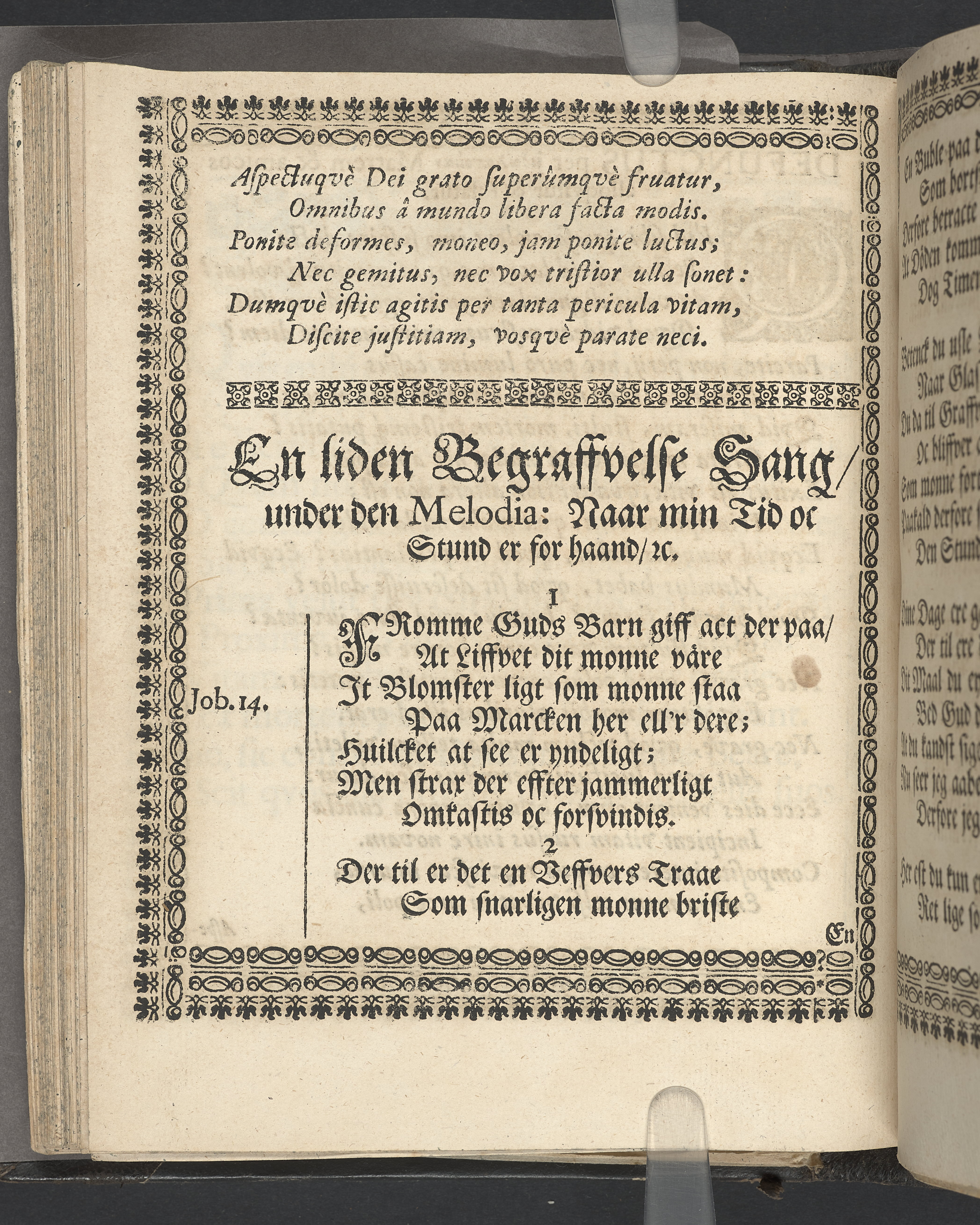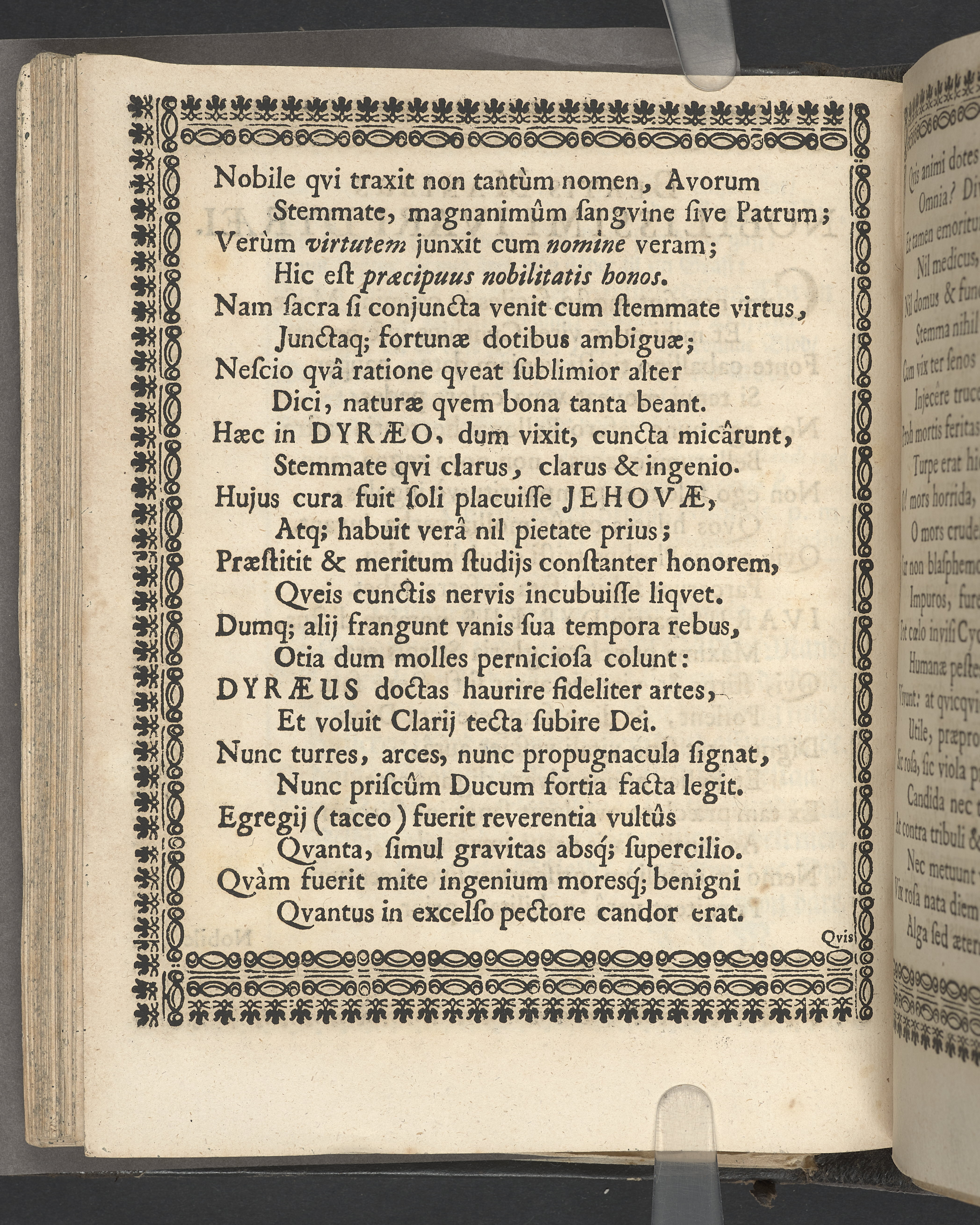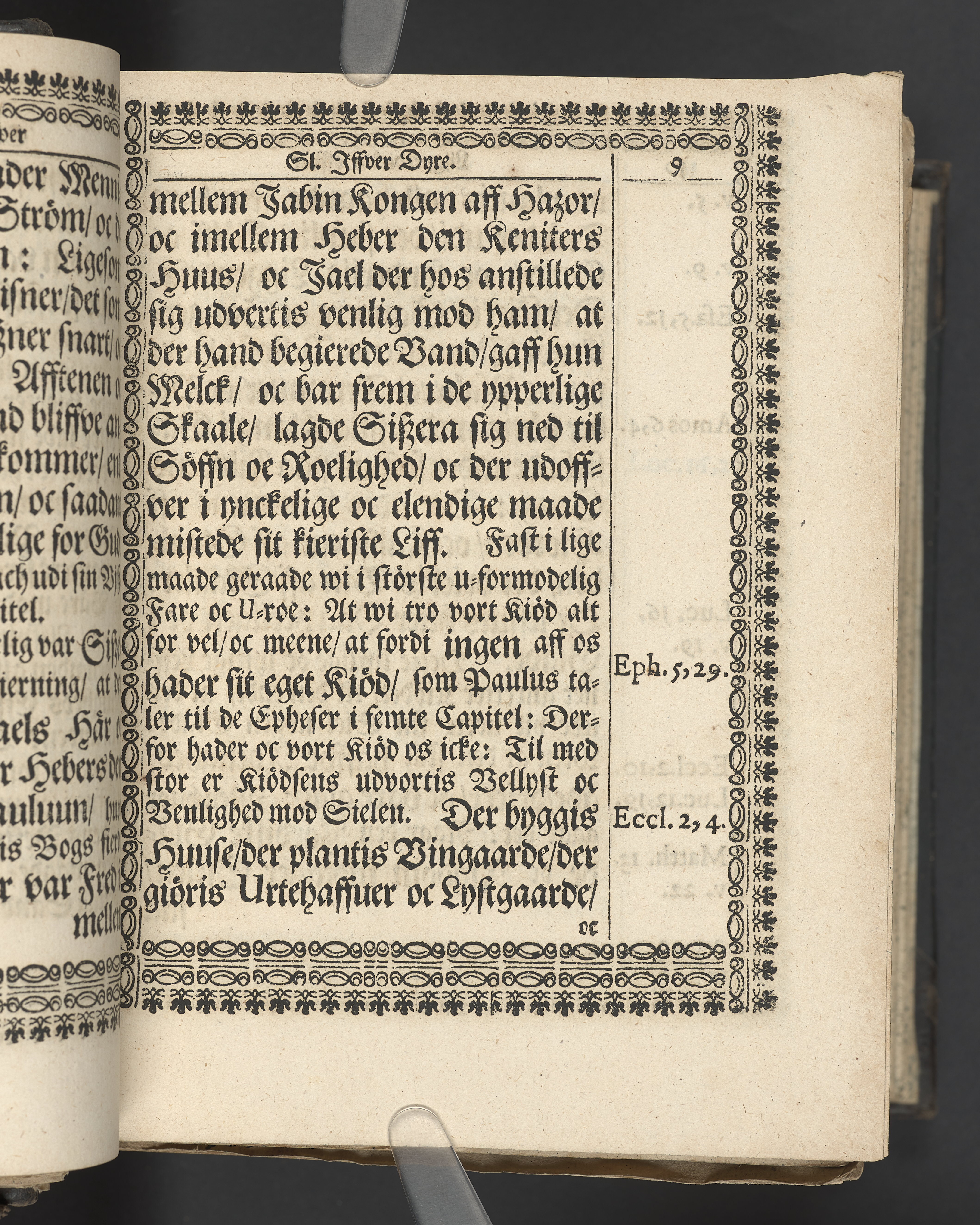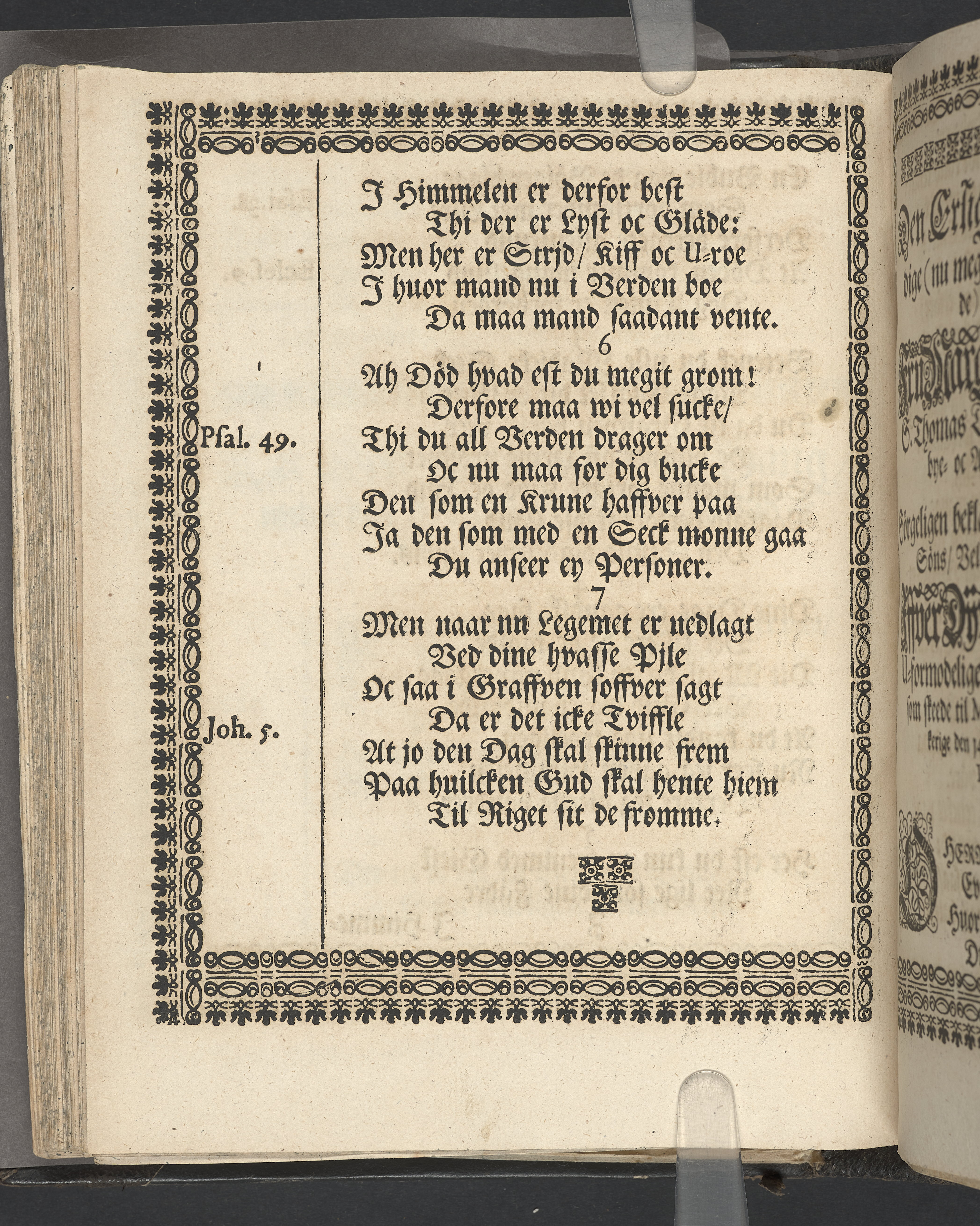 Utvikbar plansch med antavla infogad efter titelbladet. I övre högra hörnet på titelsidan med bläck "4" skrivet över "5". Snitt stänkta i rött och blått.