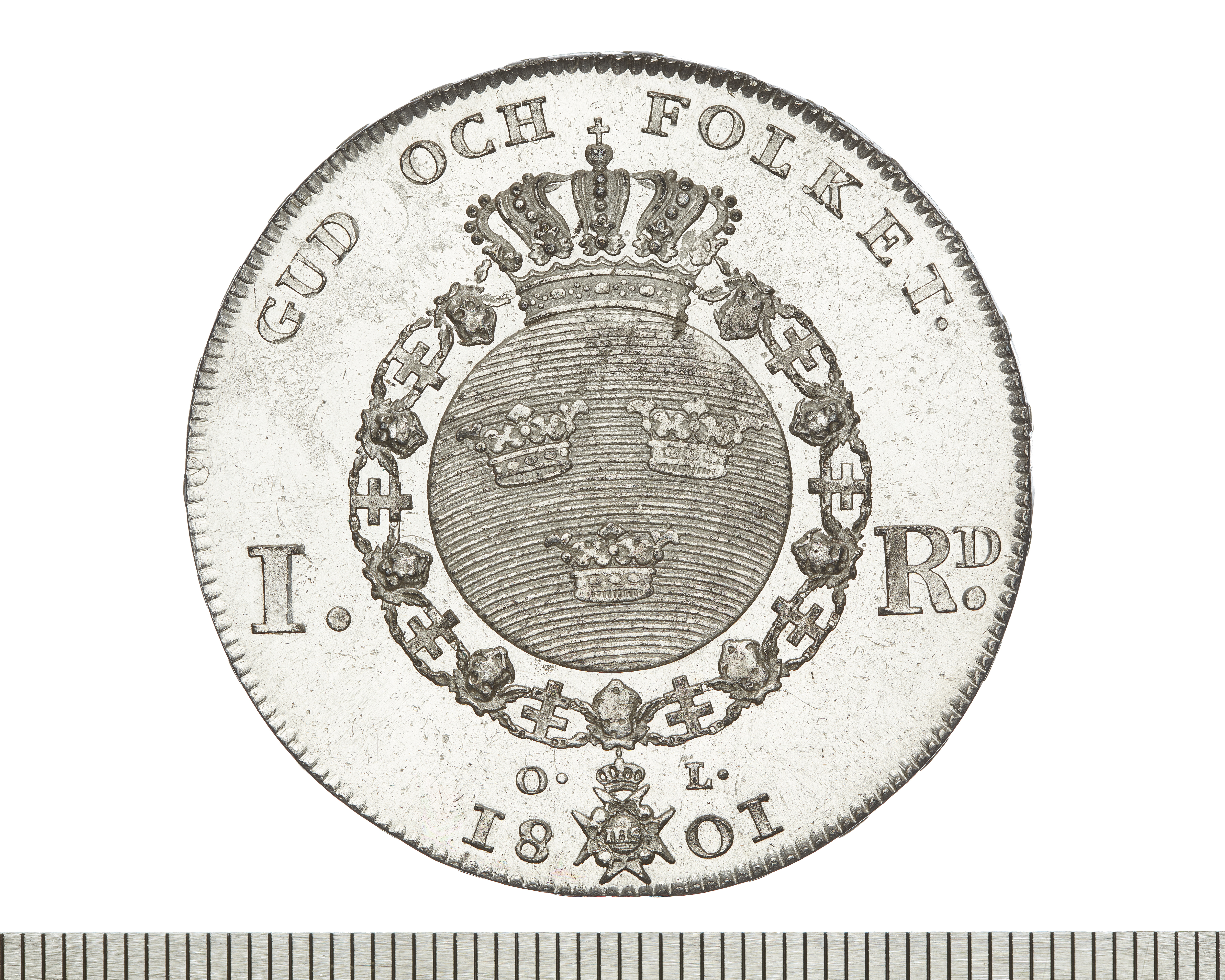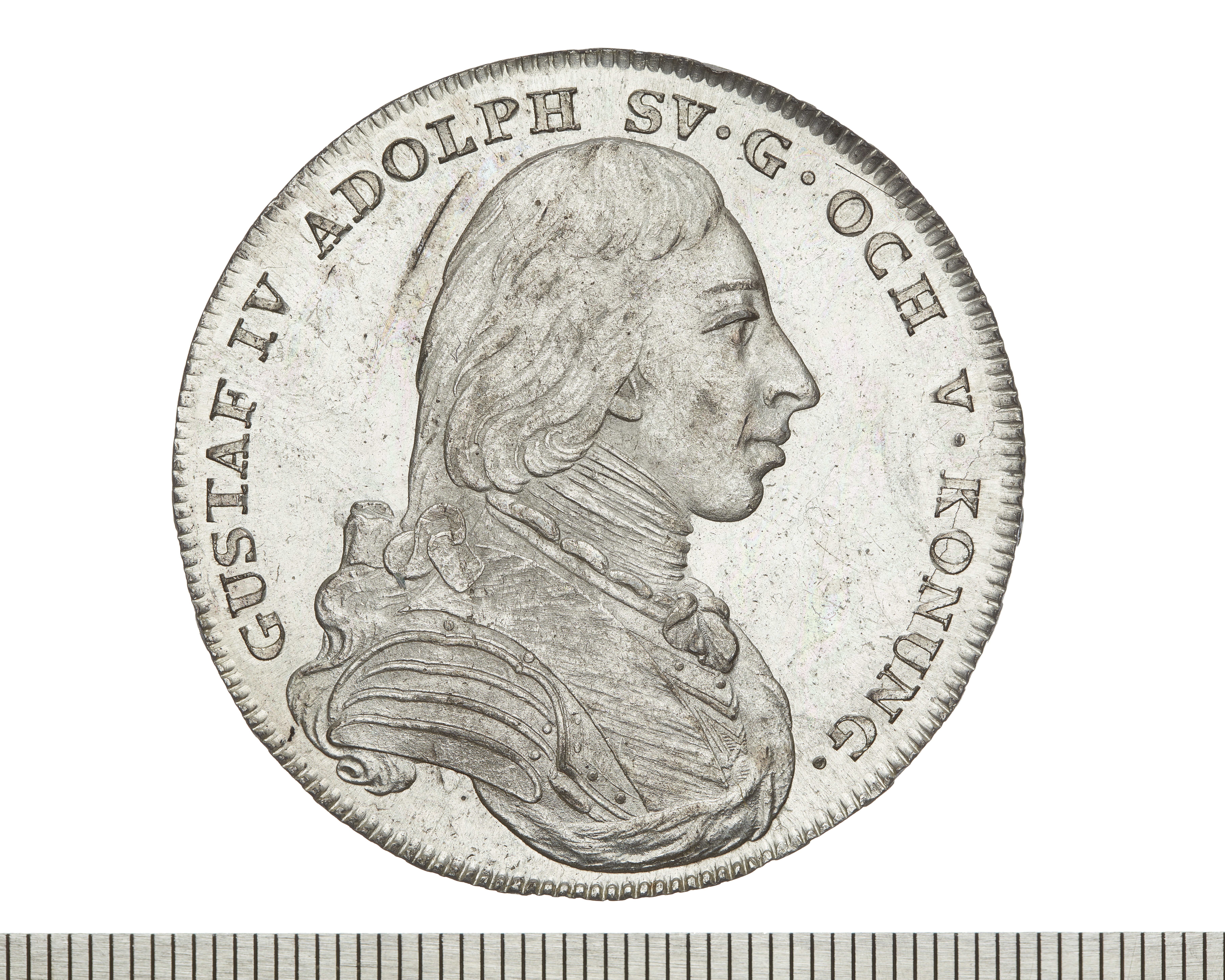 Upphov: Gustav IV Adolf av Sverige. Media: Bonnevier, Helena. Ekonomiska museet - Kungliga myntkabinettet/SHM, (CC BY 4.0) Du får bearbeta och dela verket för alla ändamål, även kommersiella, så länge du anger upphovsperson och licensgivare.