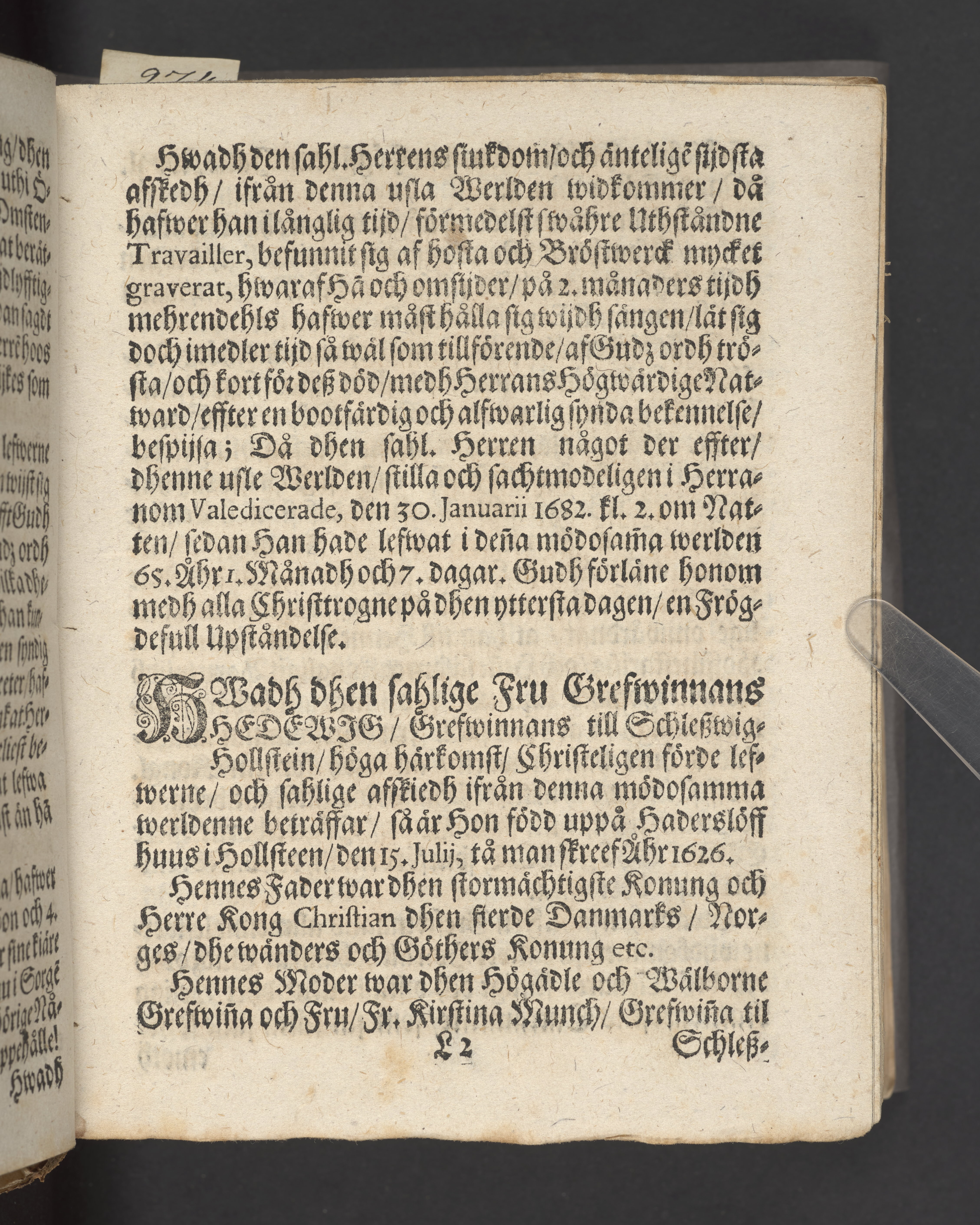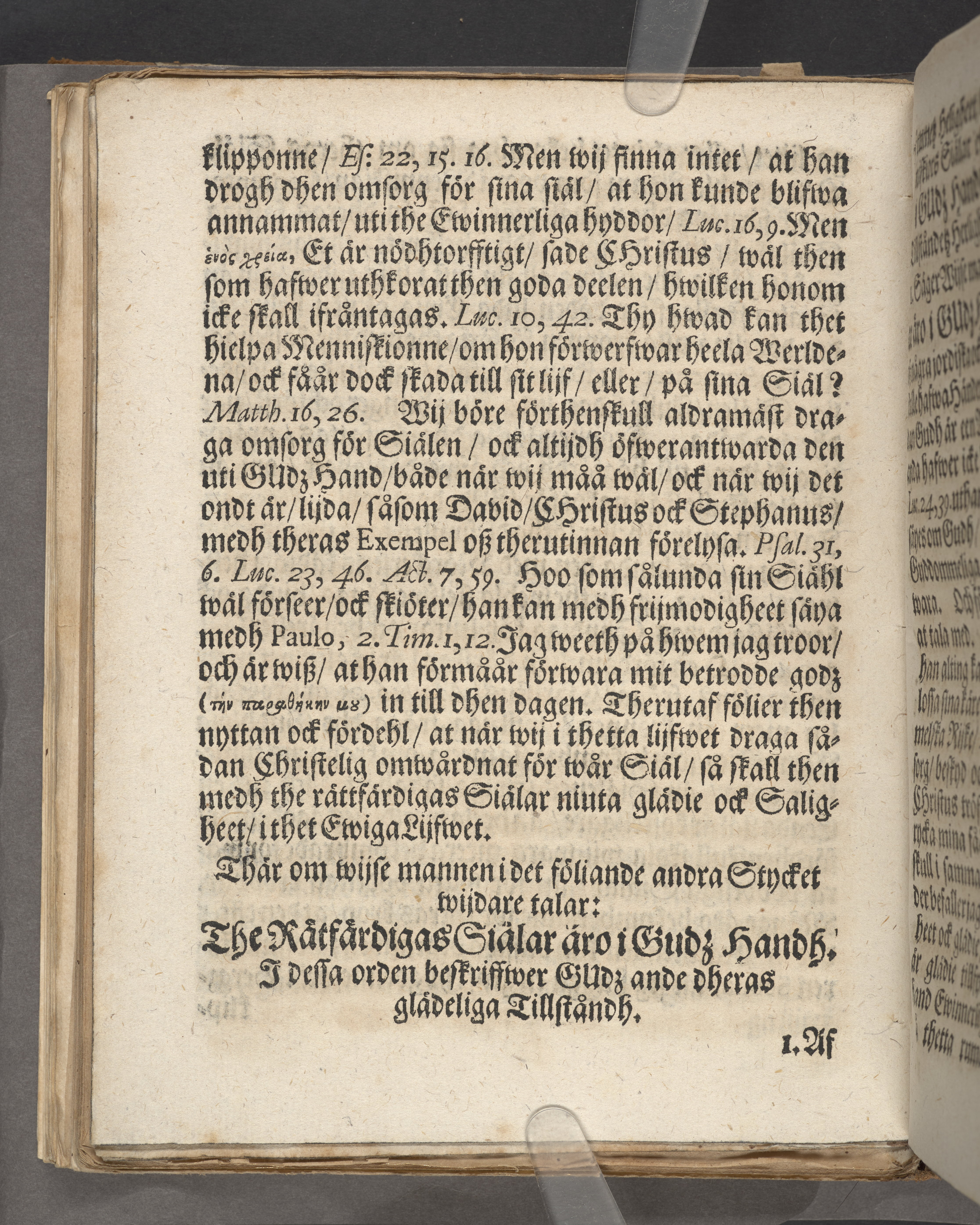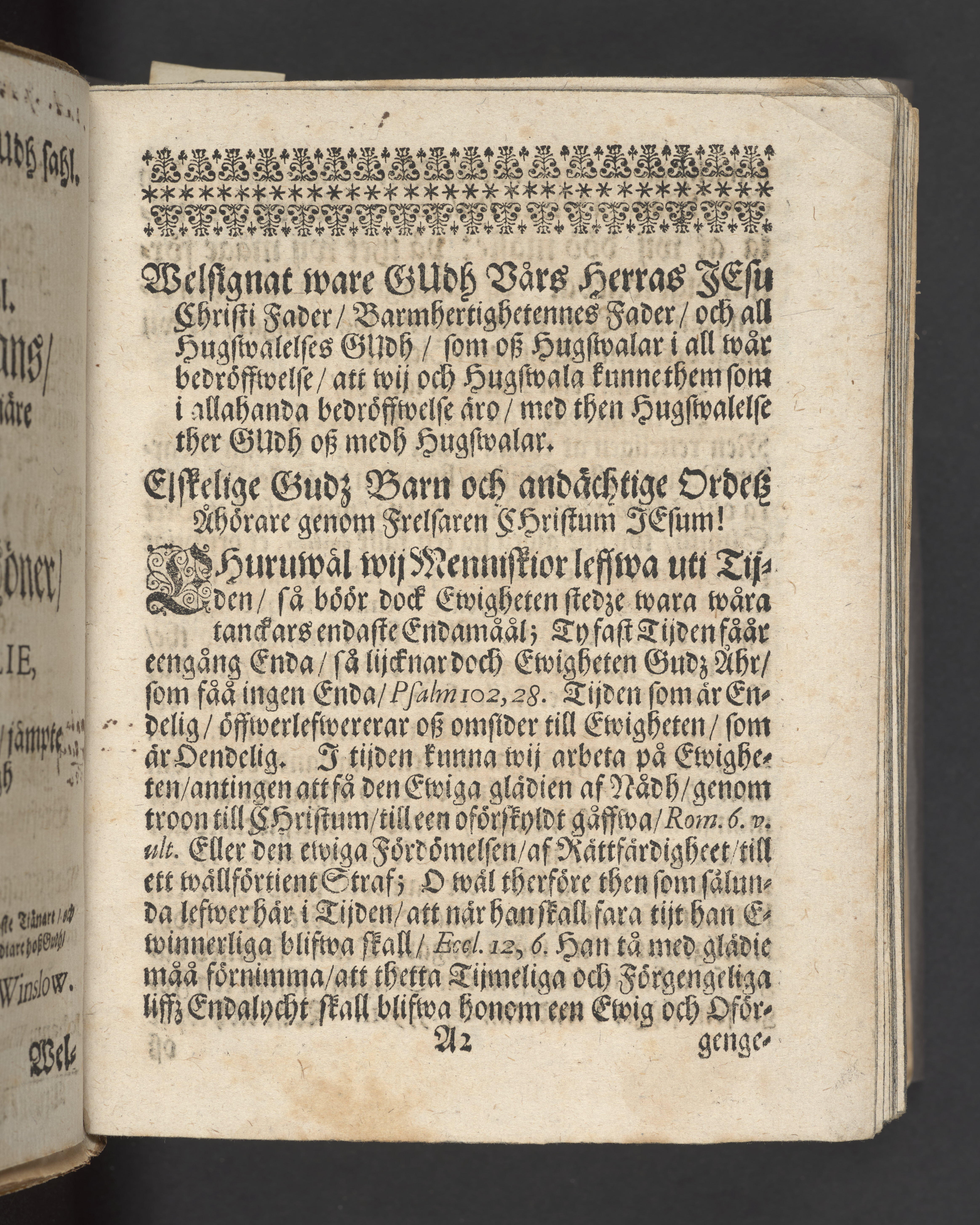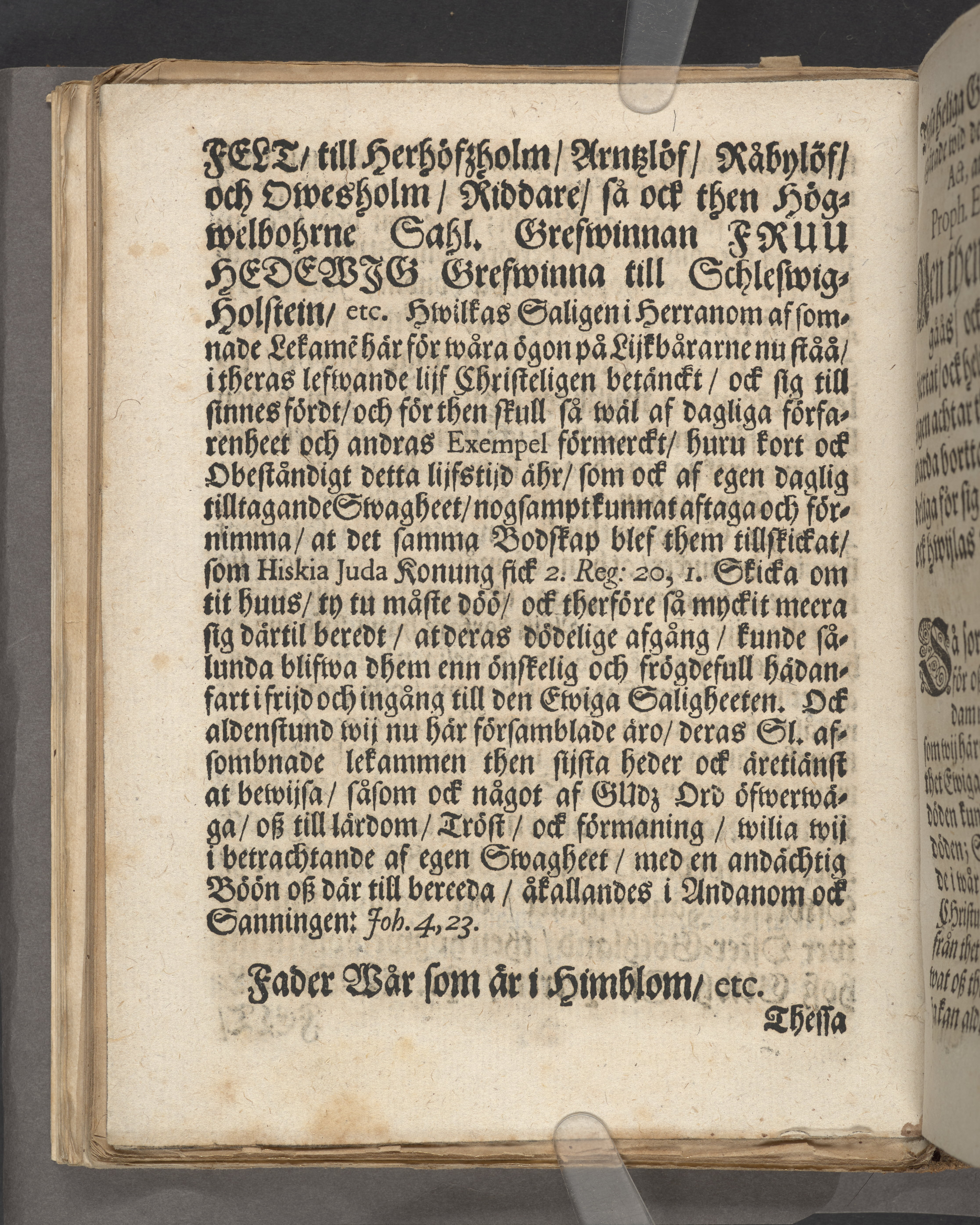 De Retferdigas reedeliga wandring i werldenne, och roliga hwijla i grafwenne, i een lijkpredikan, af Esa. 57. cap. v. 1. 2 då kongl. maytᵗᶻ wår allernådigste konungs och herres högtbetrodde man, rådh, och öfwerste jägemestare, sampt lagman öfwer Öster Giöthlandh, then högwellbohrne herren, herr Ebbe Ulffelt, til Färlöfsholm, Araslöf, Råbylöf, och Owesholm, etc. riddare, så och then högwelbohrne grefwinnan Fru Hedewig, grefwinna til Schleszwig-Holsteen etc. bägge hos Gudh salige, medh christelige ceremonier, i deras hög-grefl. excelˢ. Kongl. rådetz, sampt andra höga herrars närwarelse, blefwo i en stoor, och anseenlig, och folckrijck försambling, uti Trefaldigheetz kyrckan i Christianstadh 27. novemb. anno Christi 1689. till deras hwijlorum beledsagade, framstält af Johann: Winslow, hist. sacræ & chron. eccl. prof. & eccl. Stävie & Lakalänge past. Trykt i Dorpt af Joh. Brendeken, acad. booktr.