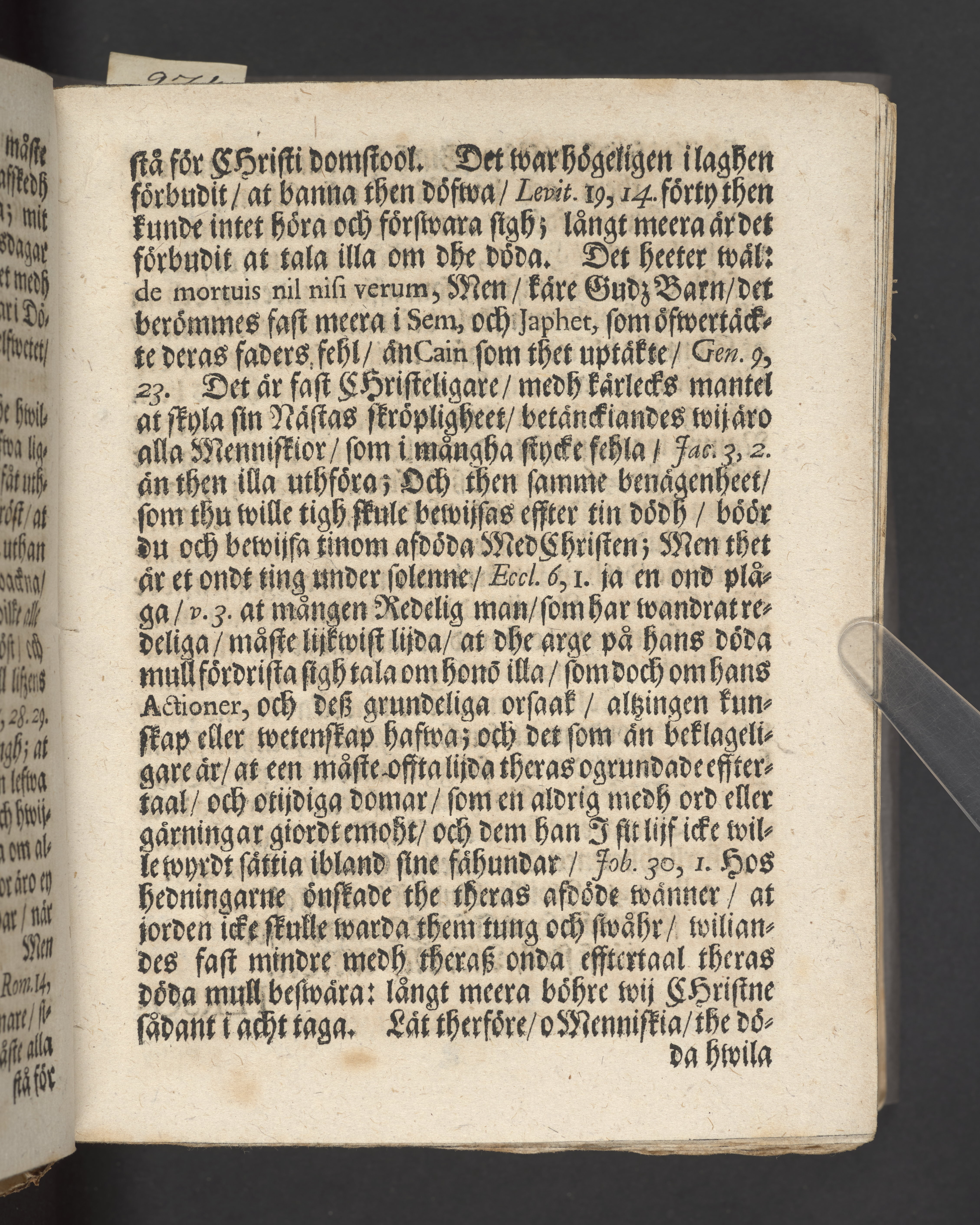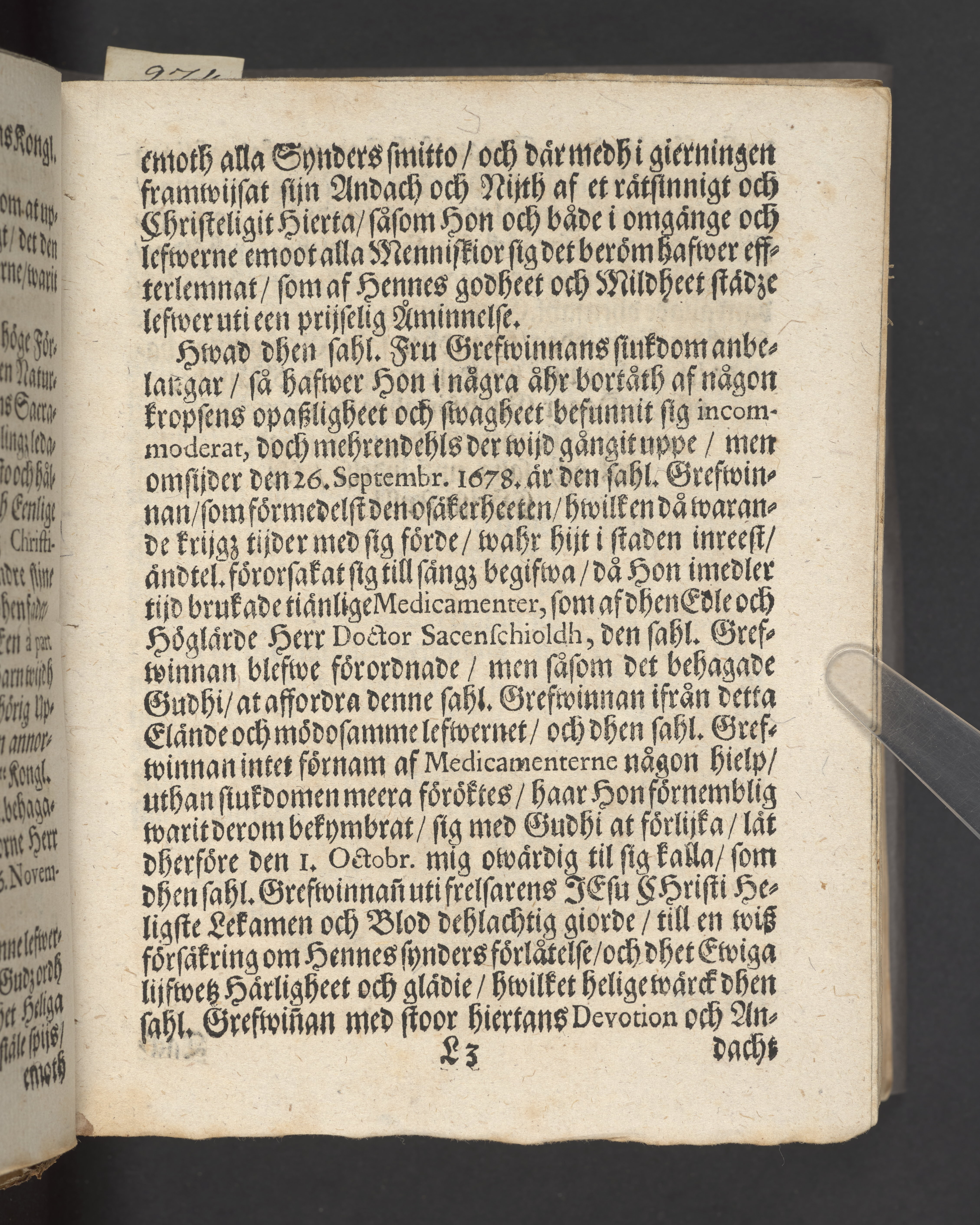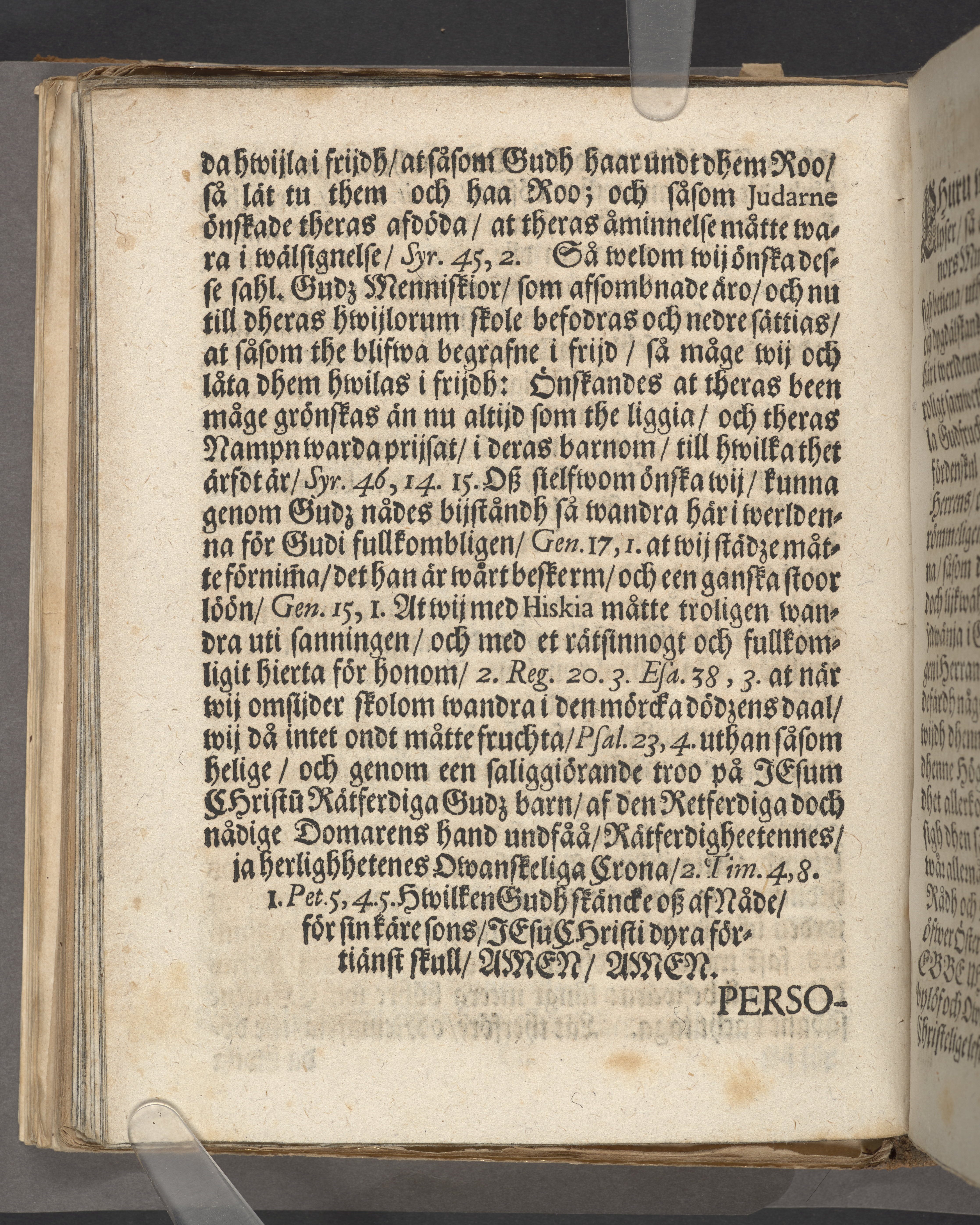 Blått snitt. Högst upp på titelsidan anteckning i bläck med uppgifter om födelse- och dödsdatum för den avlidna.