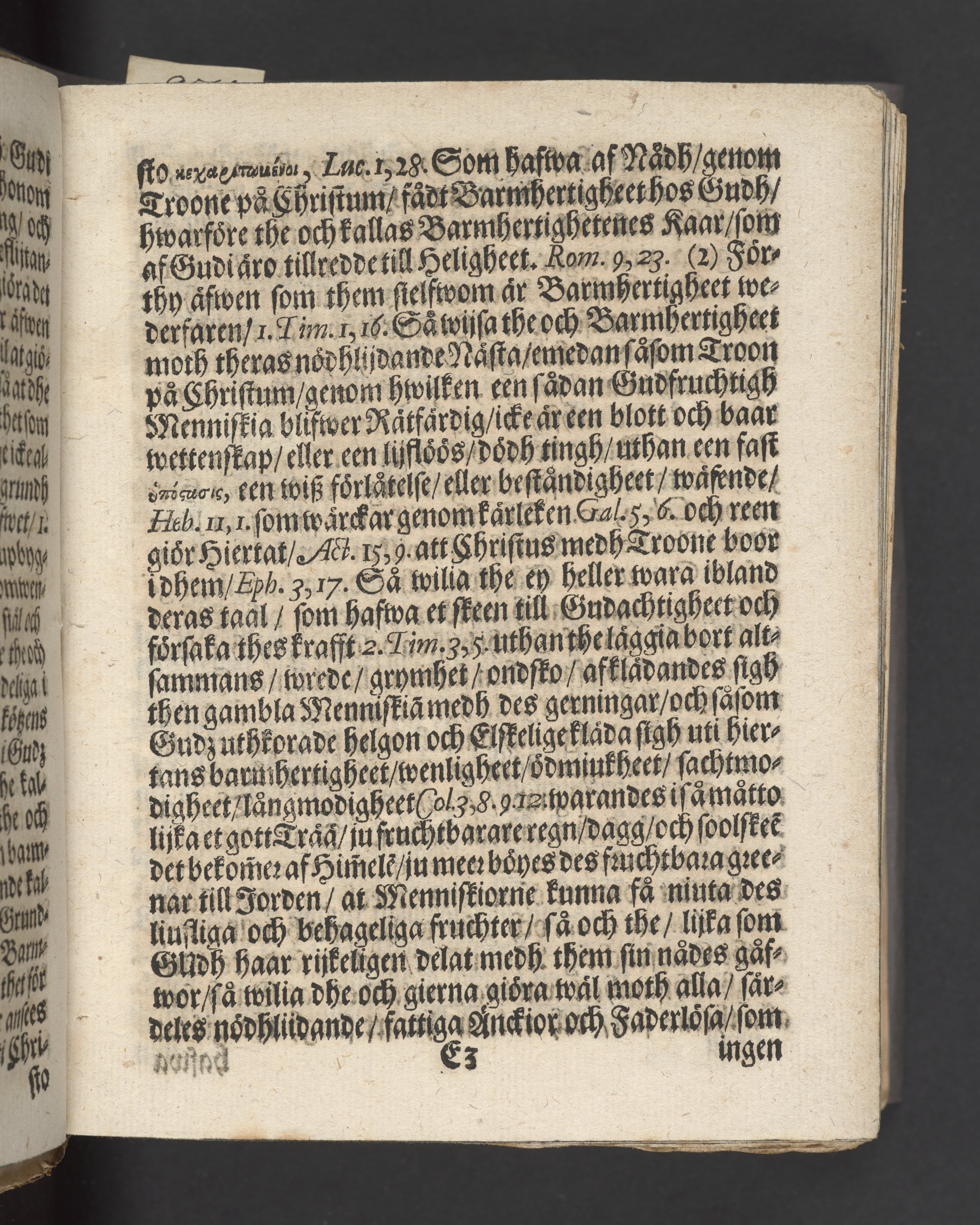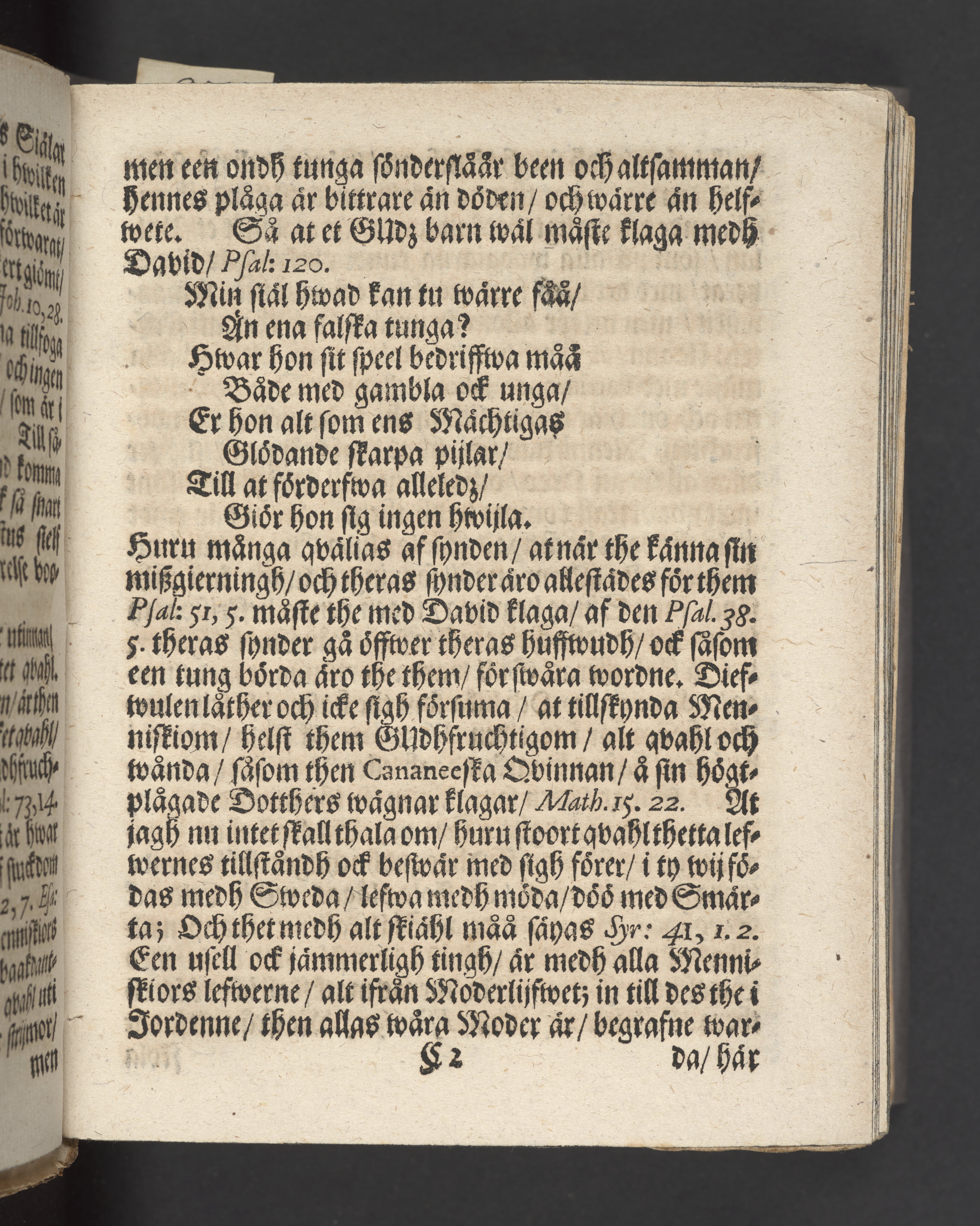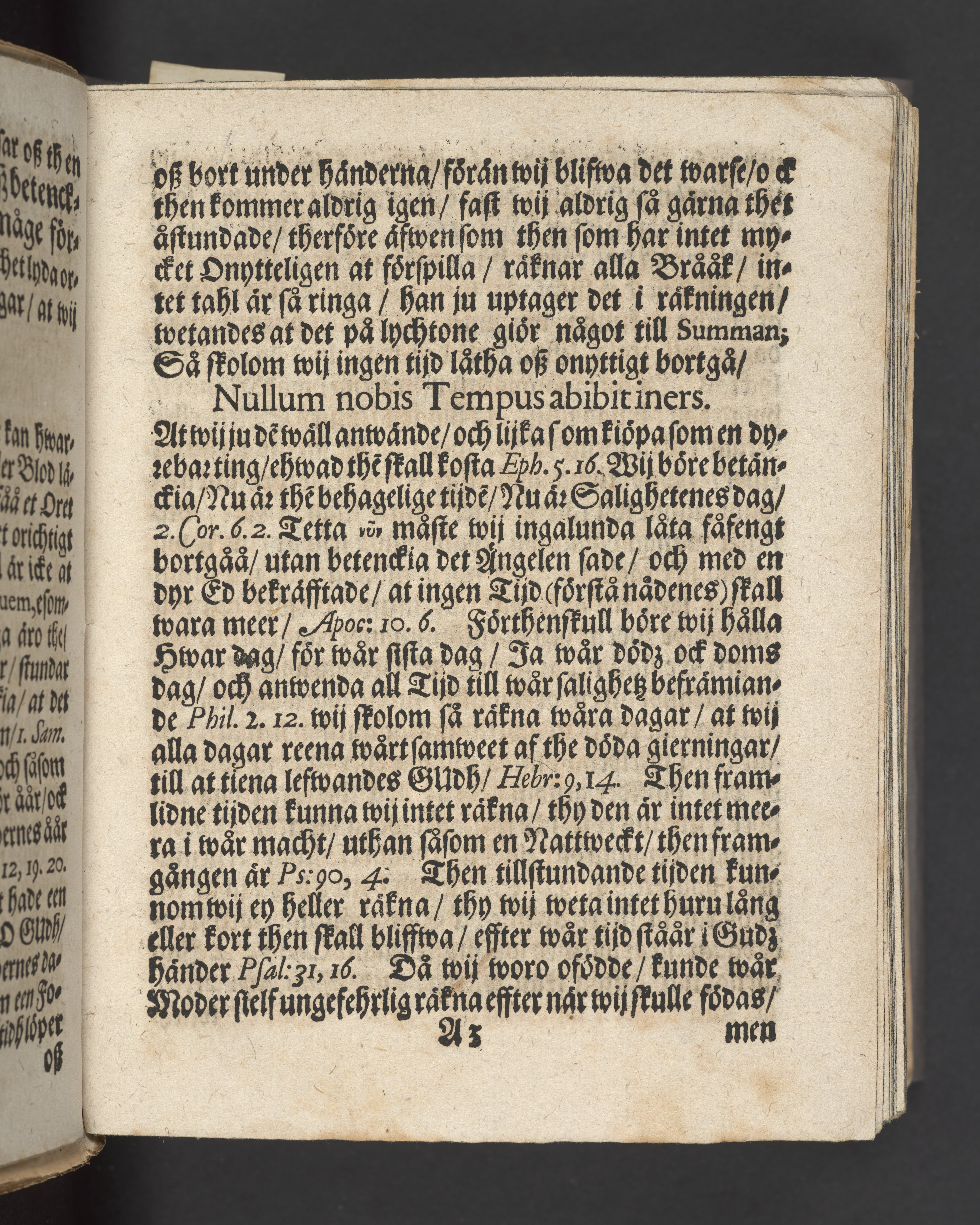 Blått snitt. Högst upp på titelsidan anteckning i bläck med uppgifter om födelse- och dödsdatum för den avlidna.