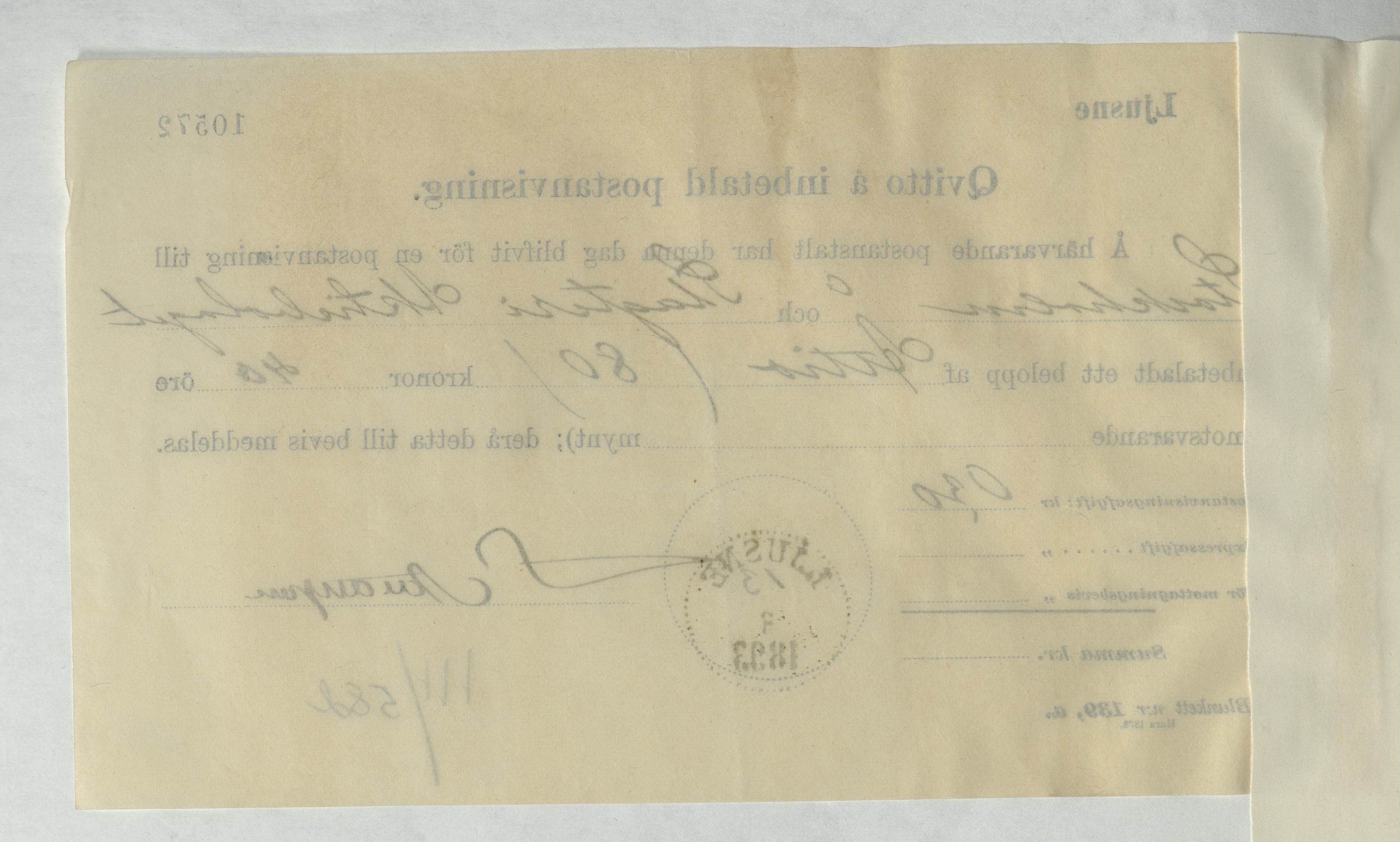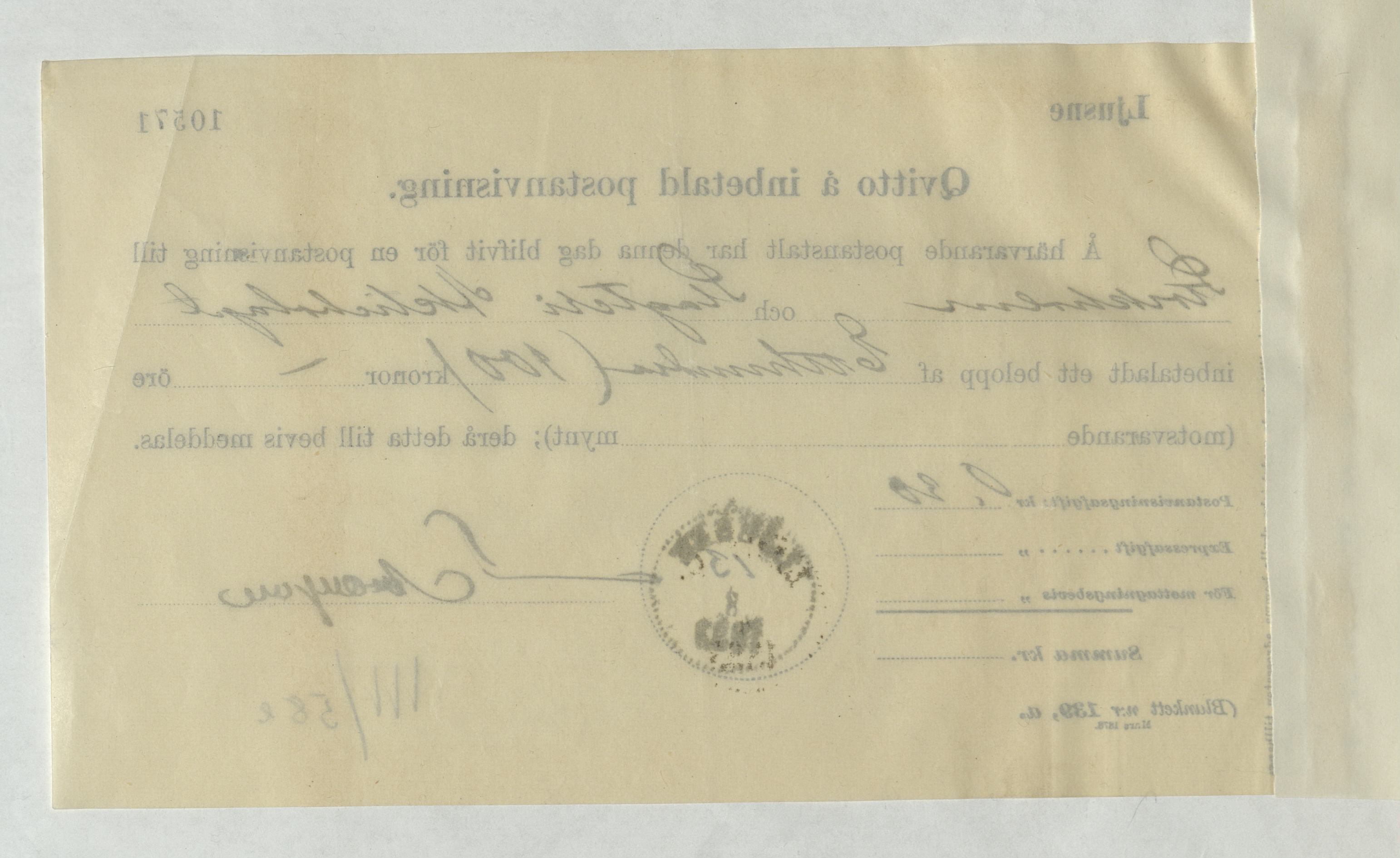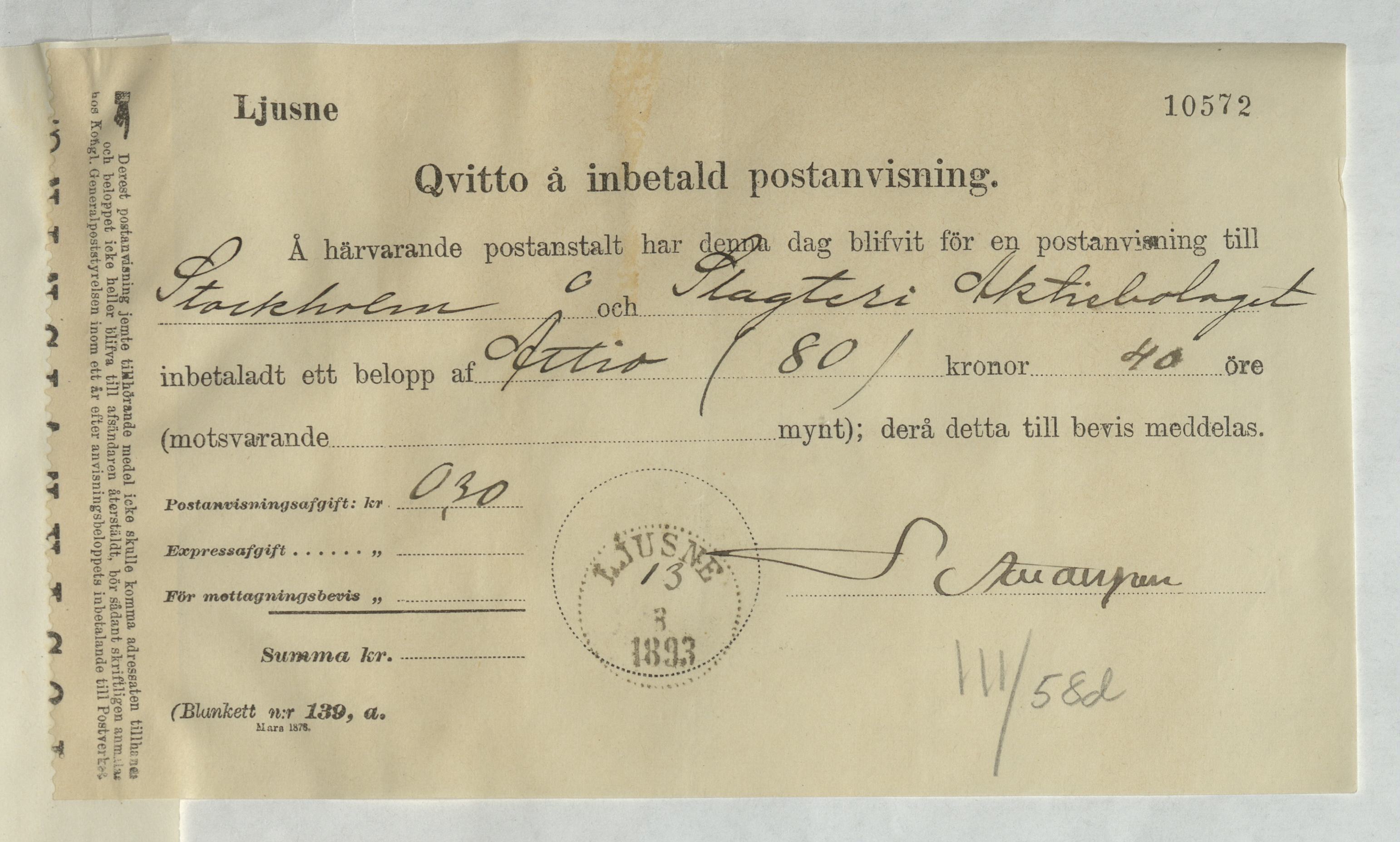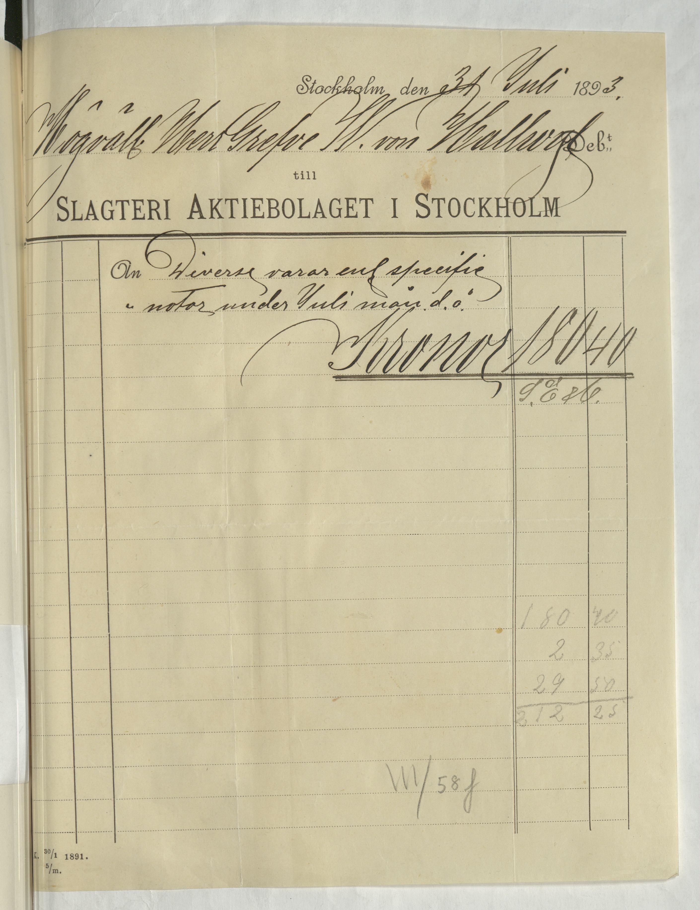 Kvitto från Slagteri Aktiebolaget i Stockholm