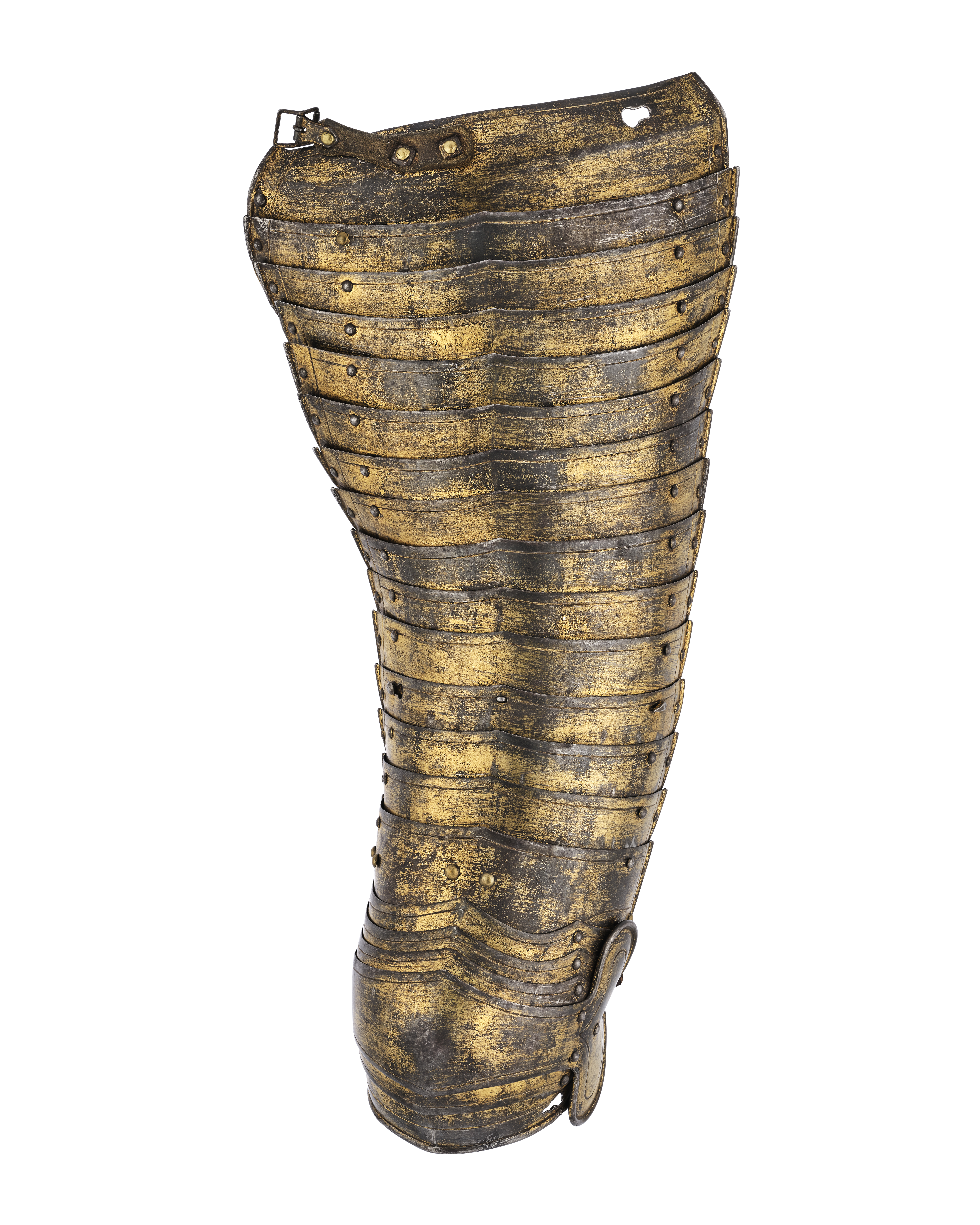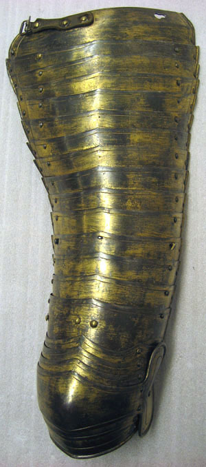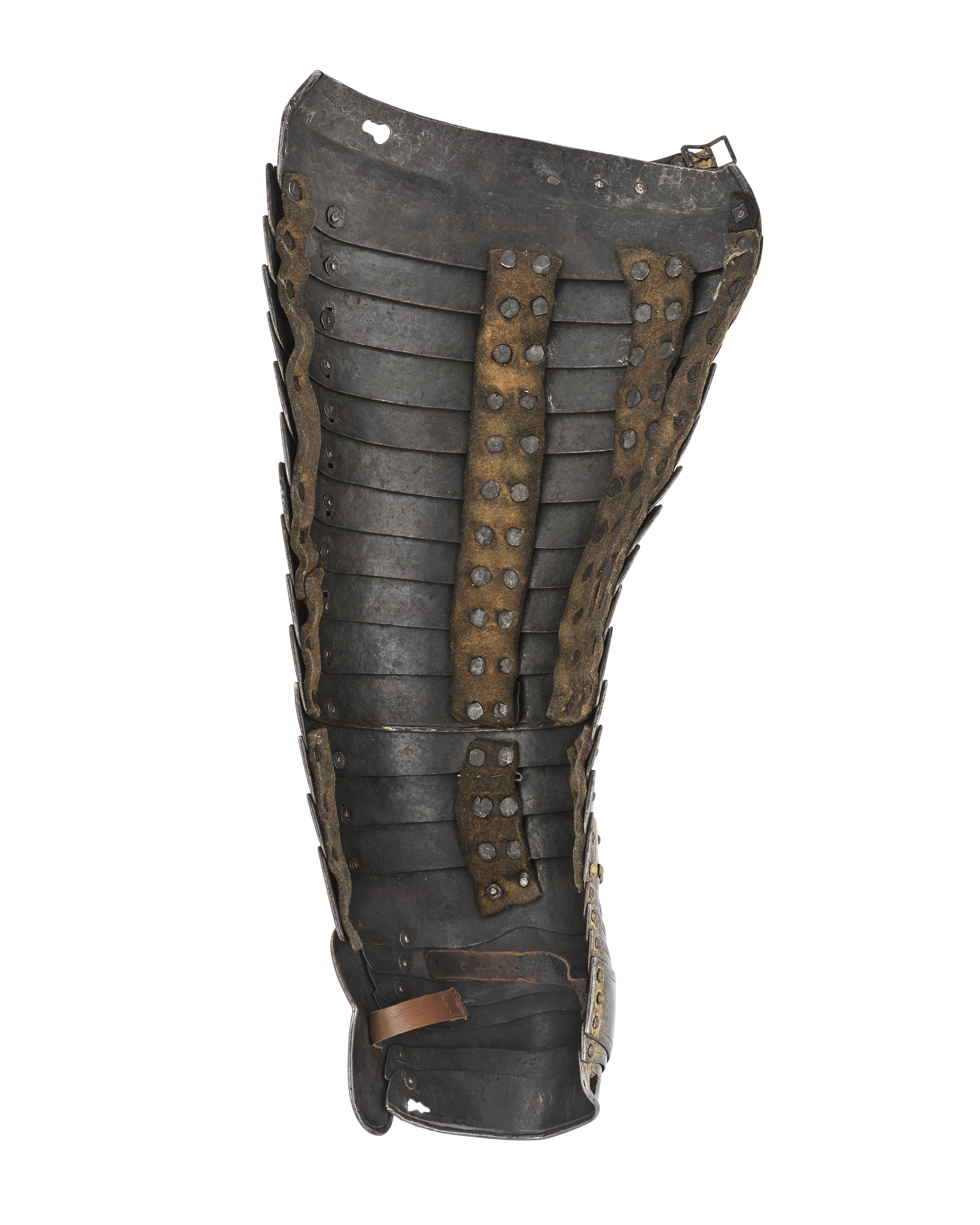 Lårbetäckning, vänster, till Gustav II Adolfs tornerrustning, Sverige 1620-tal.