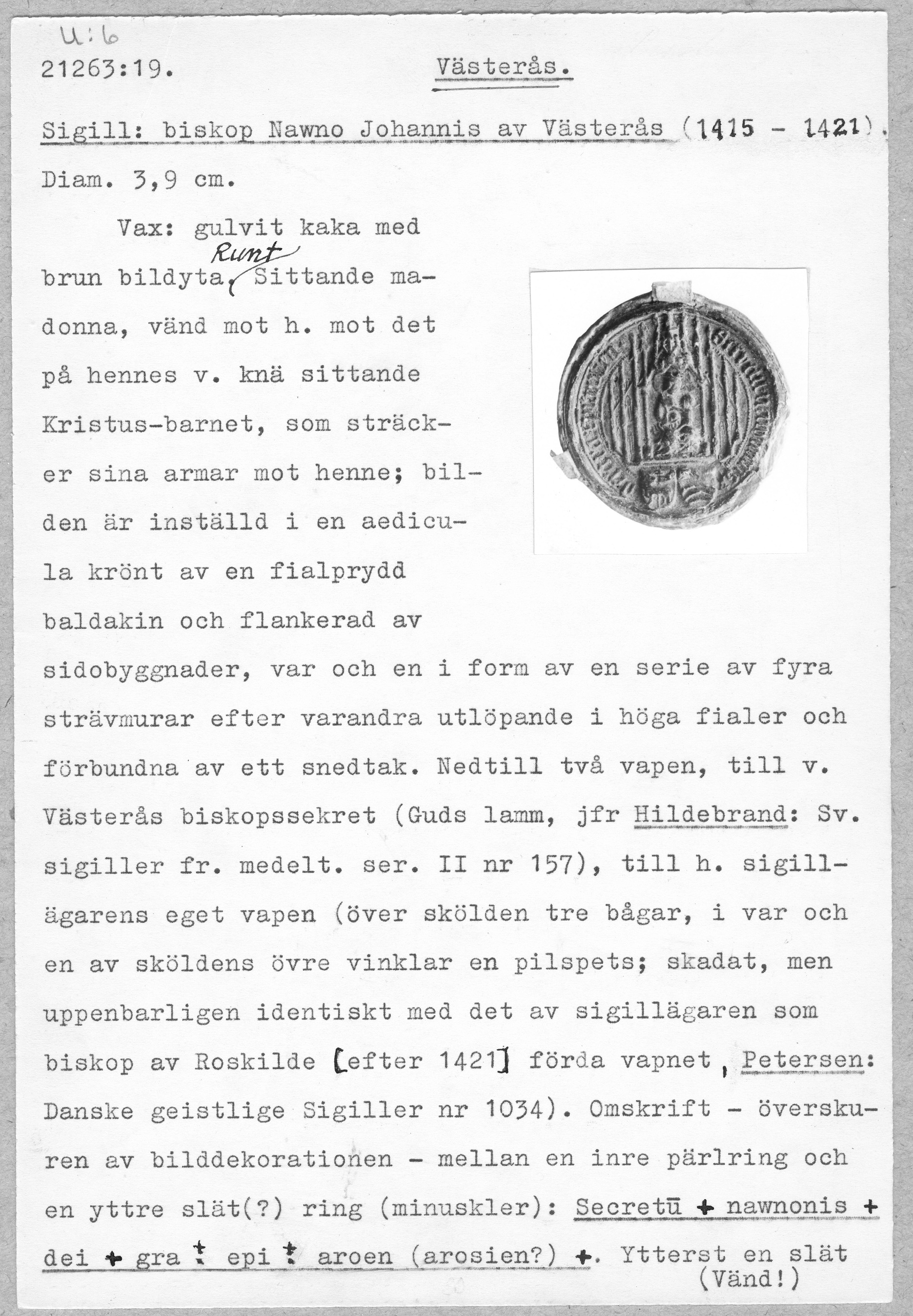 Sigill: biskop Nawno Johannis av Västerås